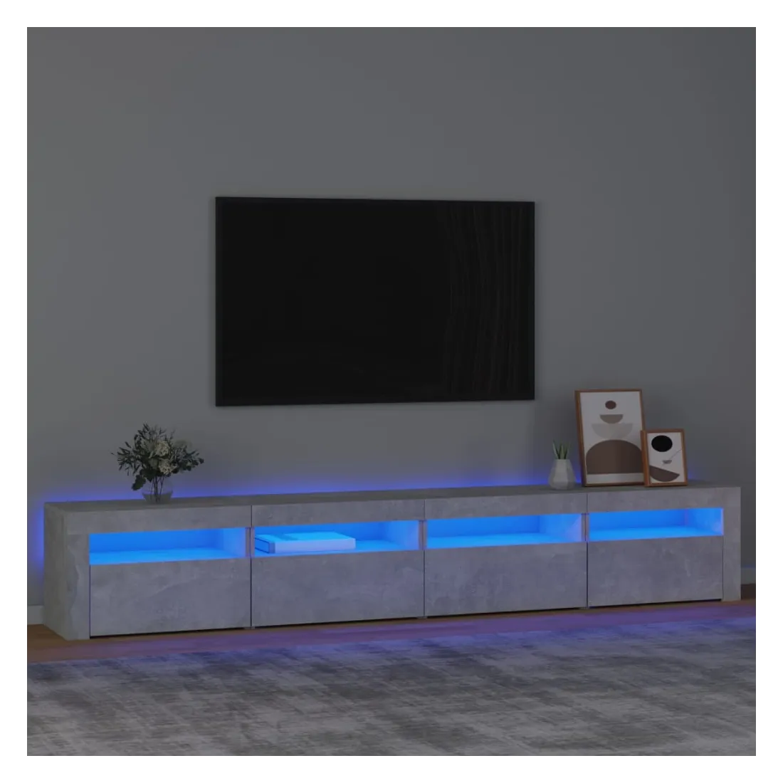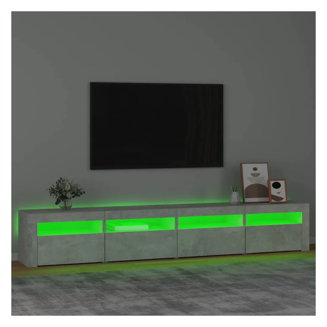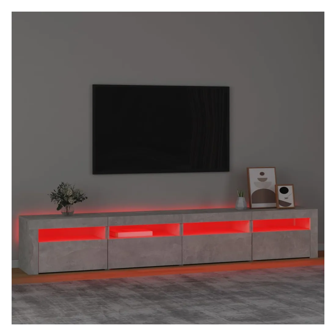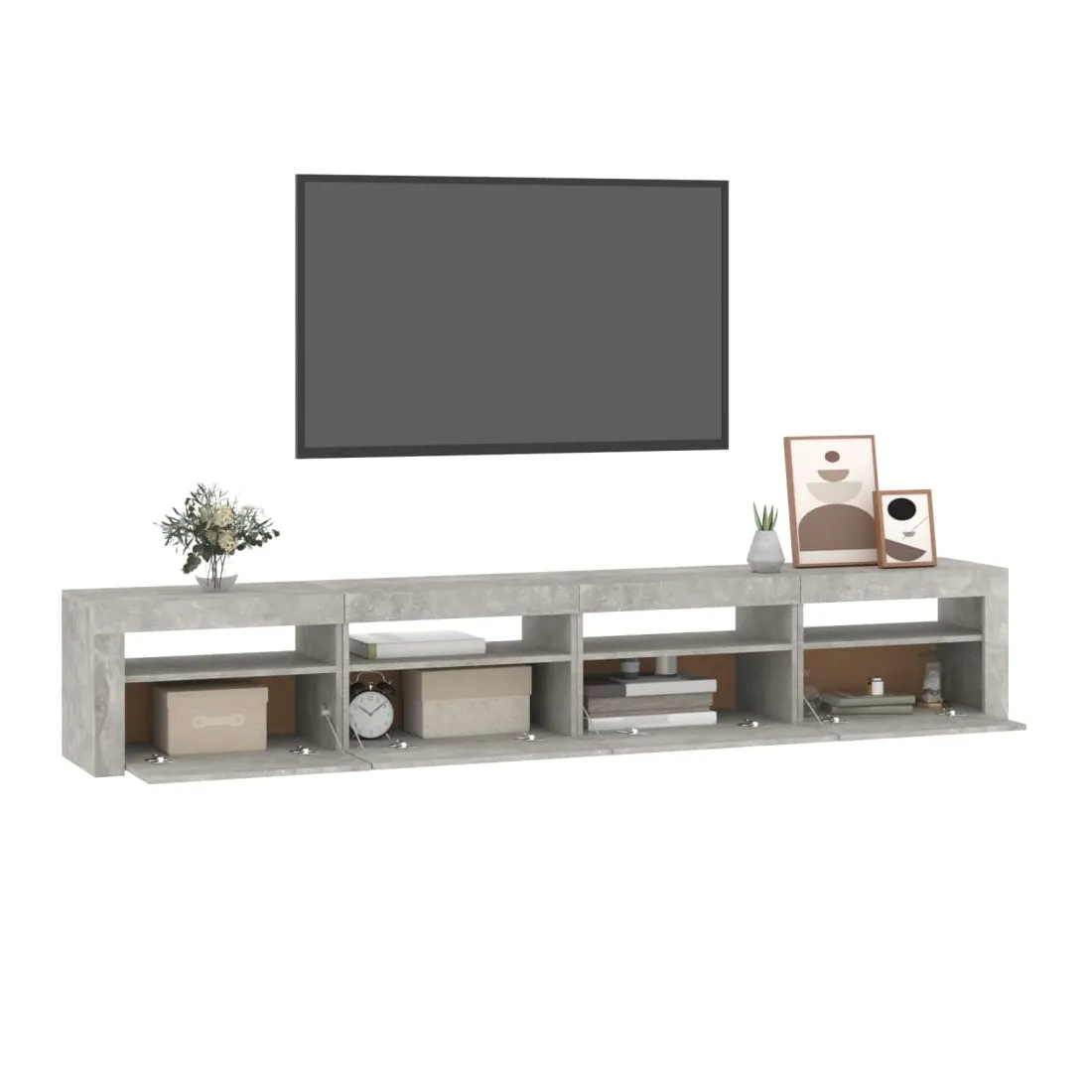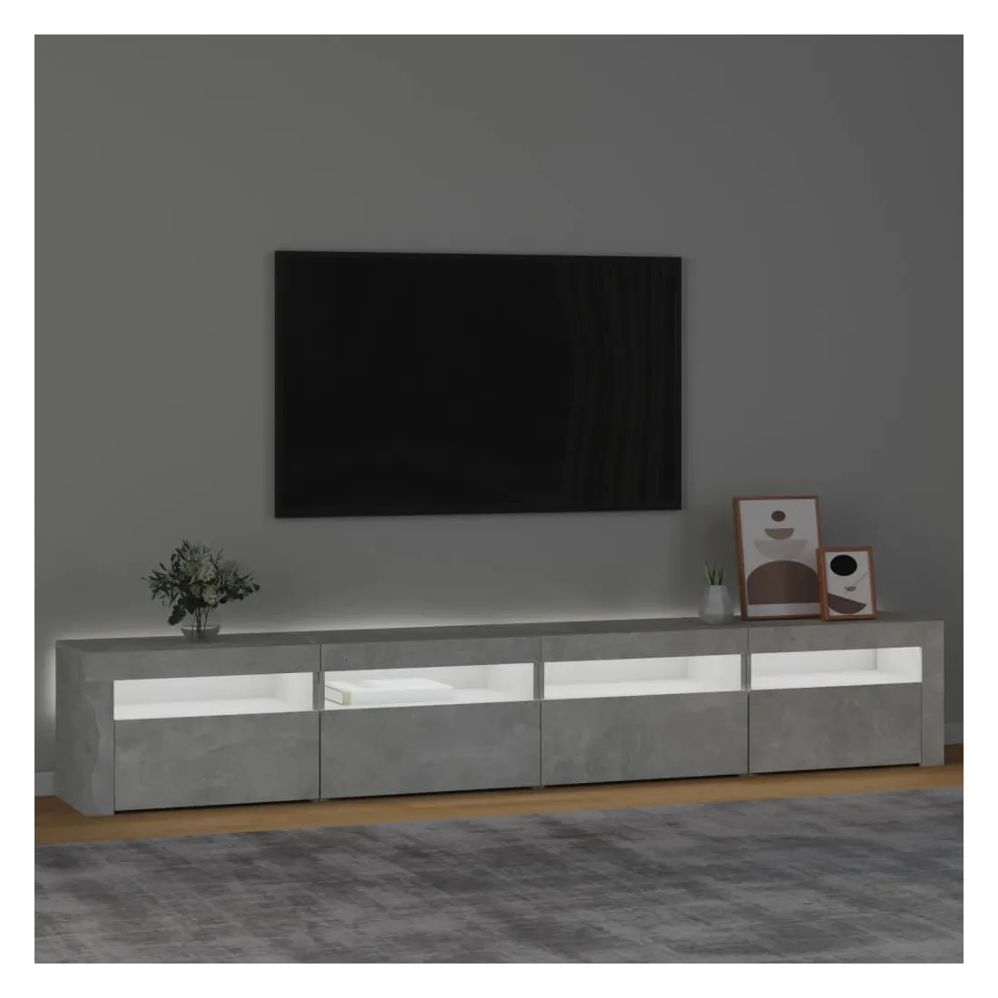 Meuble TV avec lumières LED Gris béton 240x35x40 cm