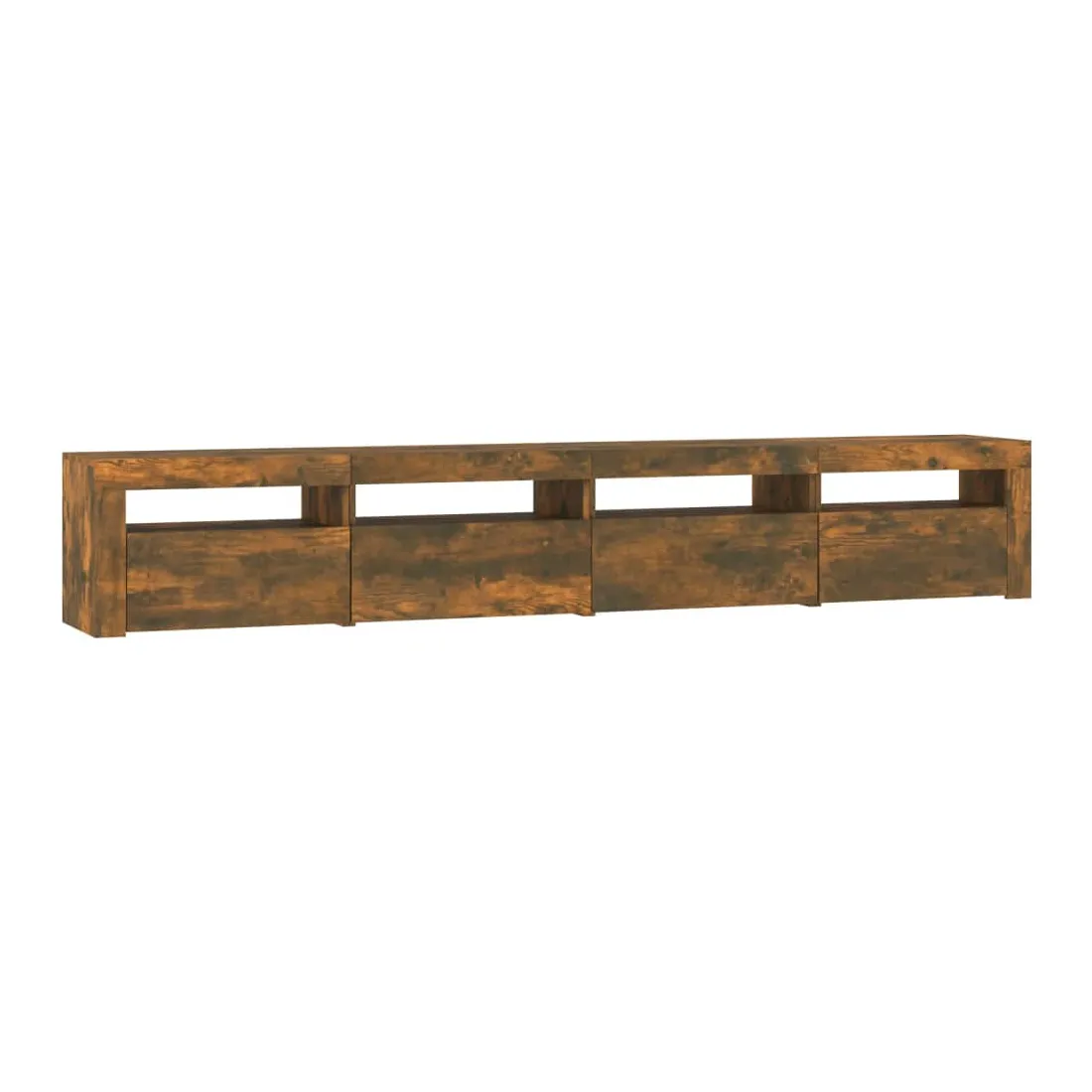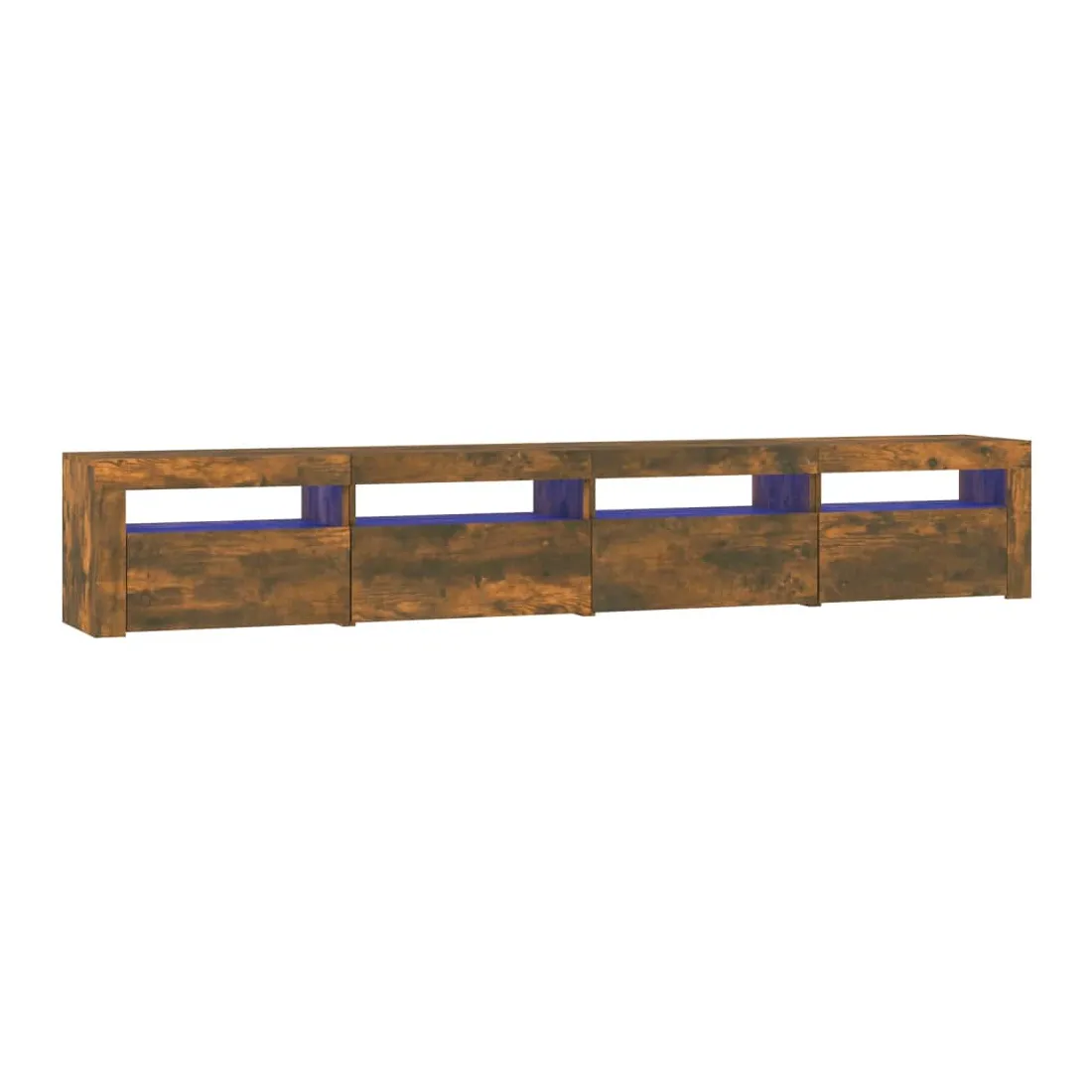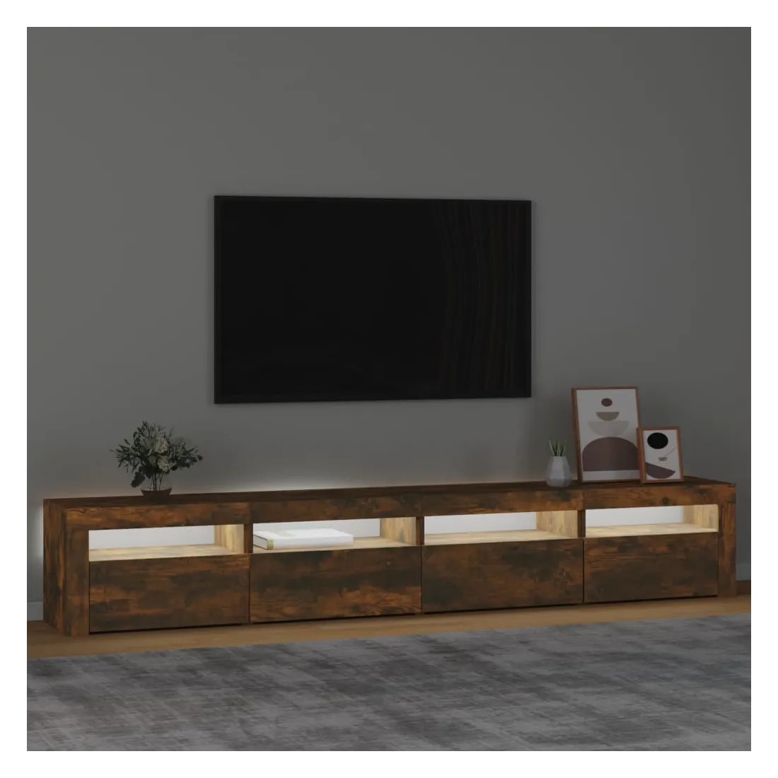 Avec un design à la fois tendance et pratique, ce meuble TV avec éclairage LED deviendra certainement un point central de votre pièce. Matériau pratique : le bois d'ingénierie est d'une qualité exceptionnelle avec une surface lisse et présente également résistance, stabilité et résistance à l'humidité. Lumières LED colorées : le meuble TV est doté de lumières LED RVB, qui ont différents menus pour changer la couleur des lumières et laisser la couleur s'ajuster automatiquement. Les lumières LED soulignent l'aspect moderne et contribuent à la sensation de tendance.Grand espace de rangement : le meuble TV offre un grand espace de rangement pour garder vos magazines, livres, télécommandes et autres petits objets bien organisés et à portée de main.Fonction d'affichage : le dessus robuste du meuble média est idéal pour exposer des objets décoratifs, des cadres photo et des plantes en pot. Remarque :Ce produit est doté d'un connecteur USB, mais la source d'alimentation certifiée de USB 5V n'est pas incluse.Chaque produit est livré avec un manuel de montage dans la boîte pour un montage facile.