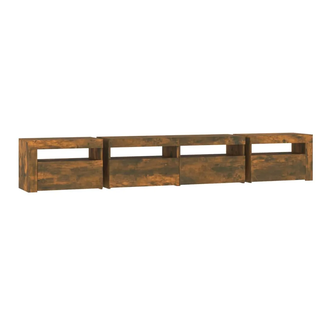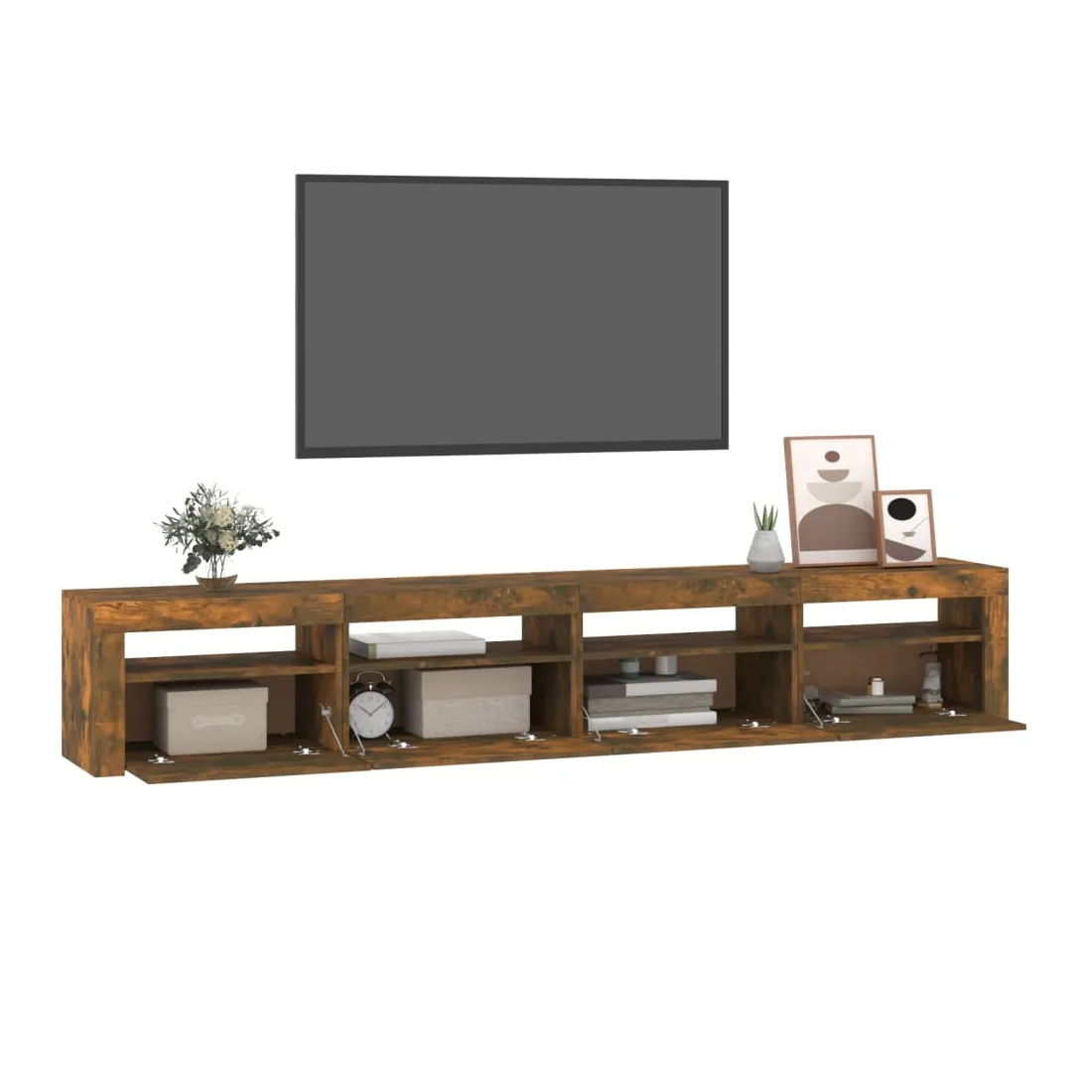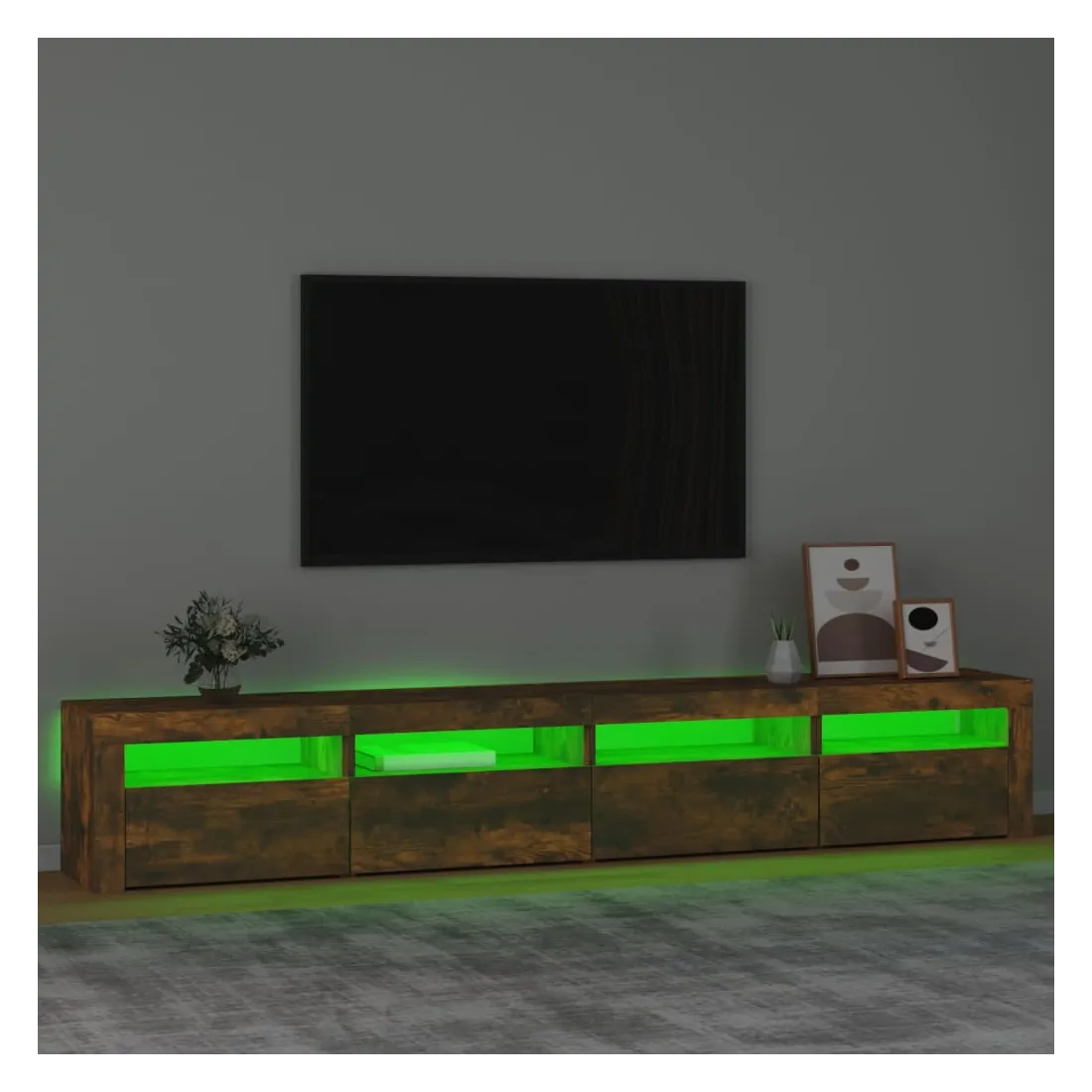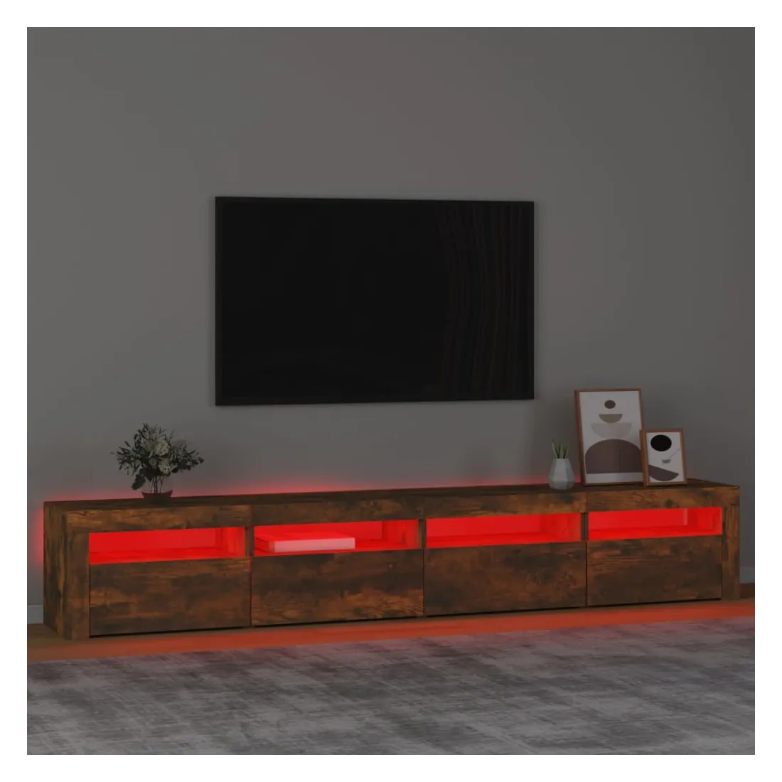 Avec un design à la fois tendance et pratique, ce meuble TV avec éclairage LED deviendra certainement un point central de votre pièce. Matériau pratique : le bois d'ingénierie est d'une qualité exceptionnelle avec une surface lisse et présente également résistance, stabilité et résistance à l'humidité. Lumières LED colorées : le meuble TV est doté de lumières LED RVB, qui ont différents menus pour changer la couleur des lumières et laisser la couleur s'ajuster automatiquement. Les lumières LED soulignent l'aspect moderne et contribuent à la sensation de tendance.Grand espace de rangement : le meuble TV offre un grand espace de rangement pour garder vos magazines, livres, télécommandes et autres petits objets bien organisés et à portée de main.Fonction d'affichage : le dessus robuste du meuble média est idéal pour exposer des objets décoratifs, des cadres photo et des plantes en pot. Remarque :Ce produit est doté d'un connecteur USB, mais la source d'alimentation certifiée de USB 5V n'est pas incluse.Chaque produit est livré avec un manuel de montage dans la boîte pour un montage facile.