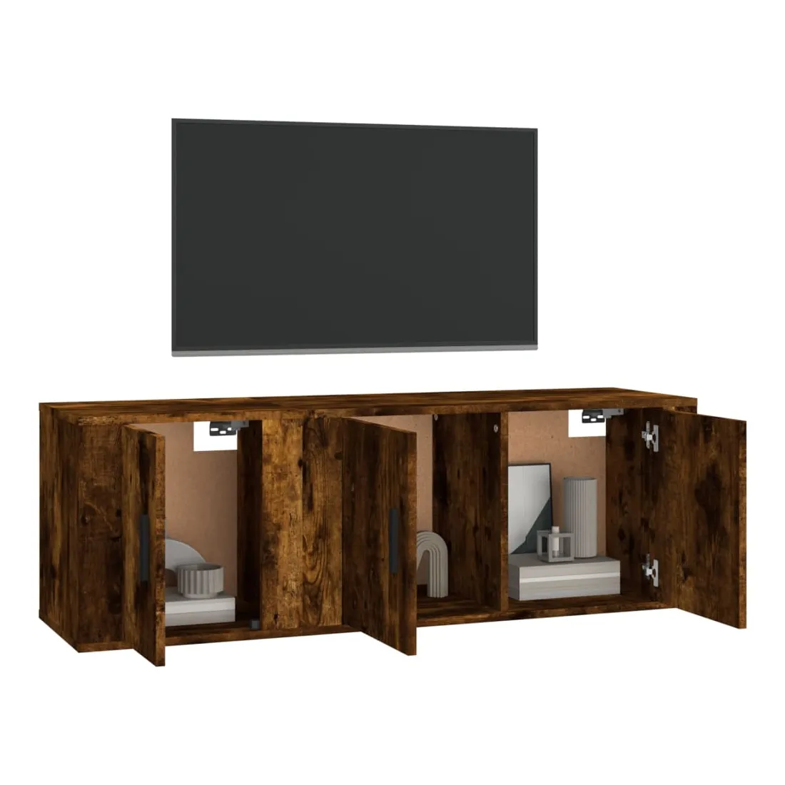 Cet ensemble de meubles TV classique est conçu pour être le point central de votre pièce, avec un design à la fois tendance et pratique. Matériau robuste : le bois d'ingénierie est d'une qualité exceptionnelle avec une surface lisse et présente également résistance, stabilité et résistance à l'humidité. Fabriqués en bois d'ingénierie, ces meubles TV sont faciles à nettoyer.Grand espace de rangement : ces meubles TV offrent un grand espace de rangement pour garder tous vos magazines, DVD et autres articles bien organisés.Fonction murale : ces armoires multimédias ne prennent pas de place au sol. Vous pouvez facilement les accrocher au mur.Portes pratique : gardez vos essentiels à l'abri de la poussière en les cachant derrière les portes des meubles multimédia. Bon à savoir :Pour faciliter au maximum le montage, chaque produit est livré avec des instructions.Les vis et les chevilles pour l'intérieur du mur ne sont pas incluses. Nous vous conseillons de trouver et d'utiliser des vis et des chevilles adaptées spécifiquement à vos murs. Si vous n'êtes pas sûr, vous pouvez consulter un professionnel. Veuillez lire et suivre chaque étape des instructions.