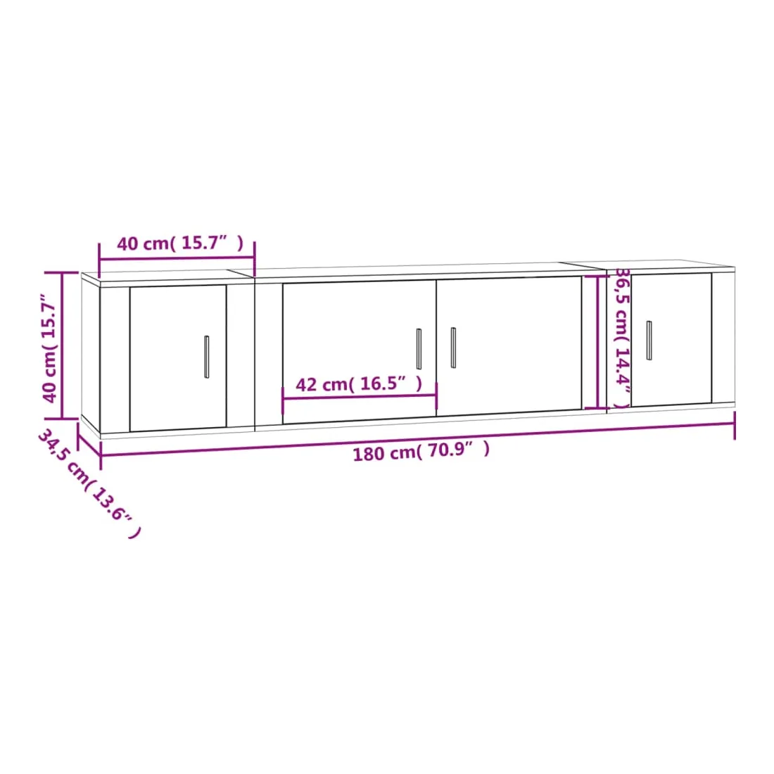 - 2 x meuble TV : 40 x 34,5 x 40 cm (l x P x H)