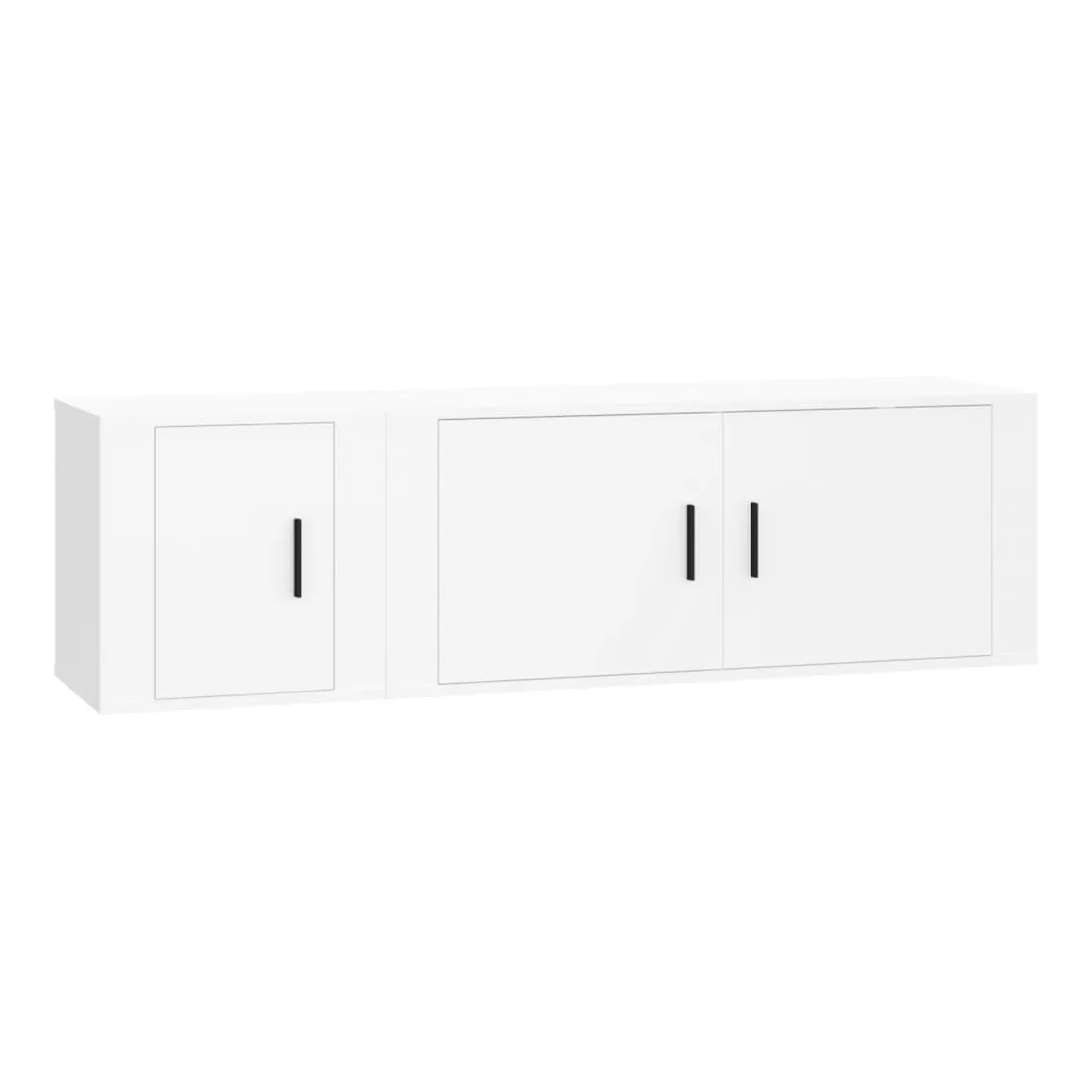 Cet ensemble de meubles TV classique est conçu pour être le point central de votre pièce, avec un design à la fois tendance et pratique. Matériau robuste : le bois d'ingénierie est d'une qualité exceptionnelle avec une surface lisse et présente également résistance, stabilité et résistance à l'humidité. Fabriqués en bois d'ingénierie, ces meubles TV sont faciles à nettoyer.Grand espace de rangement : ces meubles TV offrent un grand espace de rangement pour garder tous vos magazines, DVD et autres articles bien organisés.Fonction murale : ces armoires multimédias ne prennent pas de place au sol. Vous pouvez facilement les accrocher au mur.Portes pratique : gardez vos essentiels à l'abri de la poussière en les cachant derrière les portes des meubles multimédia. Bon à savoir :Pour faciliter au maximum le montage, chaque produit est livré avec des instructions.Les vis et les chevilles pour l'intérieur du mur ne sont pas incluses. Nous vous conseillons de trouver et d'utiliser des vis et des chevilles adaptées spécifiquement à vos murs. Si vous n'êtes pas sûr, vous pouvez consulter un professionnel. Veuillez lire et suivre chaque étape des instructions.