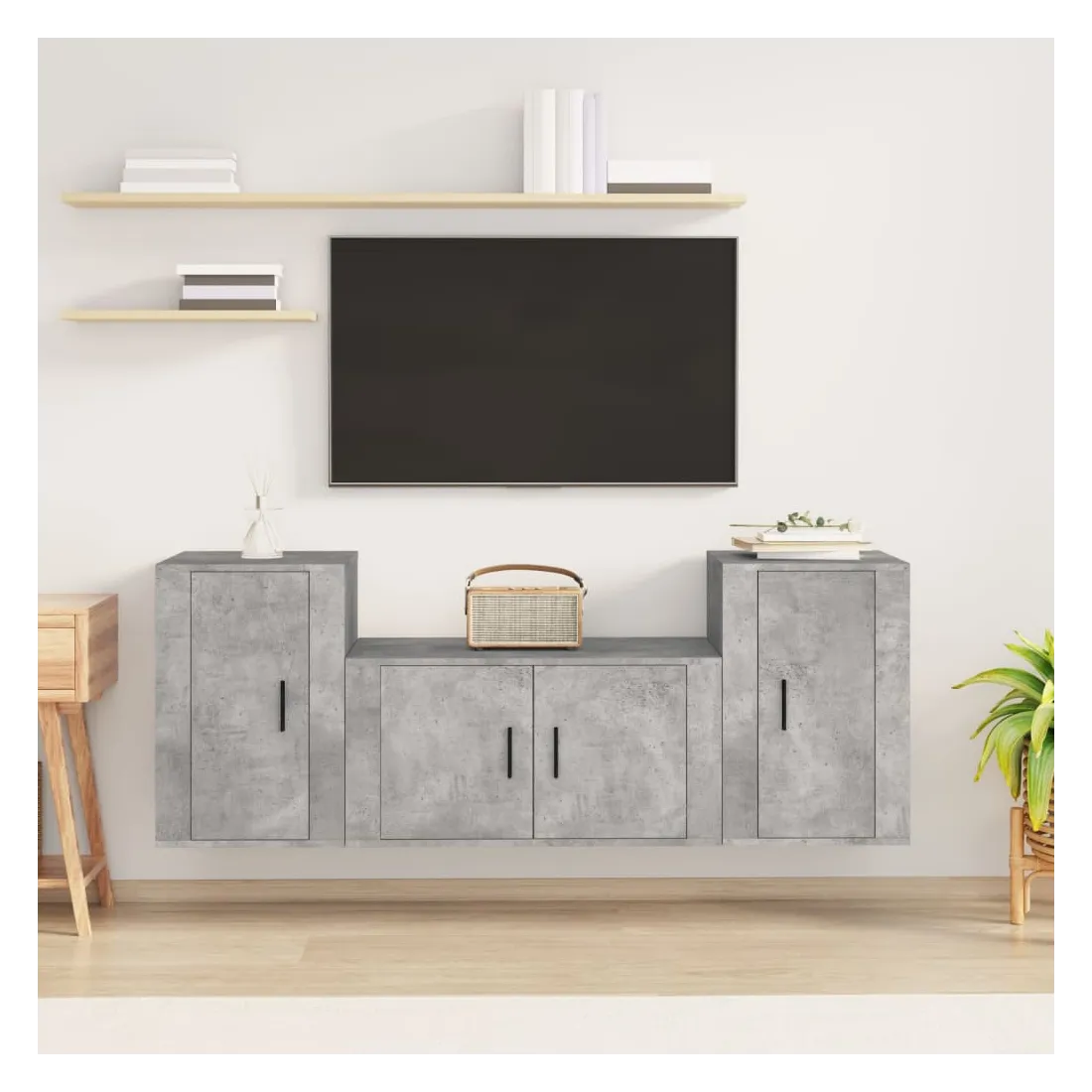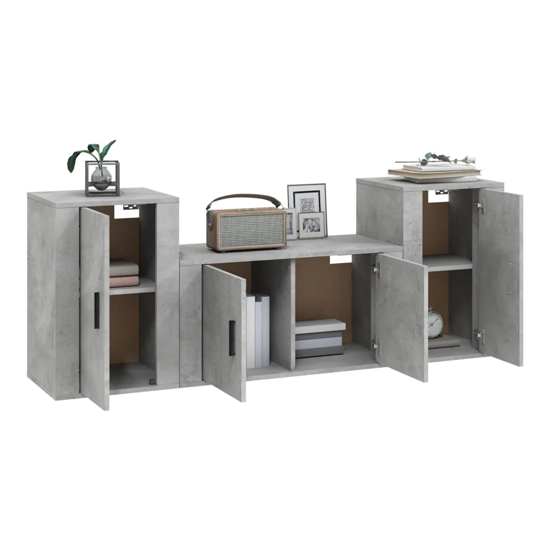 Ensemble de meubles TV 3 pcs Gris béton Bois d'ingénierie