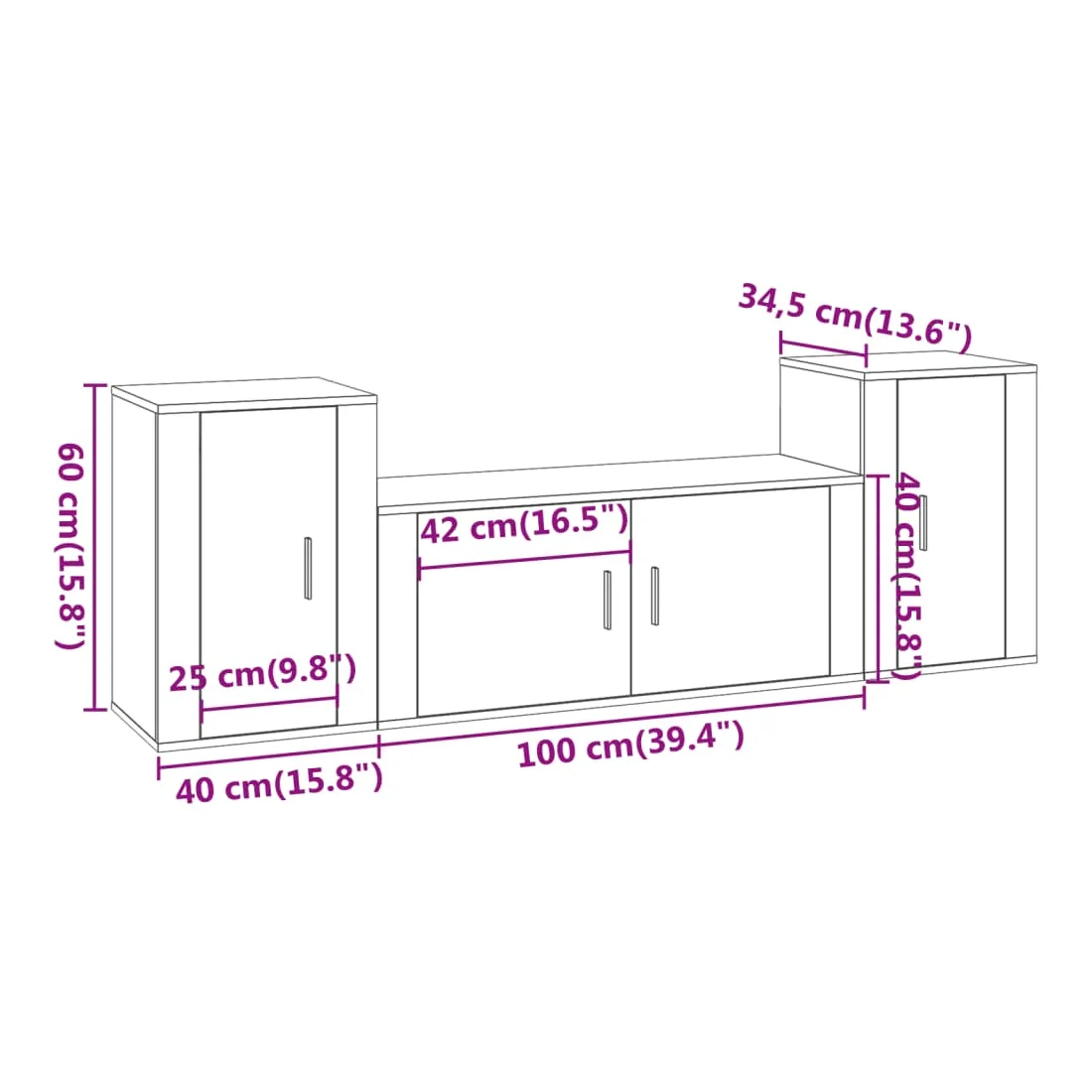 Ensemble de meubles TV 3 pcs Chêne fumé Bois d'ingénierie