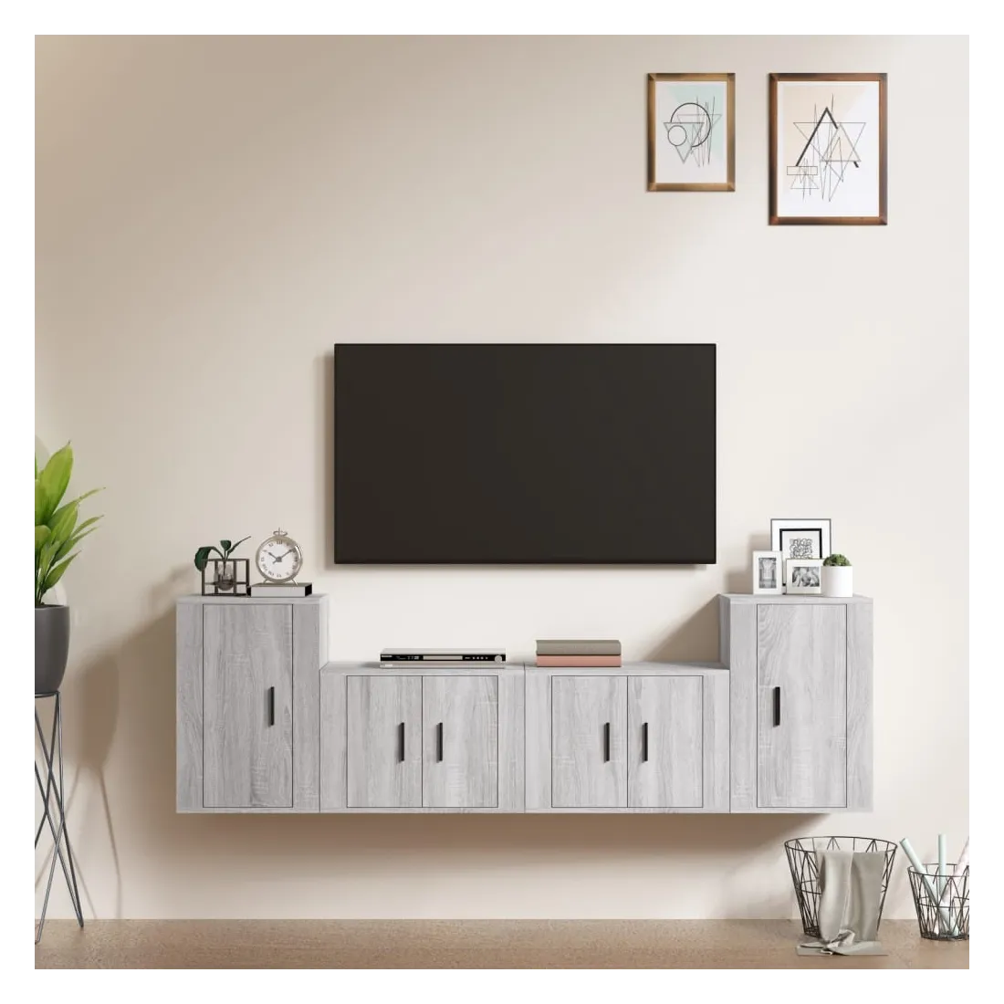Cet ensemble de meubles TV classique est conçu pour être le point central de votre pièce, avec un design à la fois tendance et pratique. Matériau robuste : le bois d'ingénierie est d'une qualité exceptionnelle avec une surface lisse et présente également résistance, stabilité et résistance à l'humidité.Grand espace de rangement : l'ensemble de meubles TV offre un grand espace de rangement pour garder tous vos magazines, DVD et autres articles bien organisés.Design mural : le meuble TV ne prend pas de place au sol. Vous pouvez l'accrocher au mur facilement. Bon à savoir :Pour faciliter au maximum le montage, chaque produit est livré avec des instructions.Les vis et les chevilles pour l'intérieur du mur ne sont pas incluses. Nous vous conseillons de trouver et d'utiliser des vis et des chevilles adaptées spécifiquement à vos murs. Si vous n'êtes pas sûr, vous pouvez consulter un professionnel. Veuillez lire et suivre chaque étape des instructions.