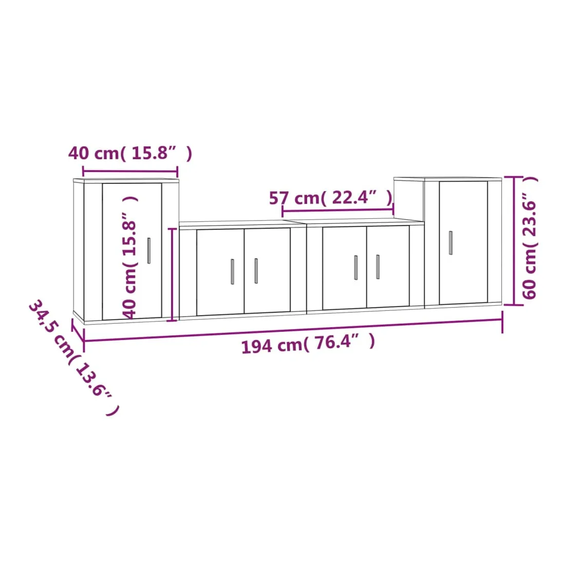 - 2 x meuble TV : 40 x 34,5 x 60 cm (L x l x H)