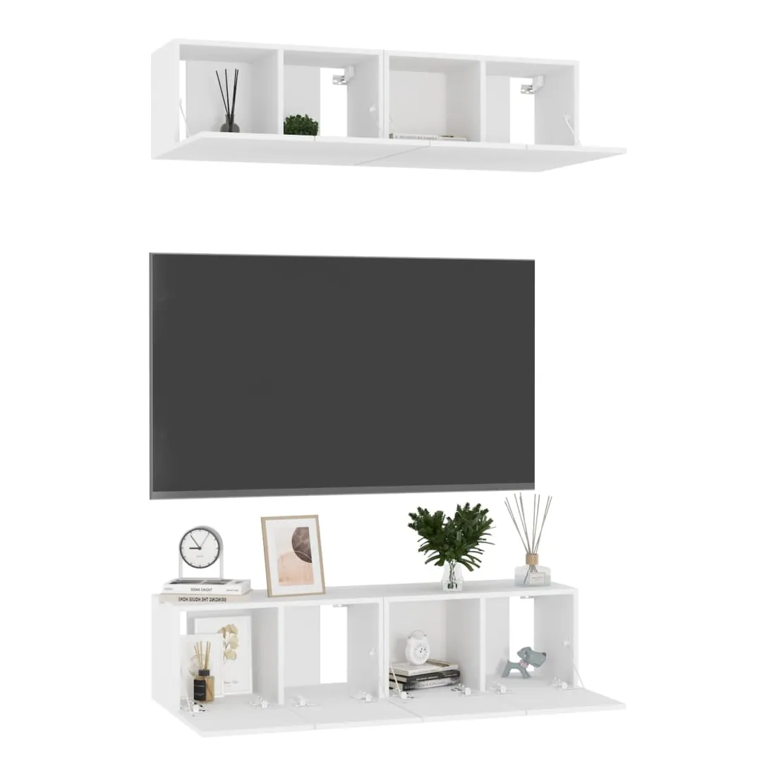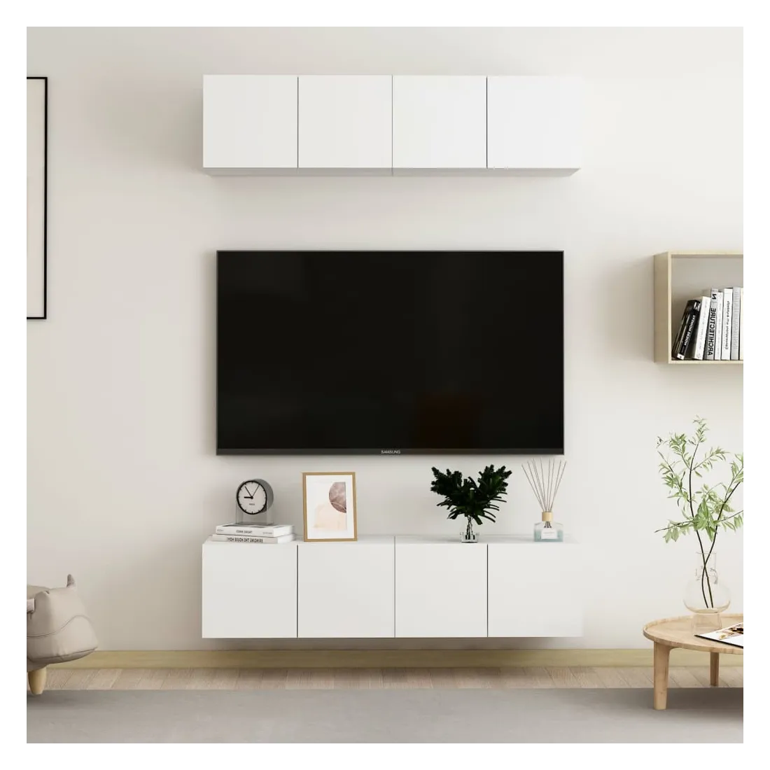 Cet ensemble de meuble TV robuste est destiné à être le point de mire de votre pièce avec un design à la fois tendance et pratique. Le meuble TV est fixé au mur, ce qui en fait un supplément intemporel à votre maison. Il offre de nombreux compartiments de rangement, ce qui en fait un endroit idéal pour stocker tous vos livres, magazines, DVD ou autres objets. Le meuble stéréo est facile à entretenir et à nettoyer avec un chiffon humide.