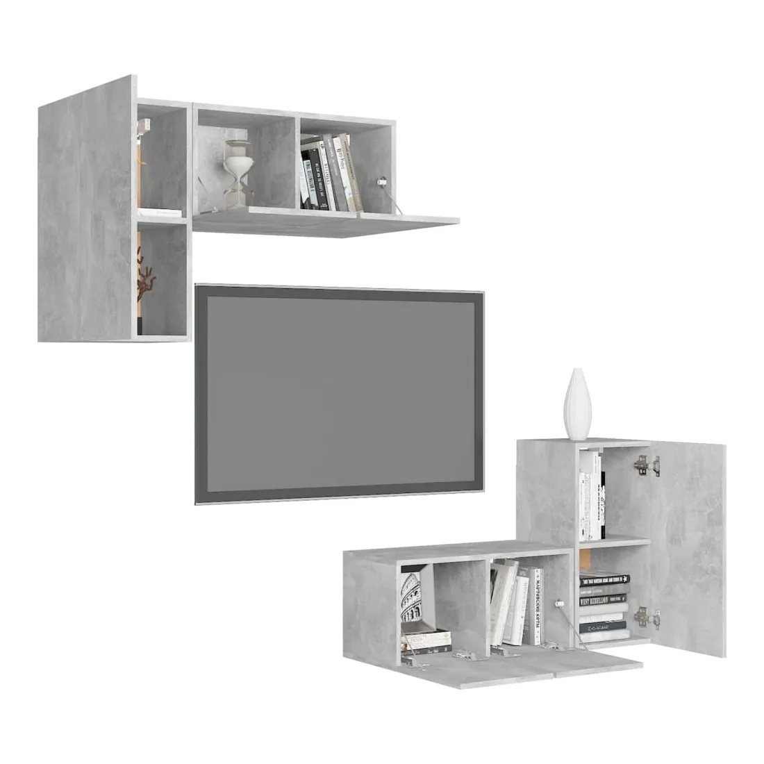 Ensemble de meubles TV 4 pcs Gris béton Bois d'ingénierie