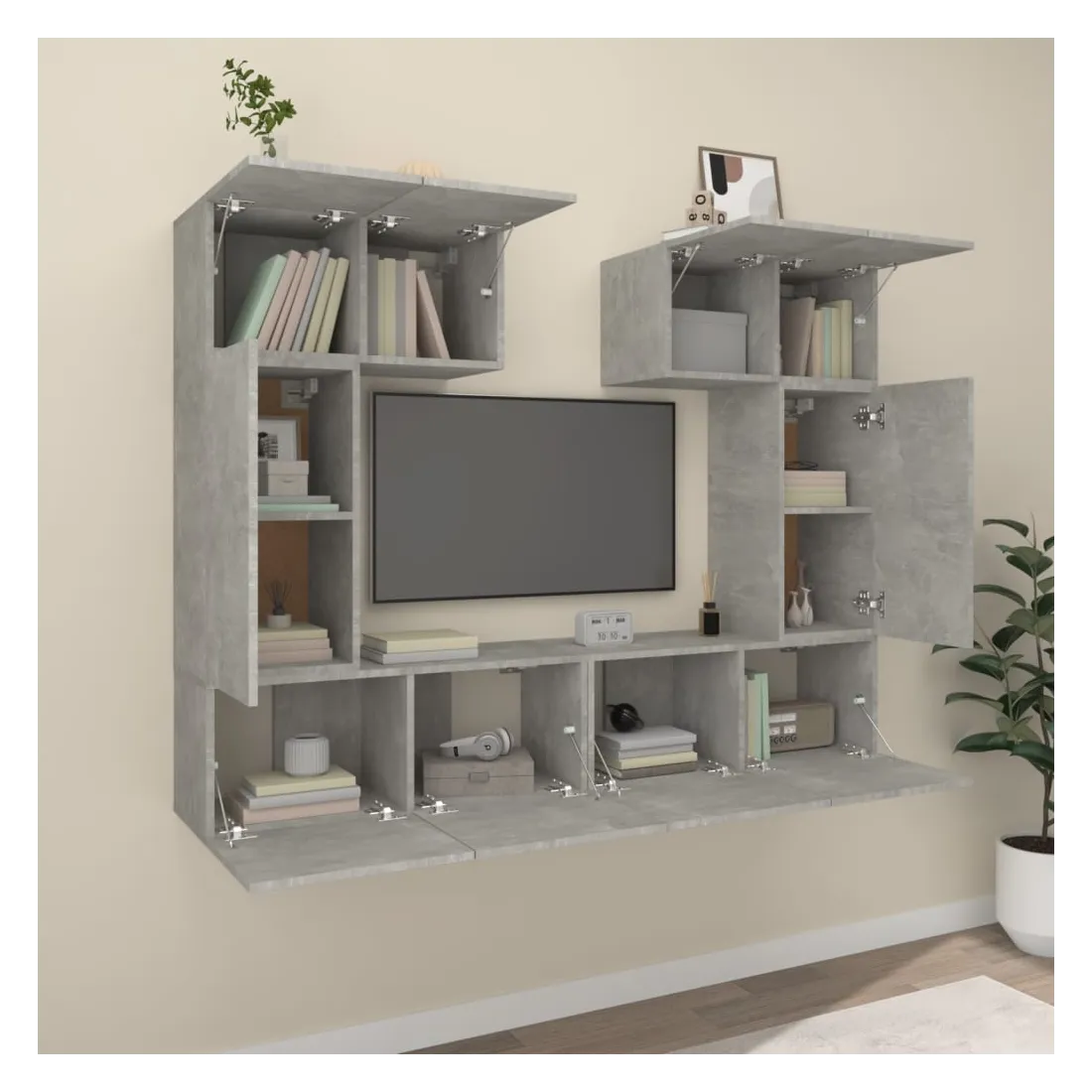 Ensemble de meubles TV 6 pcs Gris béton Bois d'ingénierie