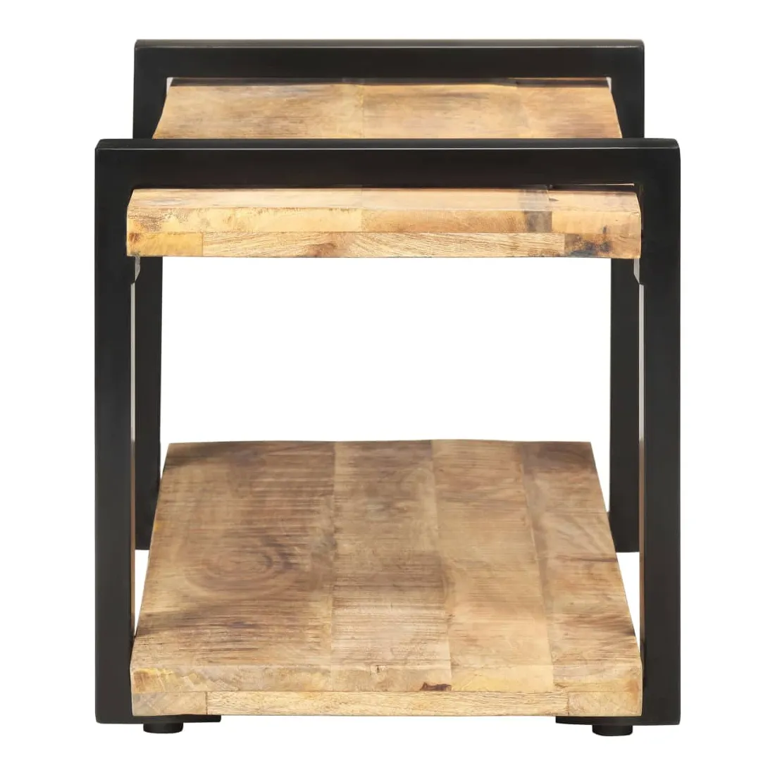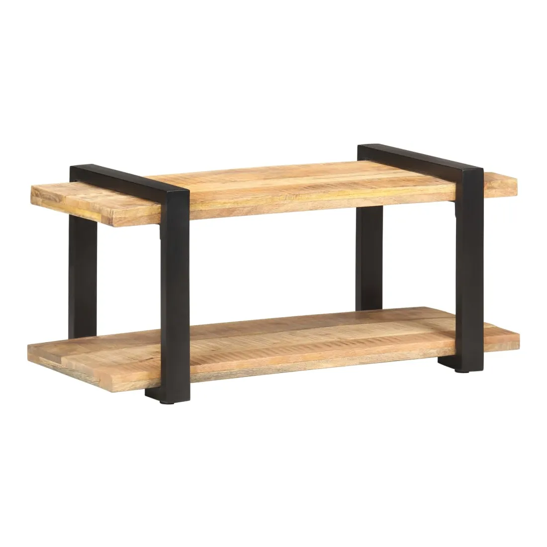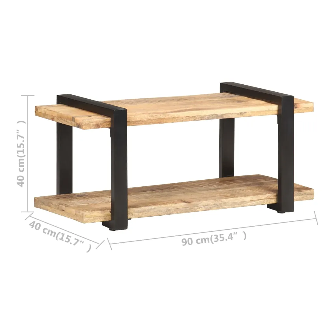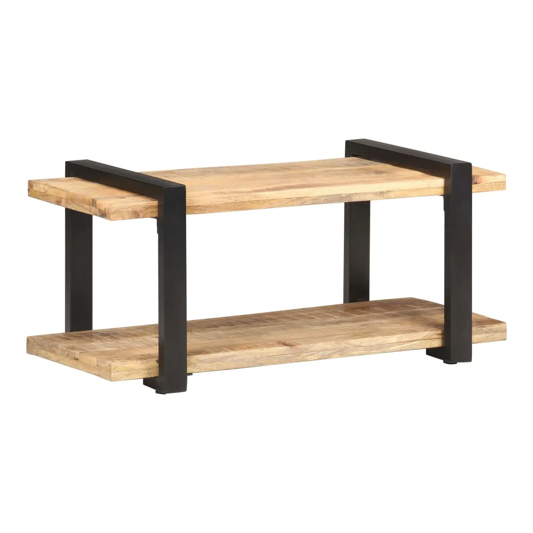 - Matériau : bois de manguier brut avec une finition naturelle, fer avec revêtement en poudre noire