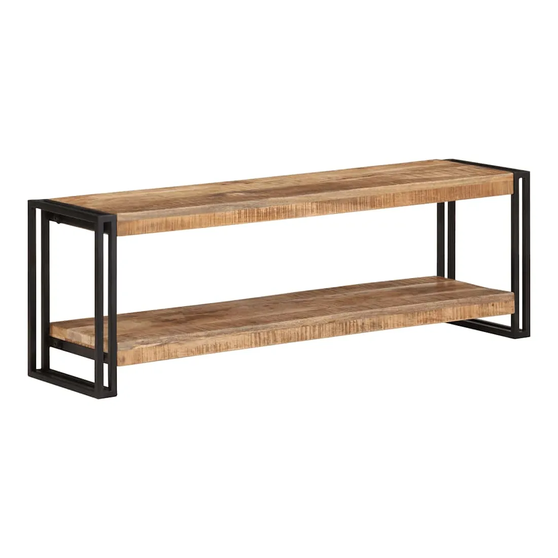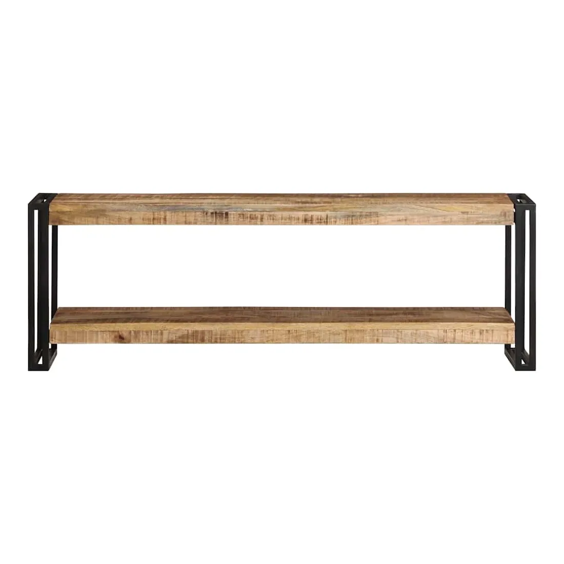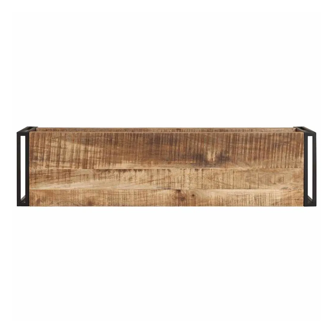 Ce meuble TV en bois ajoute un aspect industriel et convient à votre salon et votre chambre à coucher. Le meuble TV est fait de bois de manguier brut, un bois dur tropical avec la force de soutenir le poids. Il résiste également à l’usure du temps, ce qui le rend stable et durable. Le dessus robuste peut être utilisé pour mettre vos objets décoratifs. L’étagère de rangement offre également beaucoup d’espace pour stocker vos appareils multimédia, livres, ainsi que divers autres articles. Remarque importante : les couleurs et les grains varient d'une pièce à l'autre, rendant chaque pièce unique. La livraison est aléatoire, ce qui garantit l'exclusivité et l'individualité de votre produit.