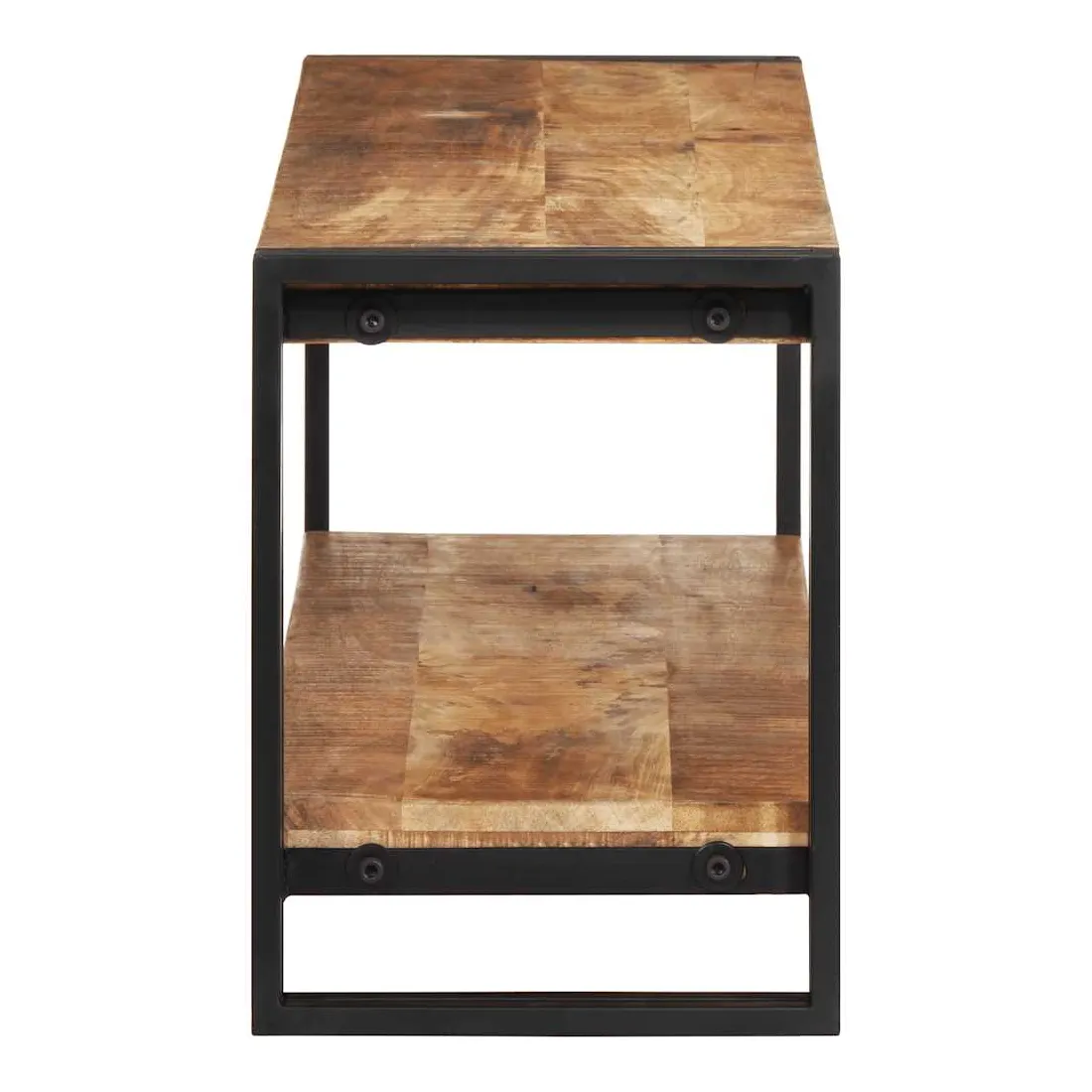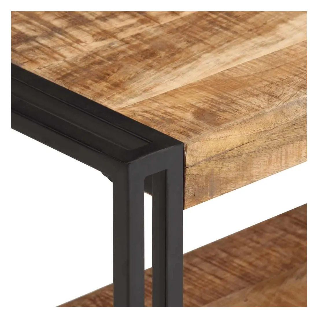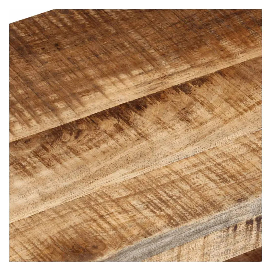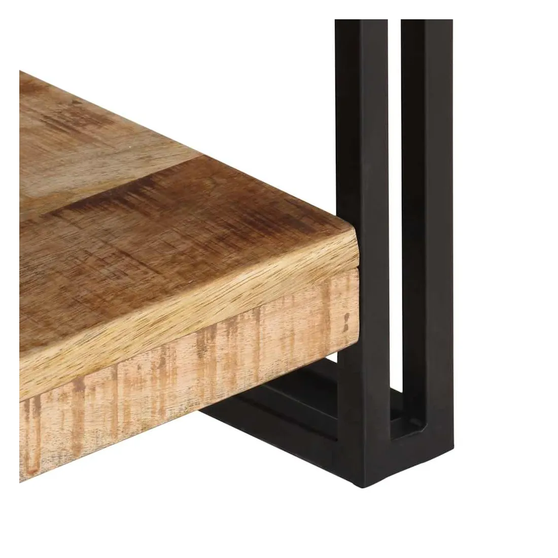 - Matériau : bois de manguier brut avec une finition naturelle, fer avec revêtement en poudre noire