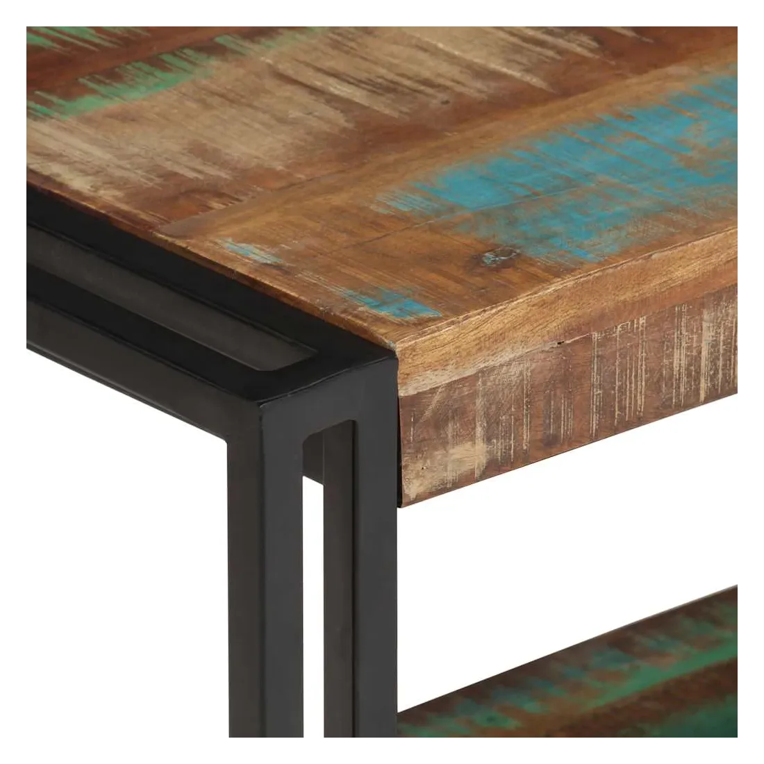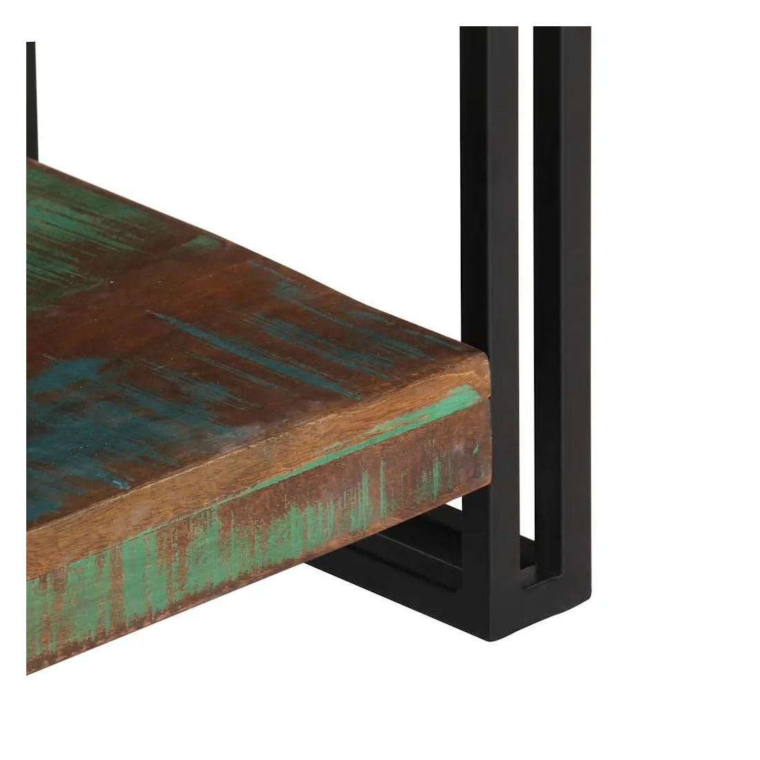 - Matériau : bois de récupération massif avec une finition de couleur mélangée, fer avec une finition enduite de poudre noire