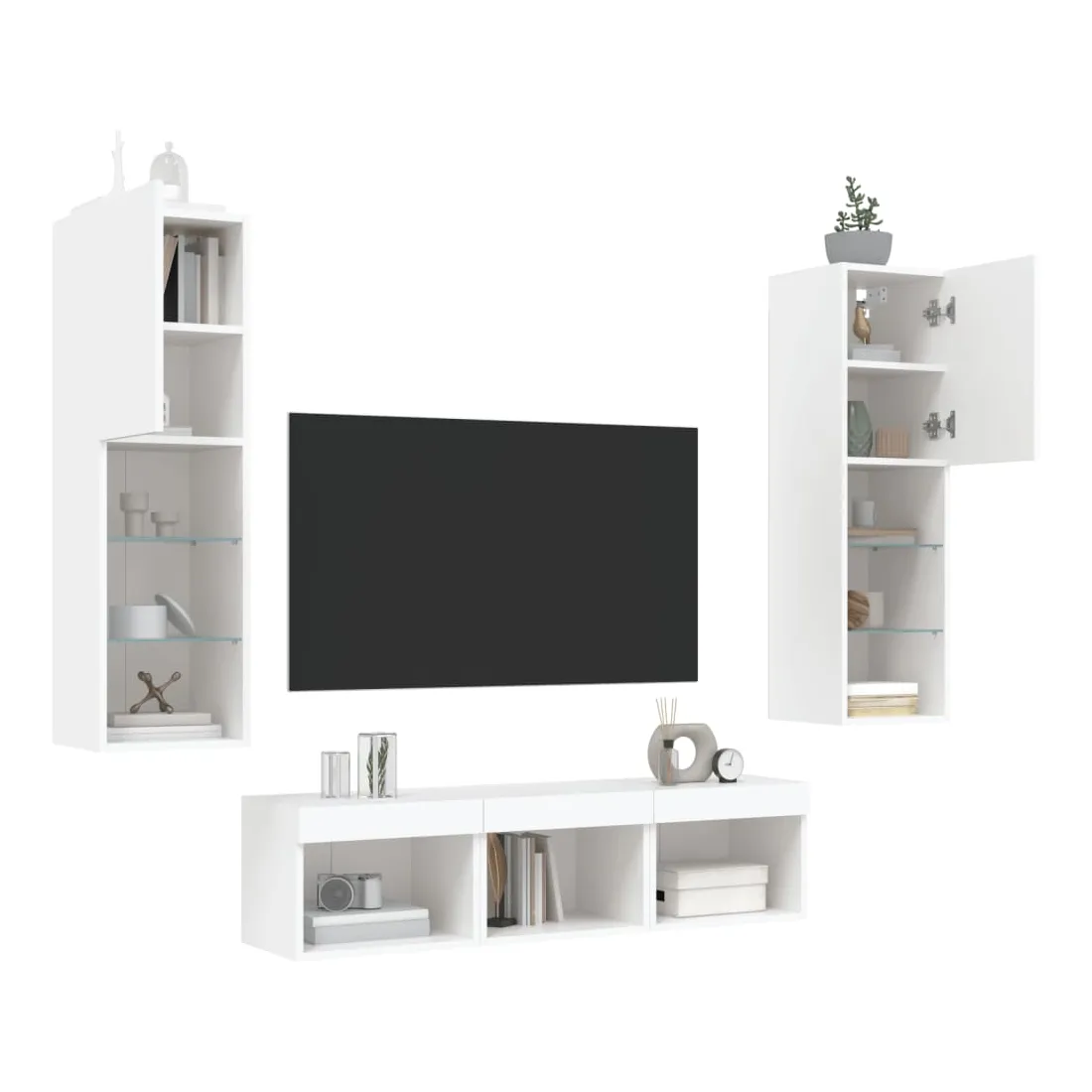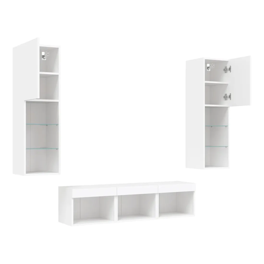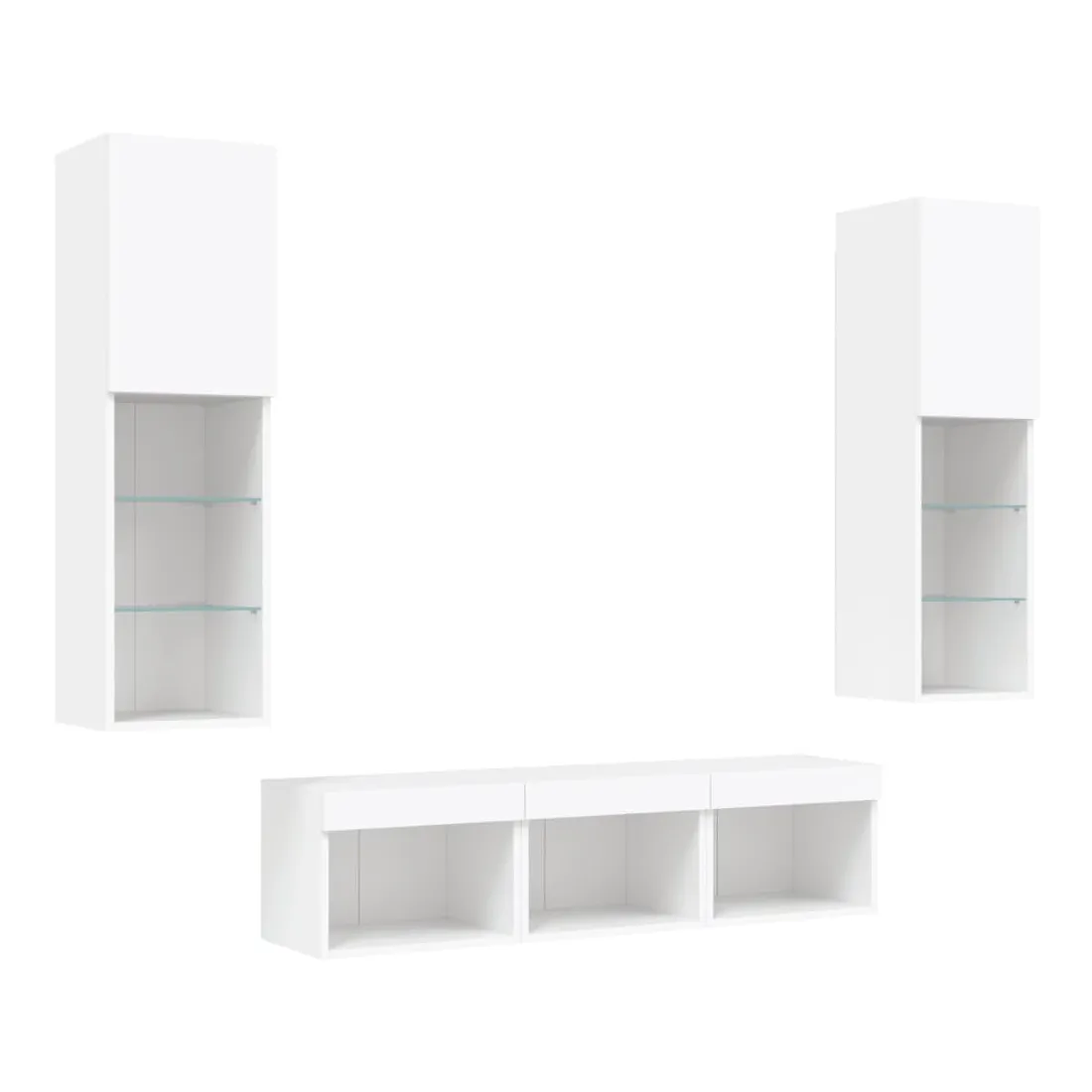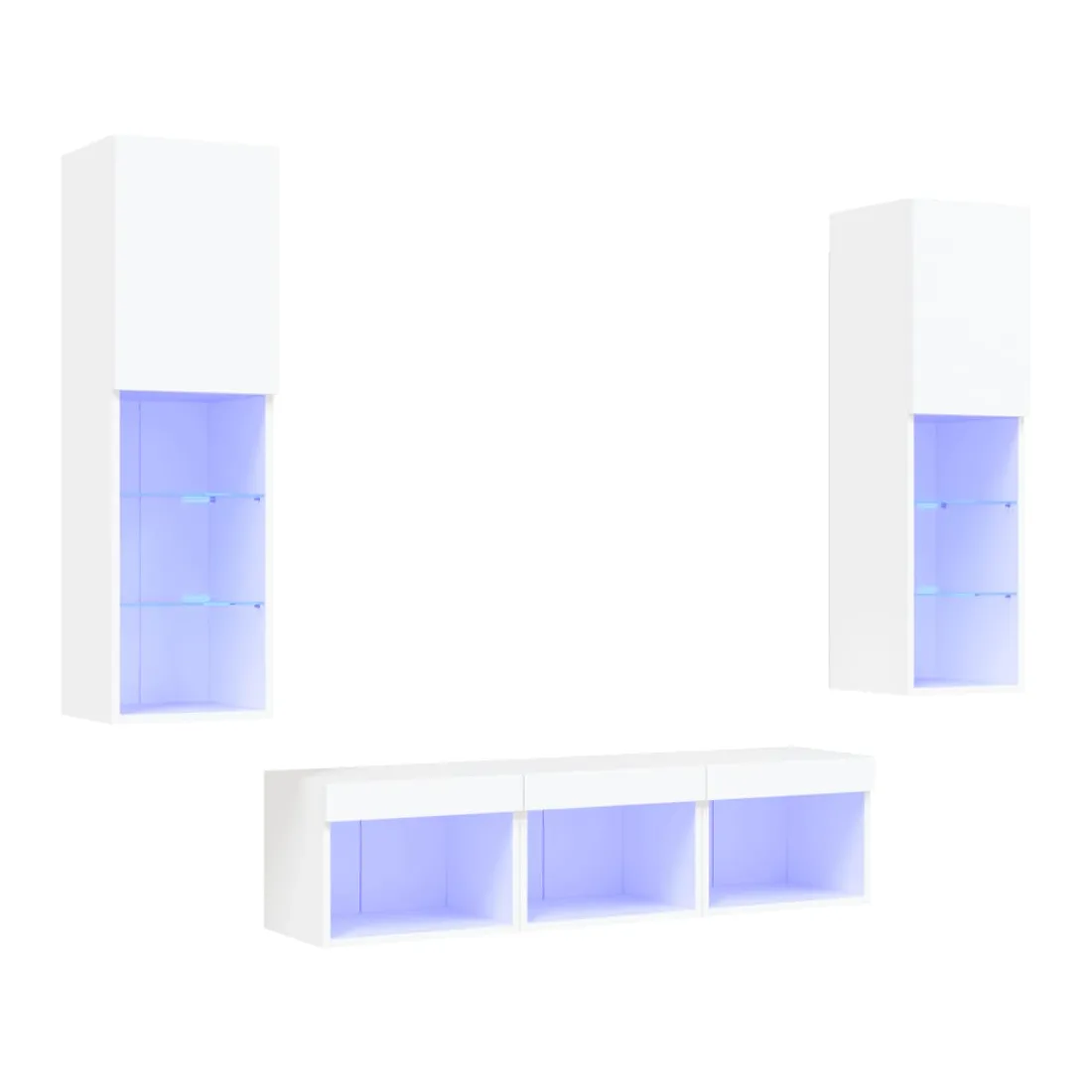 Ces unités murales TV sont la solution parfaite pour votre espace de vie afin de maximiser l'espace et de garder les surfaces au sol sans encombrement. Matériau robuste : le bois d'ingénierie est d'une qualité exceptionnelle avec une surface lisse et présente également résistance, stabilité et résistance à l'humidité.Lumières LED RVB : la unité TV est équipée de lumières LED RVB vibrantes. Avec divers menus personnalisables, vous pouvez changer sans effort la couleur des lumières et même les régler automatiquement. Ces lumières LED renforcent non seulement l'aspect contemporain du meuble TV flottant, mais aussi son attrait pour la mode.Design mural : le meuble de télévision peut être fixé au mur pour ajouter un espace de stockage supplémentaire. De cette façon, vous pouvez maximiser votre espace au sol et garder la zone propre.Grand espace de rangement : le meuble TV flottant est doté de différentes options de rangement, offrant ainsi un grand espace pour ranger vos objets quotidiens tels que les livres, les DVD, les accessoires multimédias et d'autres articles bien organisés et à portée de main.Design polyvalent : vous pouvez l'utiliser comme meuble TV ou le monter sur le mur du lieu de travail pour un rangement pratique des outils ou d'autres articles divers. En outre, il transforme un mur vide en élément de design. Bon à savoir :Les vis et les chevilles pour l'intérieur du mur ne sont pas incluses. Nous vous conseillons de trouver et d'utiliser des vis et des chevilles adaptées spécifiquement à vos murs. Si vous n'êtes pas sûr, vous pouvez consulter un professionnel. Veuillez lire et suivre chaque étape des instructions.Ce produit est doté d'un connecteur USB qui nécessite une source d'alimentation USB de 5V certifiée (non incluse).