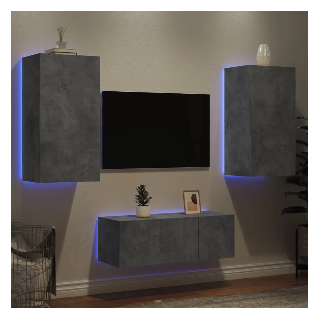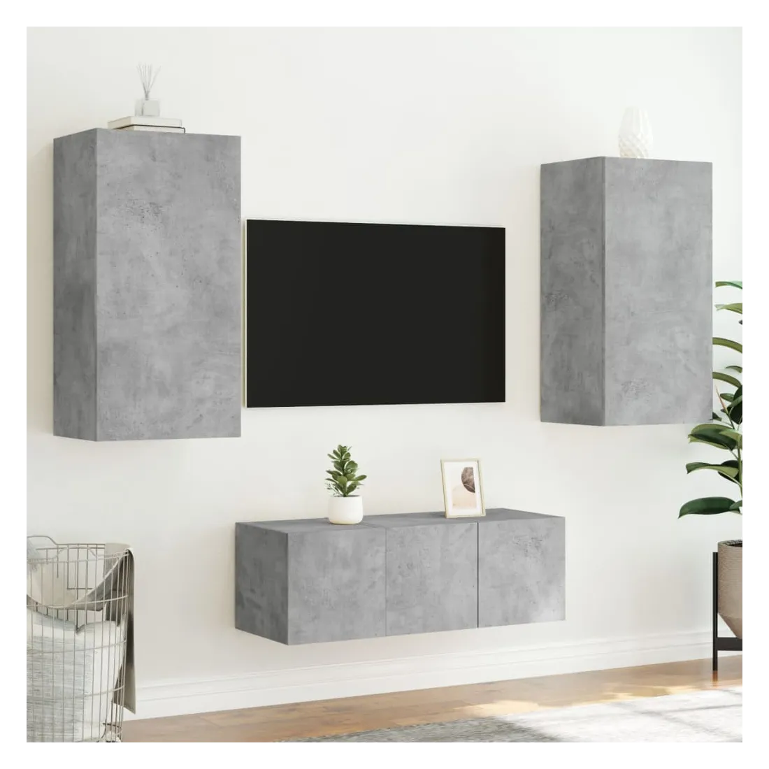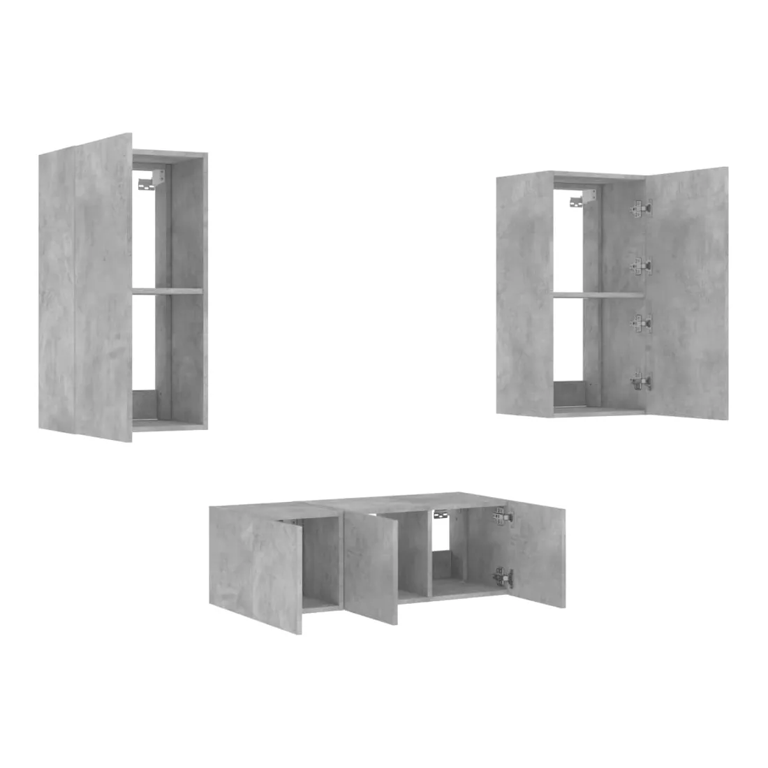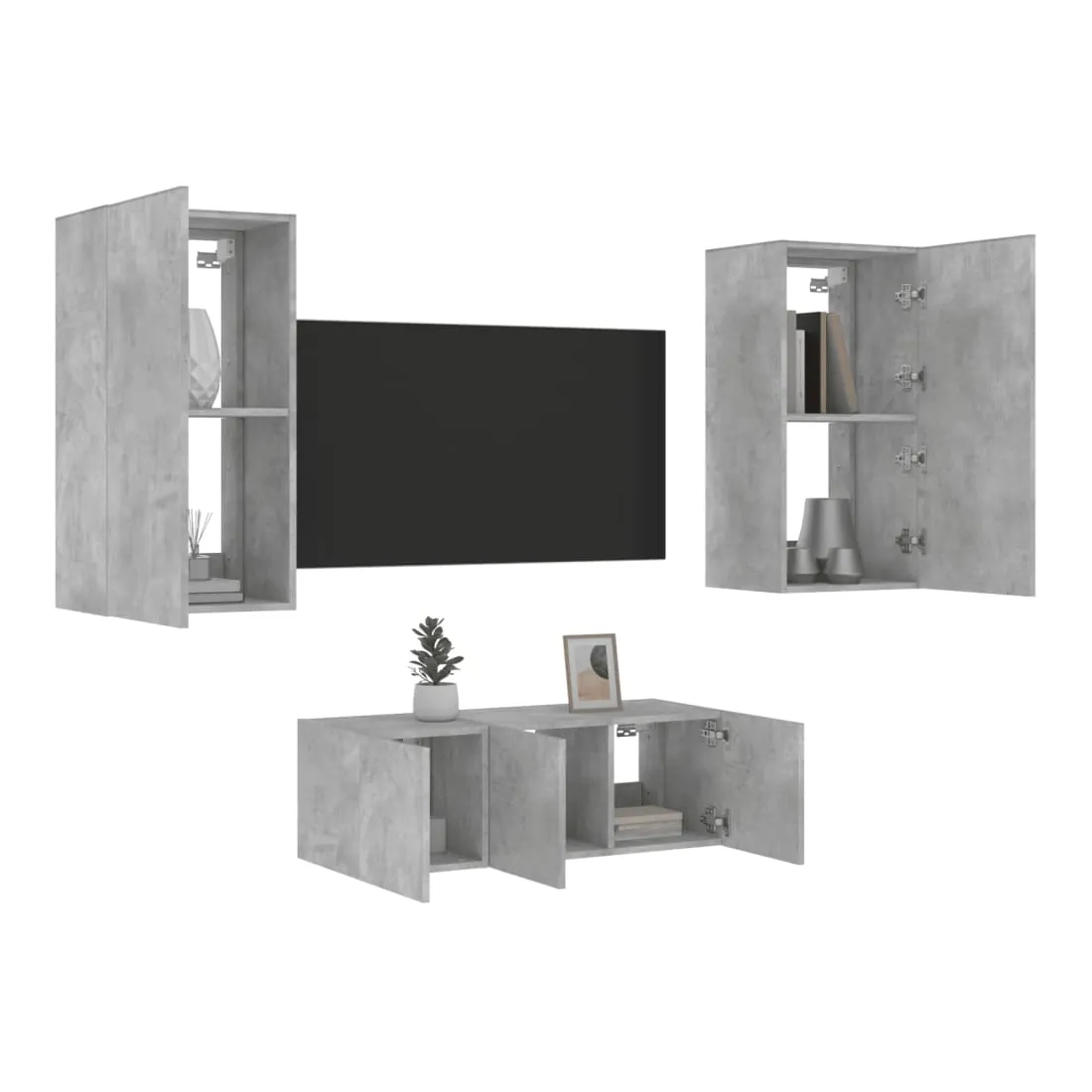 Unités murales TV avec LED 4 pcs gris béton bois d'ingénierie
