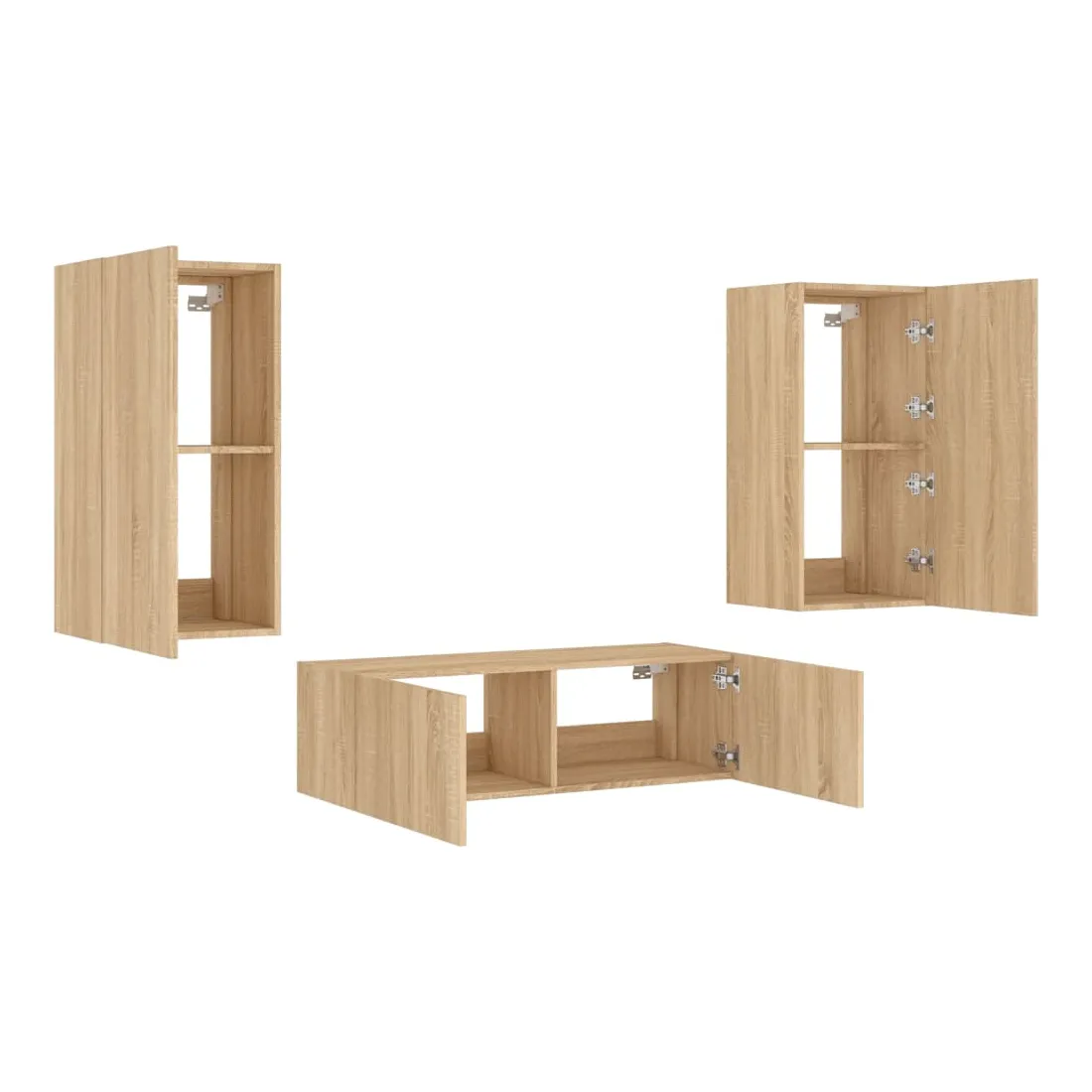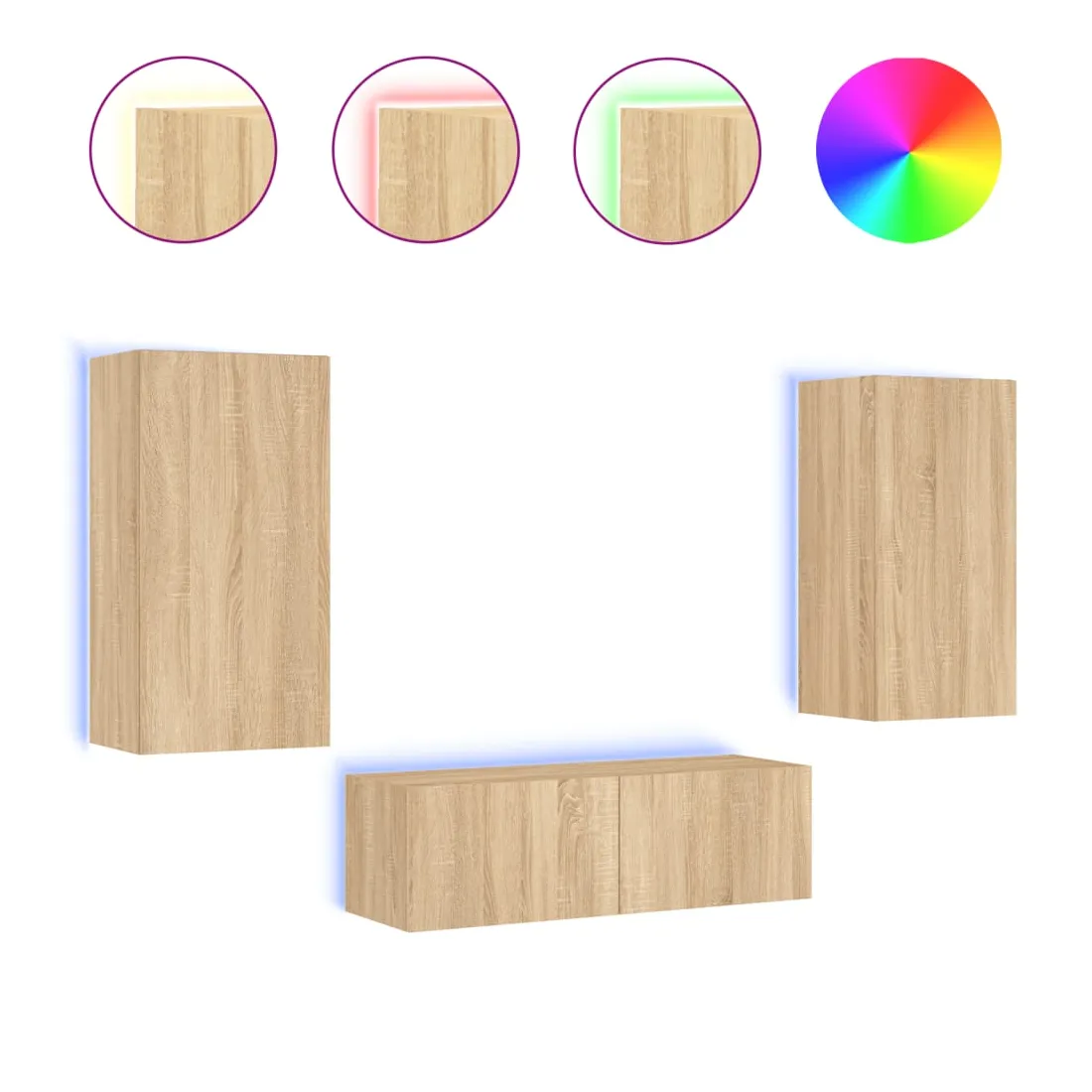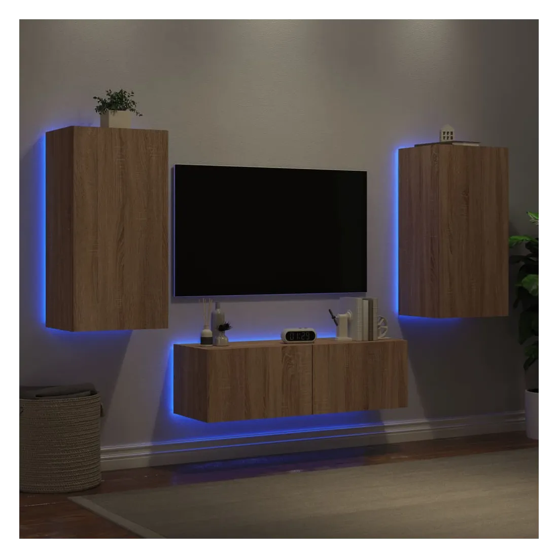 Ces armoires TV murales avec lumières LED sont la solution parfaite pour votre espace de vie afin de maximiser l'espace et de garder les surfaces au sol sans encombrement. Matériau durable : le bois d'ingénierie est d'une qualité exceptionnelle avec une surface lisse et présente également résistance, stabilité et résistance à l'humidité. Fabriqués en bois d'ingénierie, ces meubles TV flottants sont robustes et durables.Grand espace de rangement : les meubles TV muraux disposent d'un grand espace de rangement pour placer vos lecteurs DVD, livres, magazines ou autres objets décoratifs.Lumières LED RVB : les unités multimédia murales sont équipées d'éclairages LED RVB. Avec divers menus personnalisables, vous pouvez changer sans effort la couleur des lumières et même les régler automatiquement.Design mural : ces meubles TV avec rangement peuvent être fixés au mur pour ajouter de l'espace de stockage supplémentaire. De cette façon, vous pouvez maximiser votre espace au sol et garder la zone propre. Bon à savoir :Les vis et les chevilles pour l'intérieur du mur ne sont pas incluses. Nous vous conseillons de trouver et d'utiliser des vis et des chevilles adaptées spécifiquement à vos murs. Si vous n'êtes pas sûr, vous pouvez consulter un professionnel. Veuillez lire et suivre chaque étape des instructions.Ce produit est doté d'un connecteur USB qui nécessite une source d'alimentation USB de 5V certifiée (non incluse).