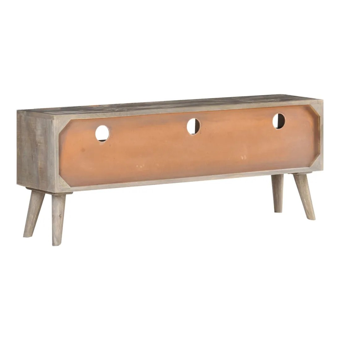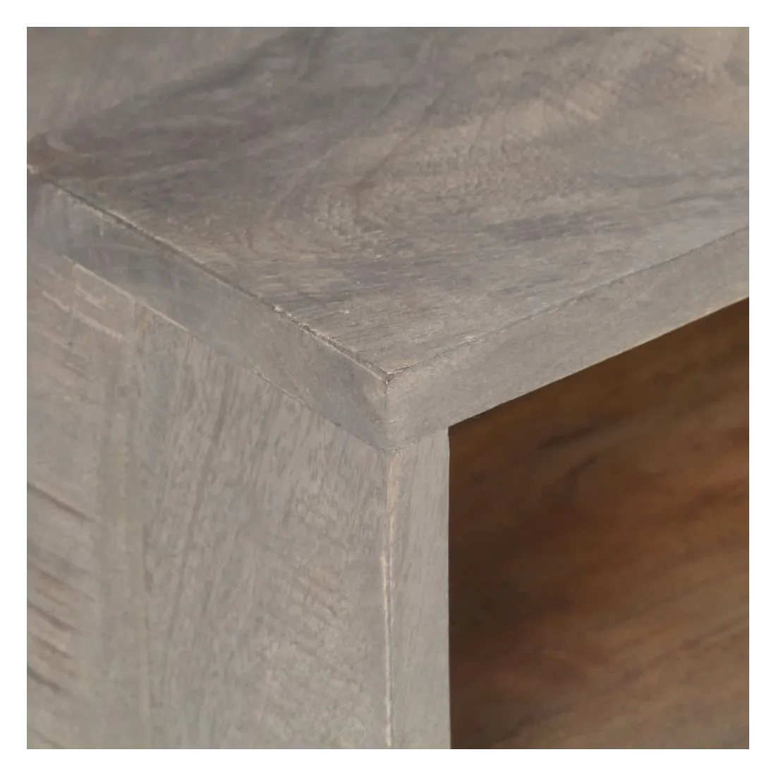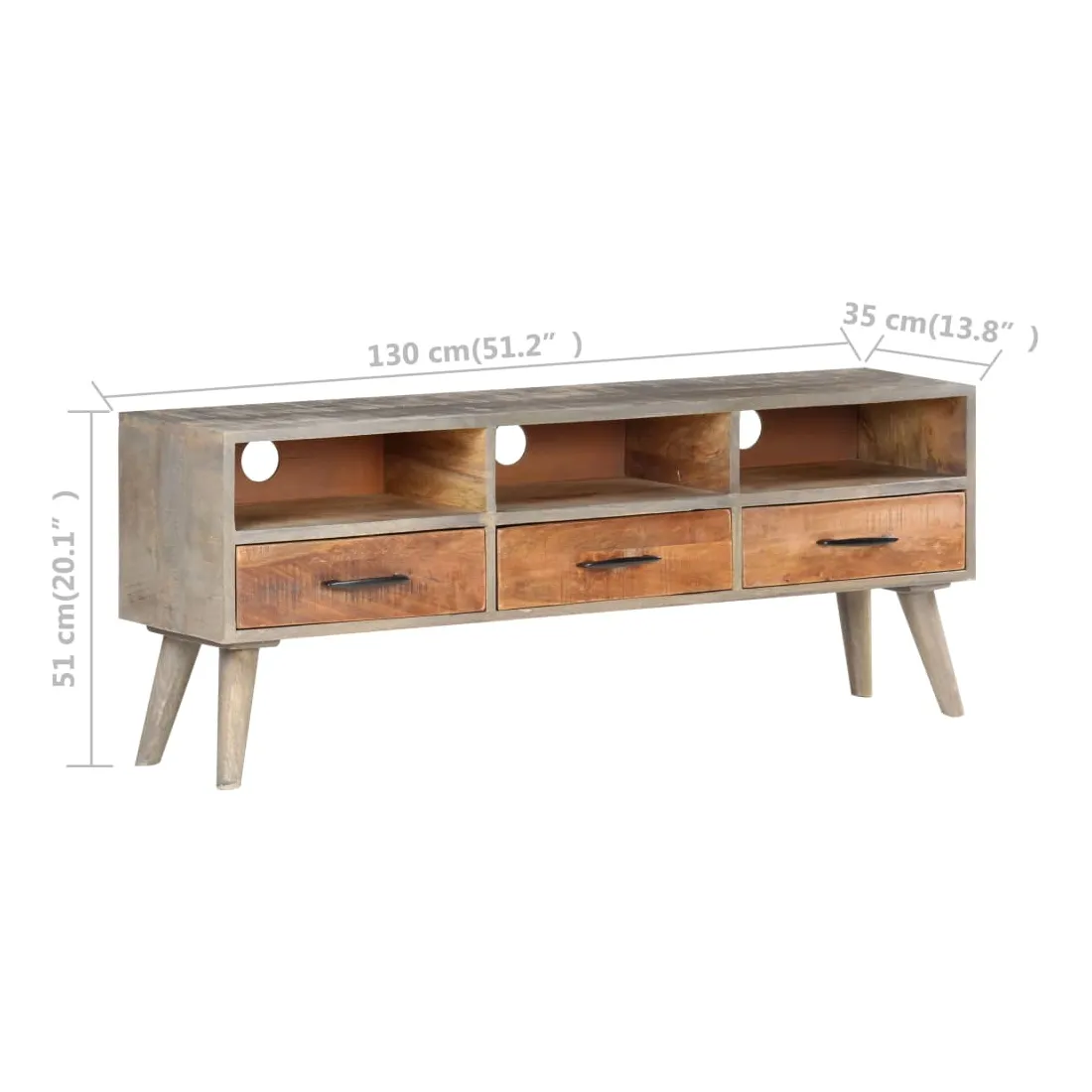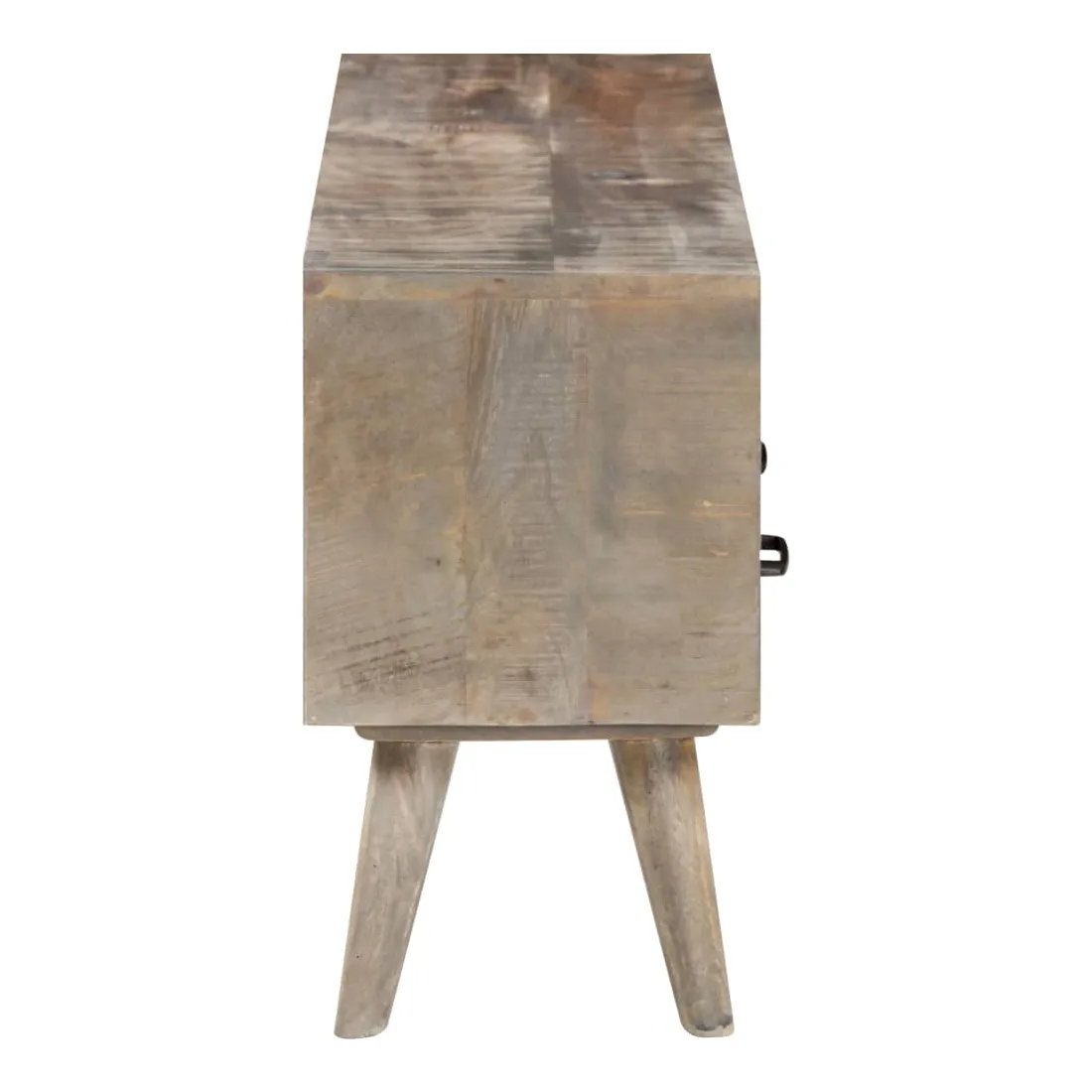 Cet élégant meuble TV en bois offrant un grand espace de rangement est destiné à être le point de mire de votre salon ou de votre zone de divertissement. Ce meuble TV est fait de bois de manguier massif, un bois dur tropical. Il a la force de soutenir le poids et résiste également à l'usure du temps. De plus, le savoir-faire exquis et les beaux grains de bois rendent chaque pièce légèrement différente l'une de l'autre. Cette armoire stéréo comprend 3 compartiments et 3 tiroirs, offrant un espace de rangement suffisant pour garder vos DVD, appareils multimédia, livres et petits articles essentiels organisés et à portée de main. Remarque importante : les couleurs varient d'une pièce à l'autre, rendant chaque pièce unique. La livraison est aléatoire, garantissant l'exclusivité et l'individualité de votre produit.