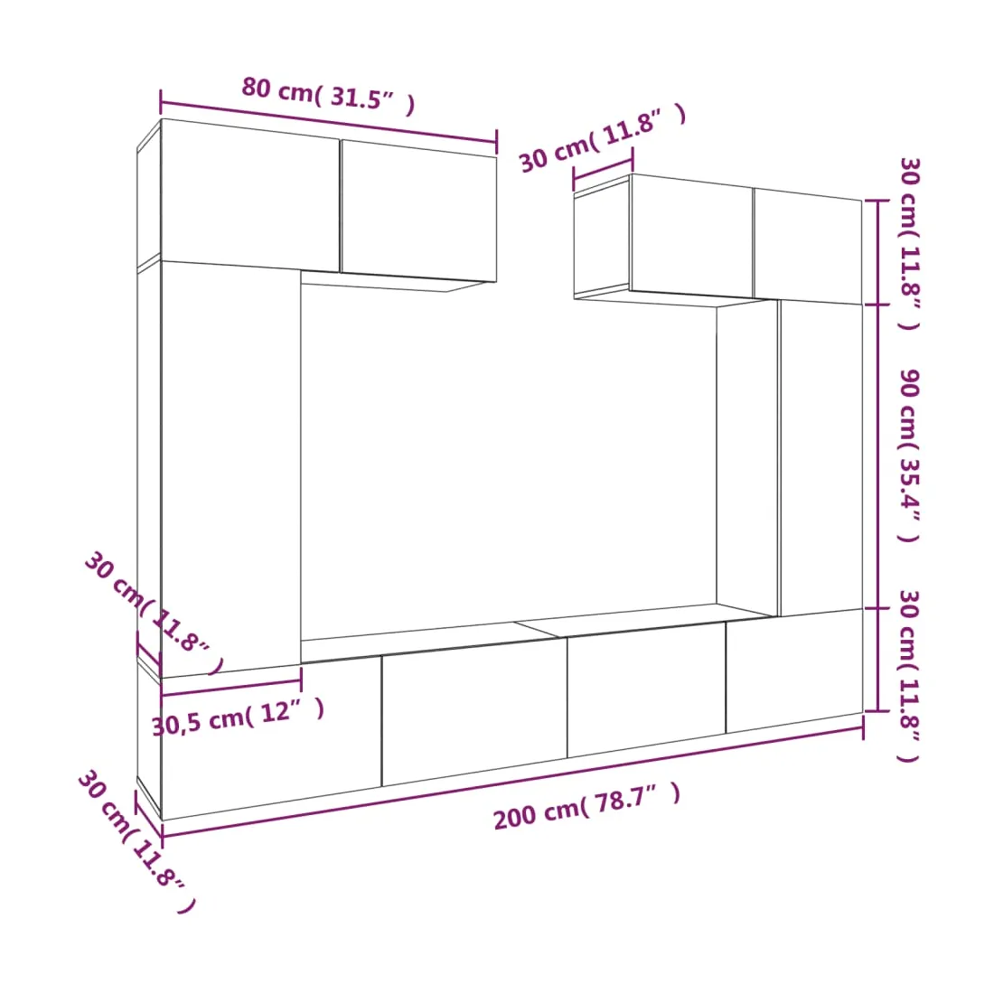 - 2 x meuble TV : 30,5 x 30 x 90 cm (L x l x H)