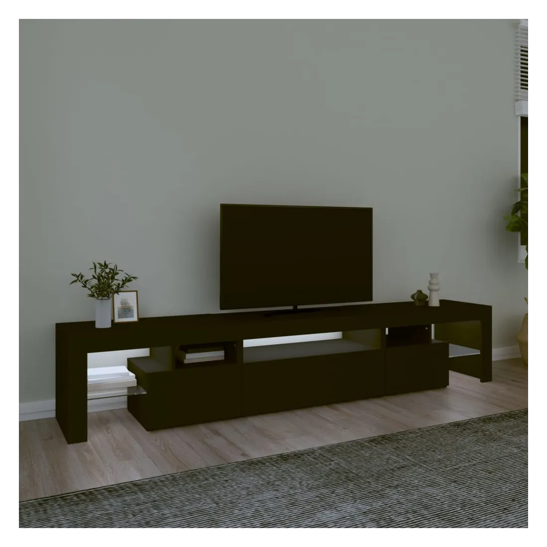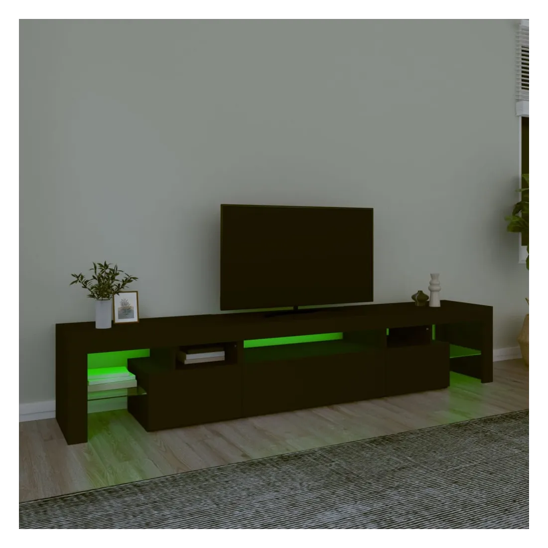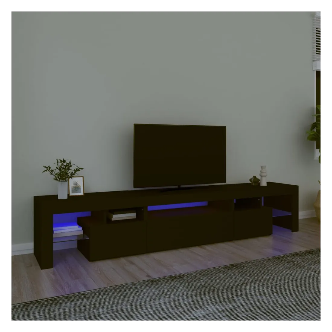 Meuble TV avec lumières LED Noir 215x36,5x40 cm