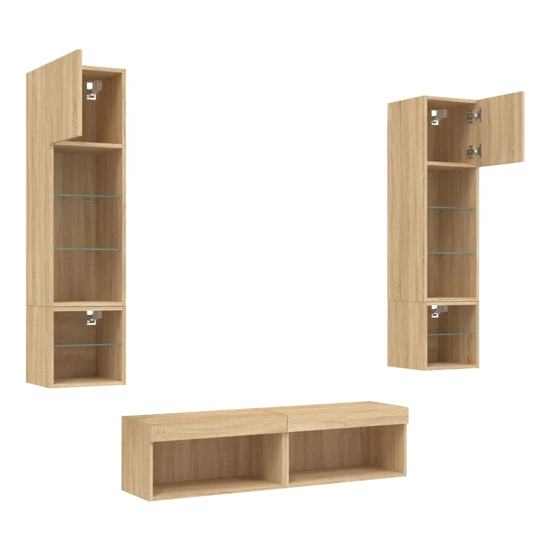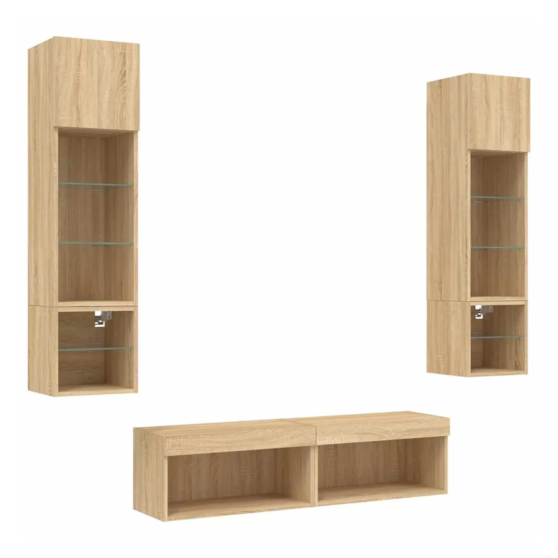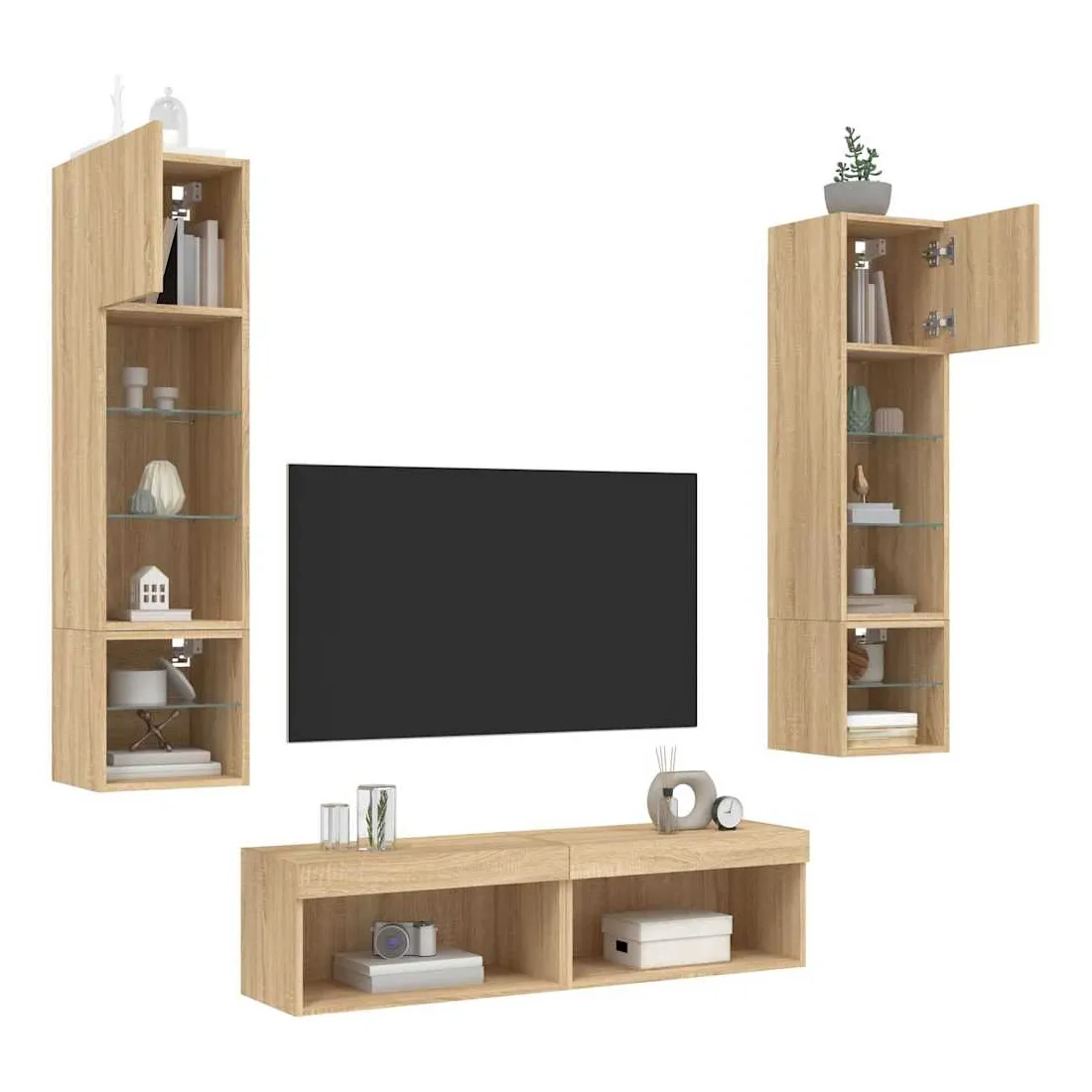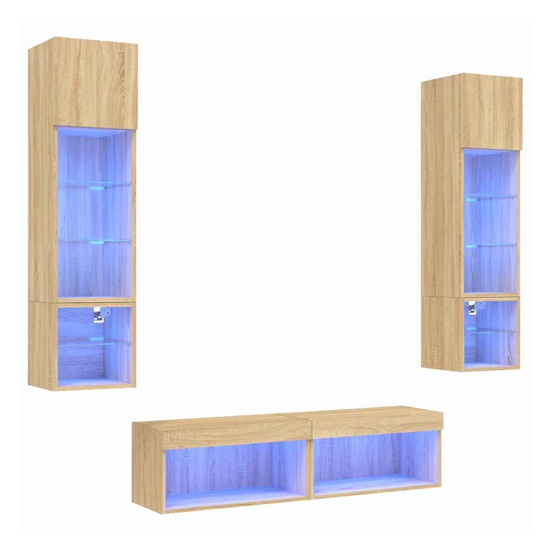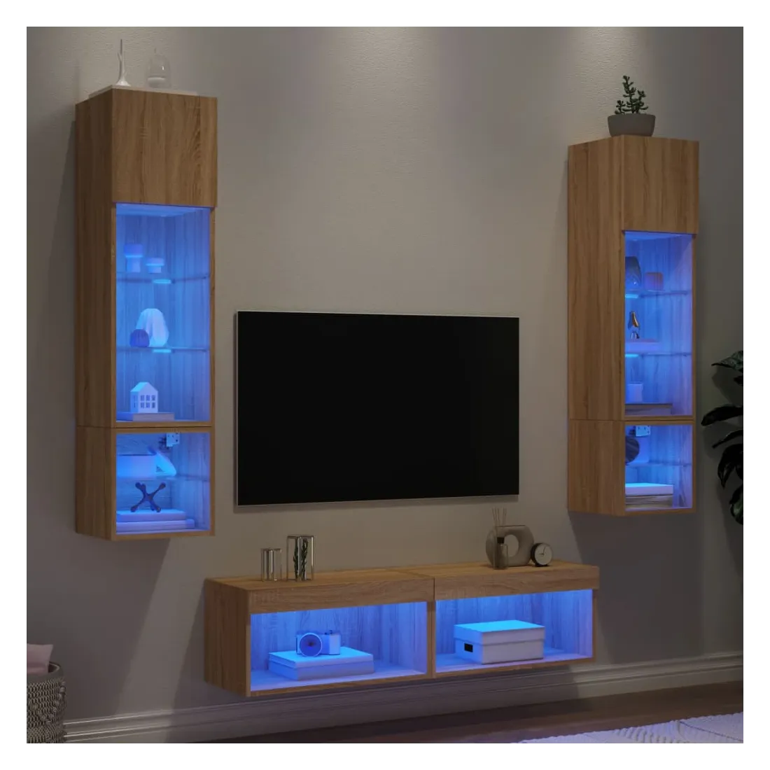 Ces unités murales TV sont la solution parfaite pour votre espace de vie afin de maximiser l'espace et de garder les surfaces au sol sans encombrement. Matériau robuste : le bois d'ingénierie est d'une qualité exceptionnelle avec une surface lisse et présente également résistance, stabilité et résistance à l'humidité.Lumières LED RVB : la unité TV est équipée de lumières LED RVB vibrantes. Avec divers menus personnalisables, vous pouvez changer sans effort la couleur des lumières et même les régler automatiquement. Ces lumières LED renforcent non seulement l'aspect contemporain du meuble TV flottant, mais aussi son attrait pour la mode.Design mural : le meuble de télévision peut être fixé au mur pour ajouter un espace de stockage supplémentaire. De cette façon, vous pouvez maximiser votre espace au sol et garder la zone propre.Grand espace de rangement : le meuble TV flottant est doté de différentes options de rangement, offrant ainsi un grand espace pour ranger vos objets quotidiens tels que les livres, les DVD, les accessoires multimédias et d'autres articles bien organisés et à portée de main.Design polyvalent : vous pouvez l'utiliser comme meuble TV ou le monter sur le mur du lieu de travail pour un rangement pratique des outils ou d'autres articles divers. En outre, il transforme un mur vide en élément de design. Bon à savoir :Les vis et les chevilles pour l'intérieur du mur ne sont pas incluses. Nous vous conseillons de trouver et d'utiliser des vis et des chevilles adaptées spécifiquement à vos murs. Si vous n'êtes pas sûr, vous pouvez consulter un professionnel. Veuillez lire et suivre chaque étape des instructions.Ce produit est doté d'un connecteur USB qui nécessite une source d'alimentation USB de 5V certifiée (non incluse).