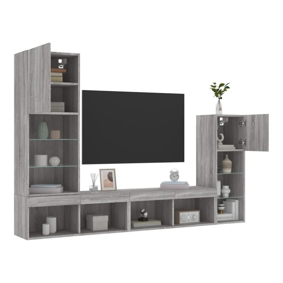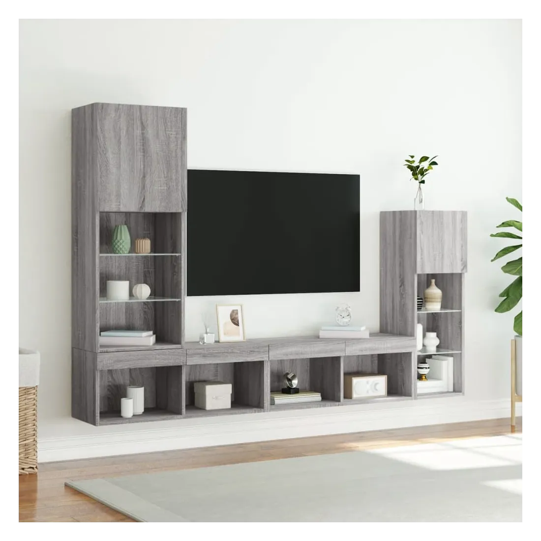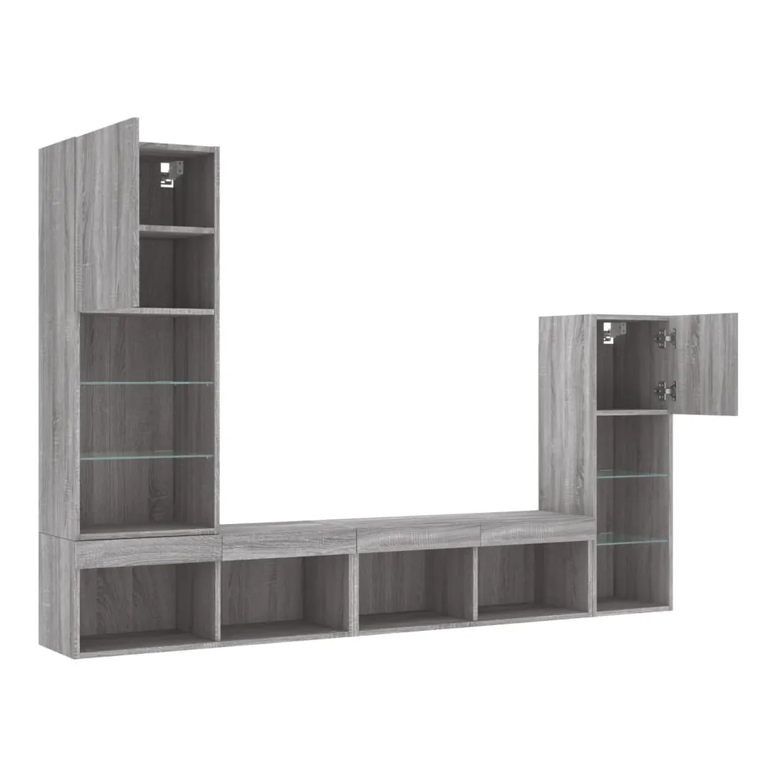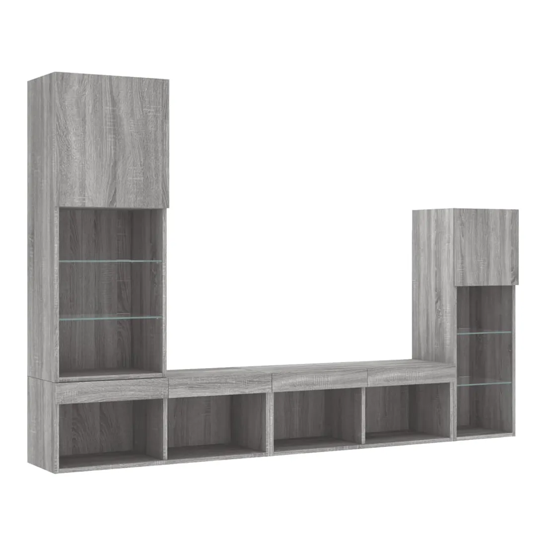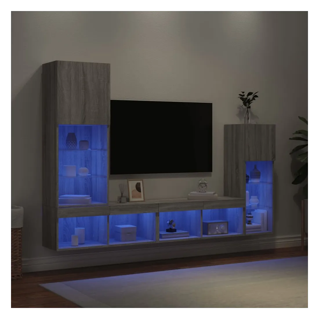 Unités murales TV avec LED 4 pcs gris sonoma bois d'ingénierie