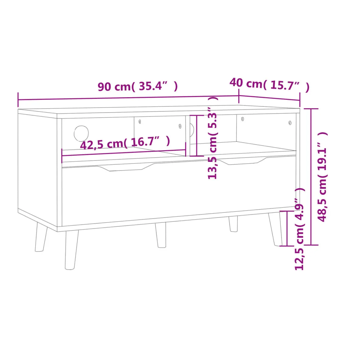 - Dimensions : 90 x 40 x 48,5 cm (L x l x H)