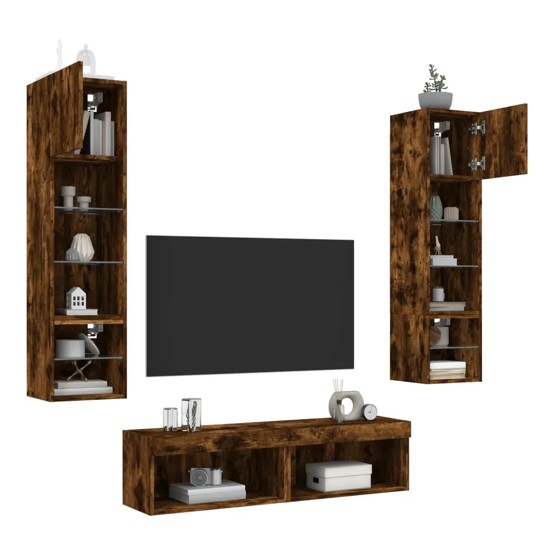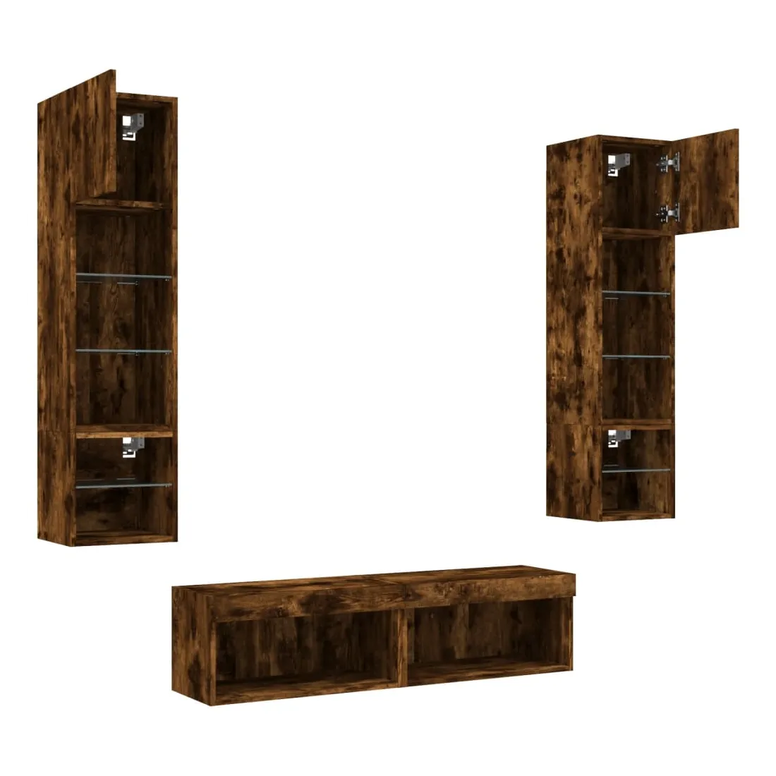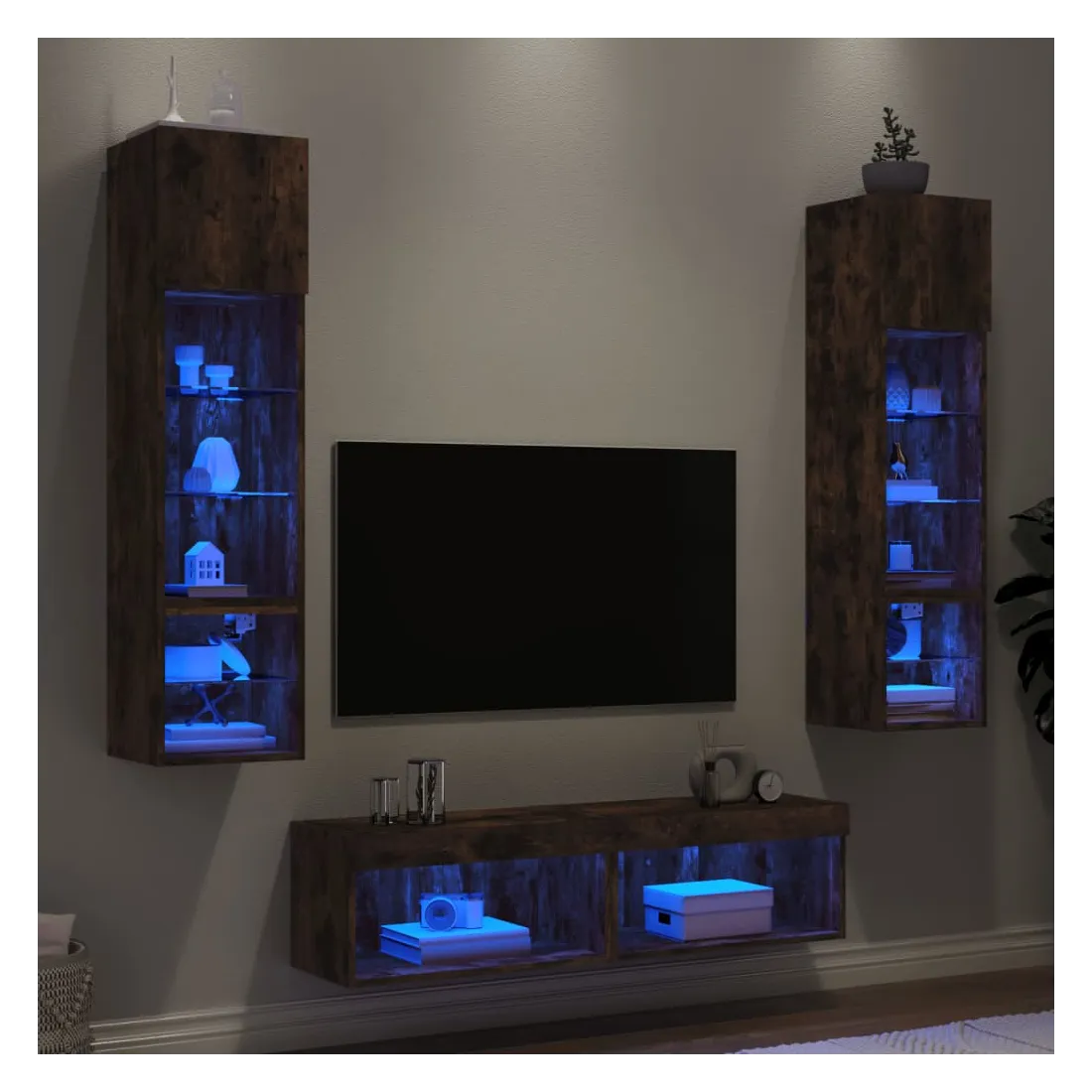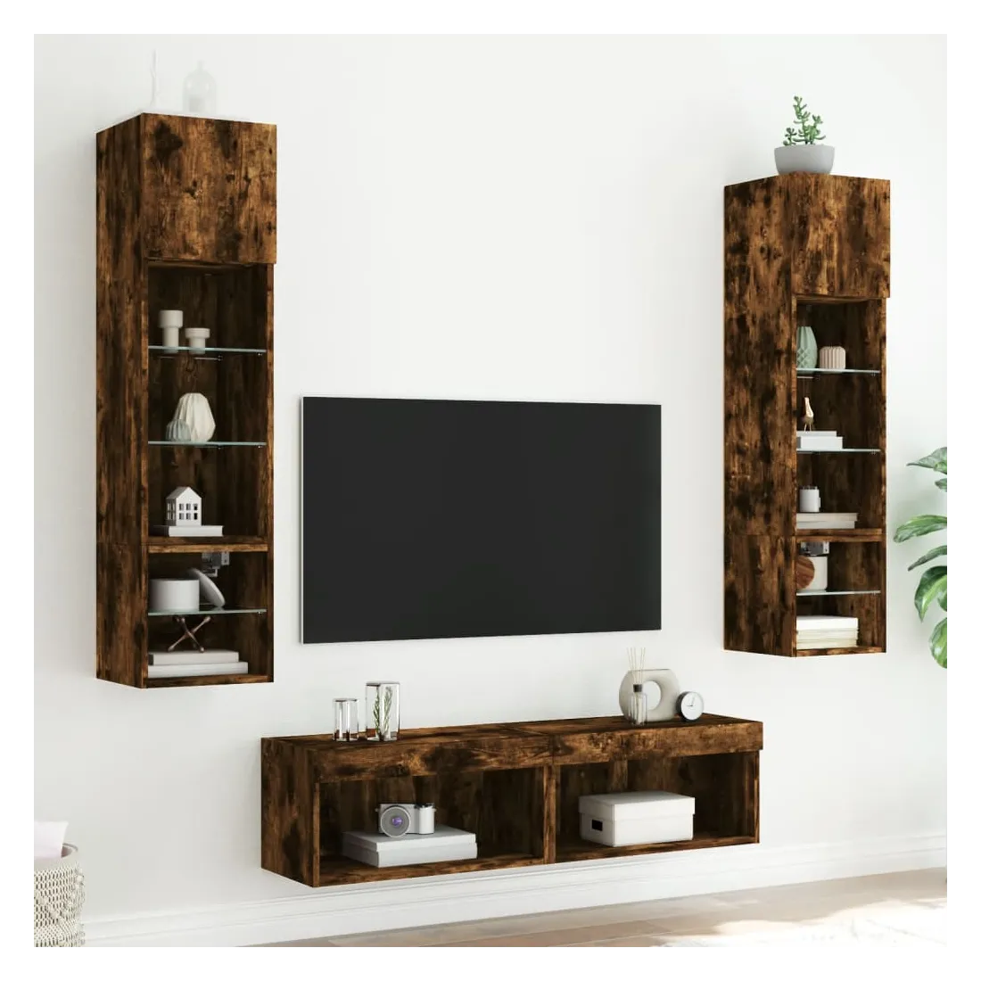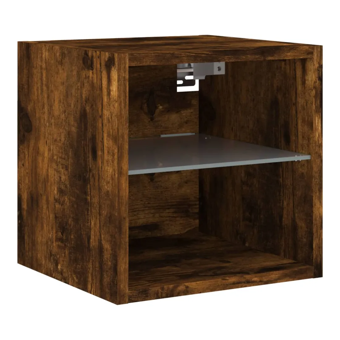 Ces unités murales TV sont la solution parfaite pour votre espace de vie afin de maximiser l'espace et de garder les surfaces au sol sans encombrement. Matériau robuste : le bois d'ingénierie est d'une qualité exceptionnelle avec une surface lisse et présente également résistance, stabilité et résistance à l'humidité.Lumières LED RVB : la unité TV est équipée de lumières LED RVB vibrantes. Avec divers menus personnalisables, vous pouvez changer sans effort la couleur des lumières et même les régler automatiquement. Ces lumières LED renforcent non seulement l'aspect contemporain du meuble TV flottant, mais aussi son attrait pour la mode.Design mural : le meuble de télévision peut être fixé au mur pour ajouter un espace de stockage supplémentaire. De cette façon, vous pouvez maximiser votre espace au sol et garder la zone propre.Grand espace de rangement : le meuble TV flottant est doté de différentes options de rangement, offrant ainsi un grand espace pour ranger vos objets quotidiens tels que les livres, les DVD, les accessoires multimédias et d'autres articles bien organisés et à portée de main.Design polyvalent : vous pouvez l'utiliser comme meuble TV ou le monter sur le mur du lieu de travail pour un rangement pratique des outils ou d'autres articles divers. En outre, il transforme un mur vide en élément de design. Bon à savoir :Les vis et les chevilles pour l'intérieur du mur ne sont pas incluses. Nous vous conseillons de trouver et d'utiliser des vis et des chevilles adaptées spécifiquement à vos murs. Si vous n'êtes pas sûr, vous pouvez consulter un professionnel. Veuillez lire et suivre chaque étape des instructions.Ce produit est doté d'un connecteur USB qui nécessite une source d'alimentation USB de 5V certifiée (non incluse).