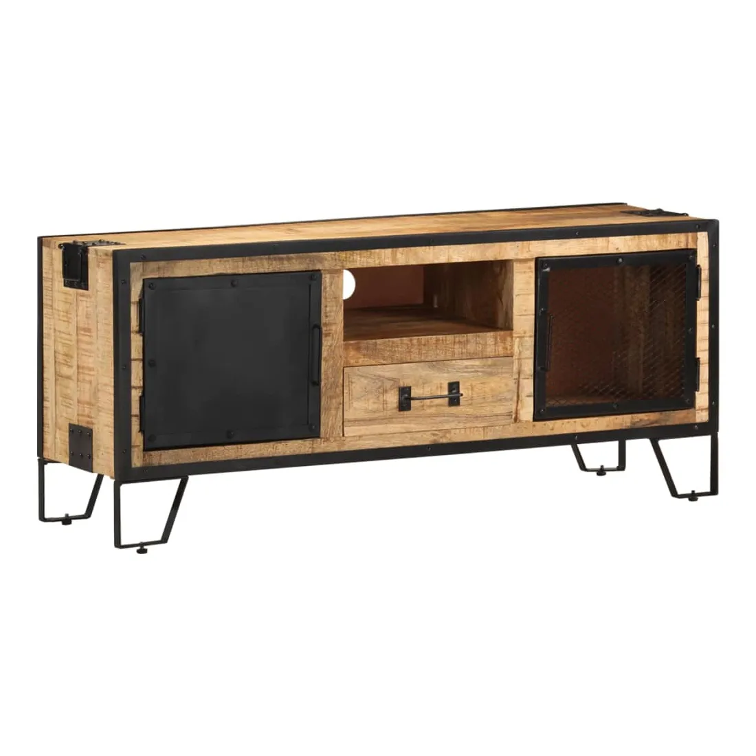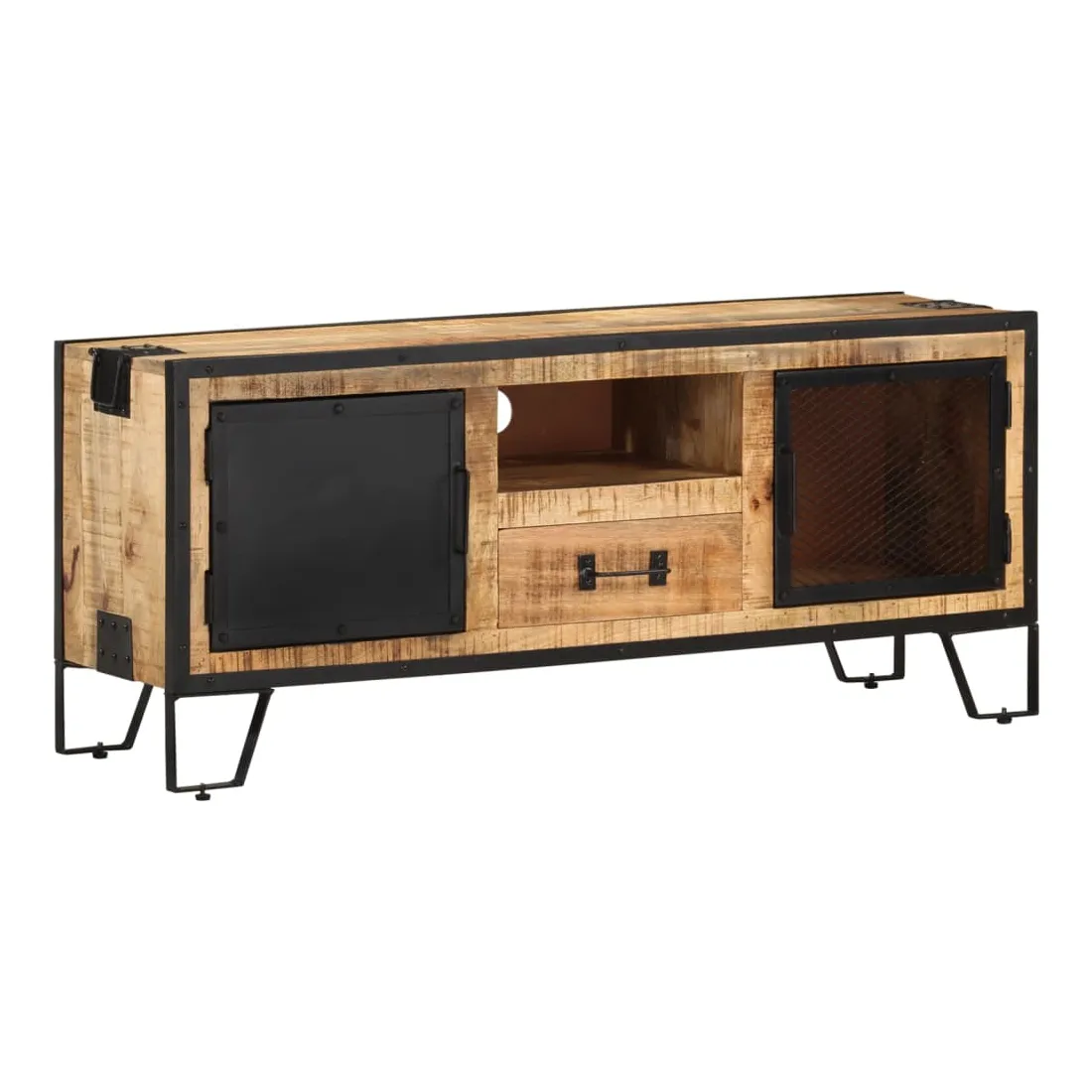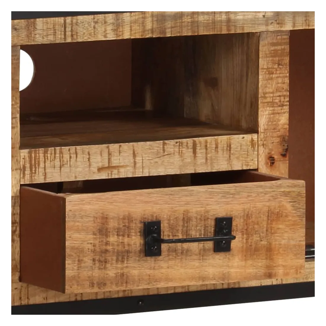 vidaXLLe meuble TV en bois de style industriel est un supplément décoratif ainsi que pratique à votre décoration. L'armoire stéréo est faite de bois de manguier brut, un bois dur tropical avec la force de soutenir le poids. Il résiste également à l'usure du temps. Le savoir-faire et les beaux grains de bois rendent chaque meuble unique et légèrement différent l'un de l'autre. De plus, ce meuble TV dispose d'un grand espace de rangement pour garder vos objets essentiels organisés et à portée de main. Remarque importante : les couleurs et les grains peuvent varier d'une pièce à l'autre, rendant chaque pièce unique. La livraison est aléatoire, ce qui garantit l'exclusivité et l'individualité de votre produit.