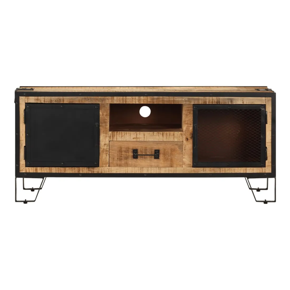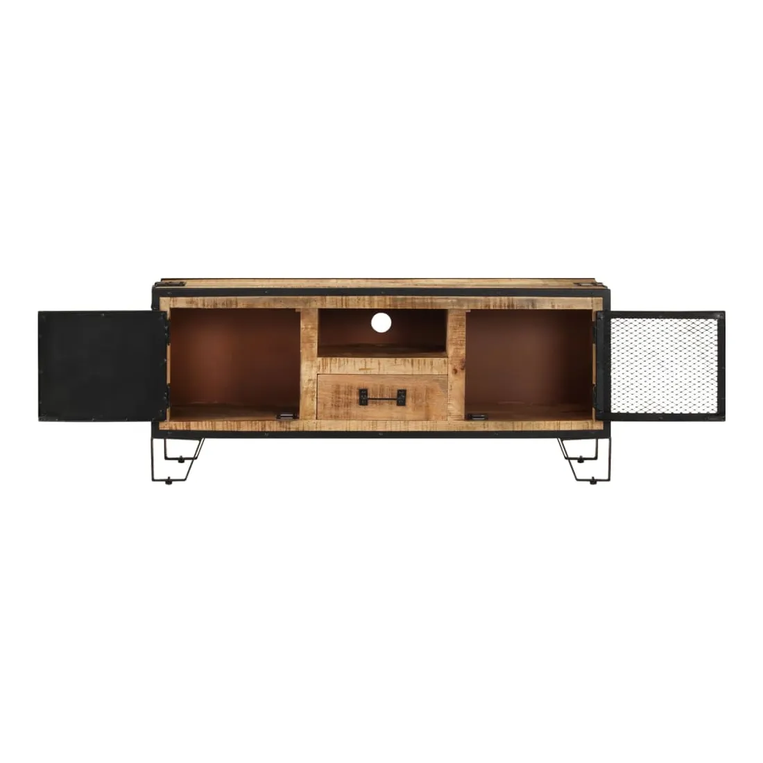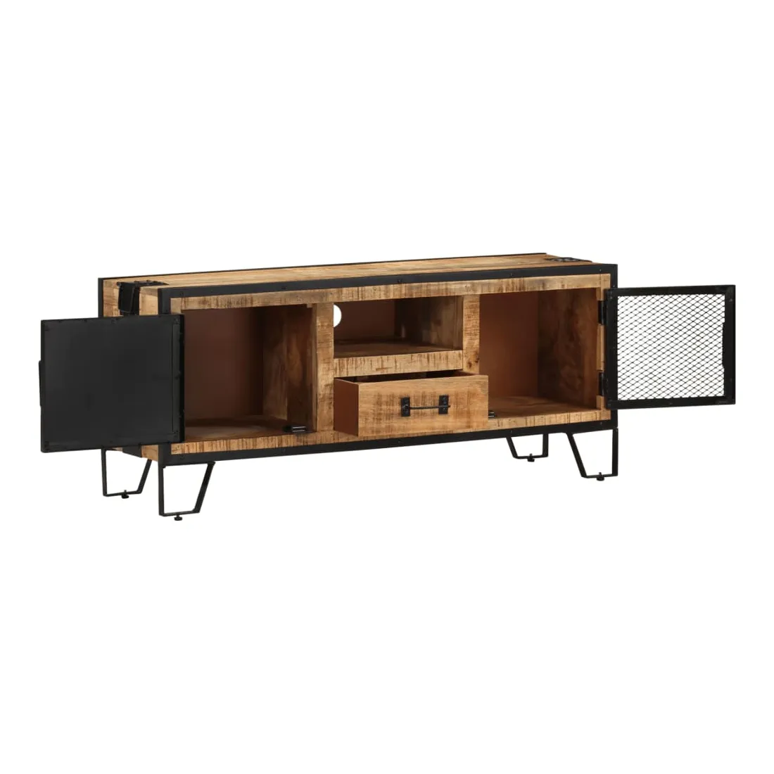 vidaXLLe meuble TV en bois de style industriel est un supplément décoratif ainsi que pratique à votre décoration. L'armoire stéréo est faite de bois de manguier brut, un bois dur tropical avec la force de soutenir le poids. Il résiste également à l'usure du temps. Le savoir-faire et les beaux grains de bois rendent chaque meuble unique et légèrement différent l'un de l'autre. De plus, ce meuble TV dispose d'un grand espace de rangement pour garder vos objets essentiels organisés et à portée de main. Remarque importante : les couleurs et les grains peuvent varier d'une pièce à l'autre, rendant chaque pièce unique. La livraison est aléatoire, ce qui garantit l'exclusivité et l'individualité de votre produit.