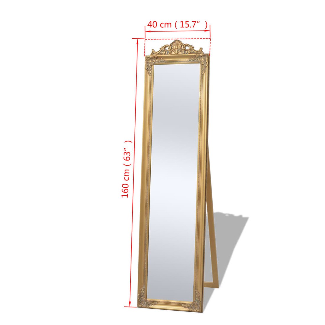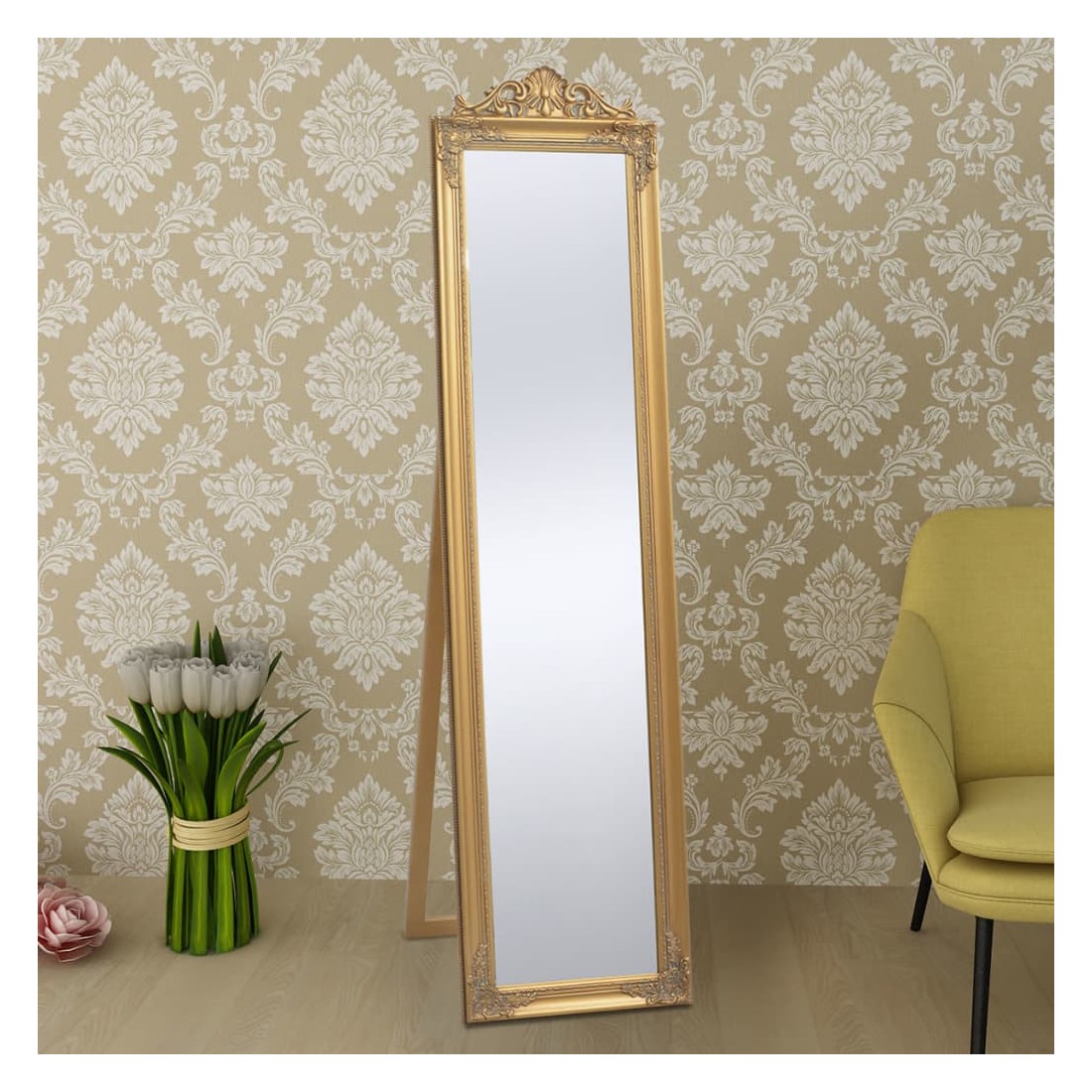 Ce miroir magnifique sur pied, avec son cadre ornementé, créera une atmosphère baroque dans votre couloir, chambre, dressing, placard, etc. Ce miroir au style ancien est doté d'un cadre en bois robuste qui a été habilement travaillé avec des motifs baroques. Ce miroir au style baroque apportera instantanément une touche d'élégance et de romantisme à votre intérieur.
