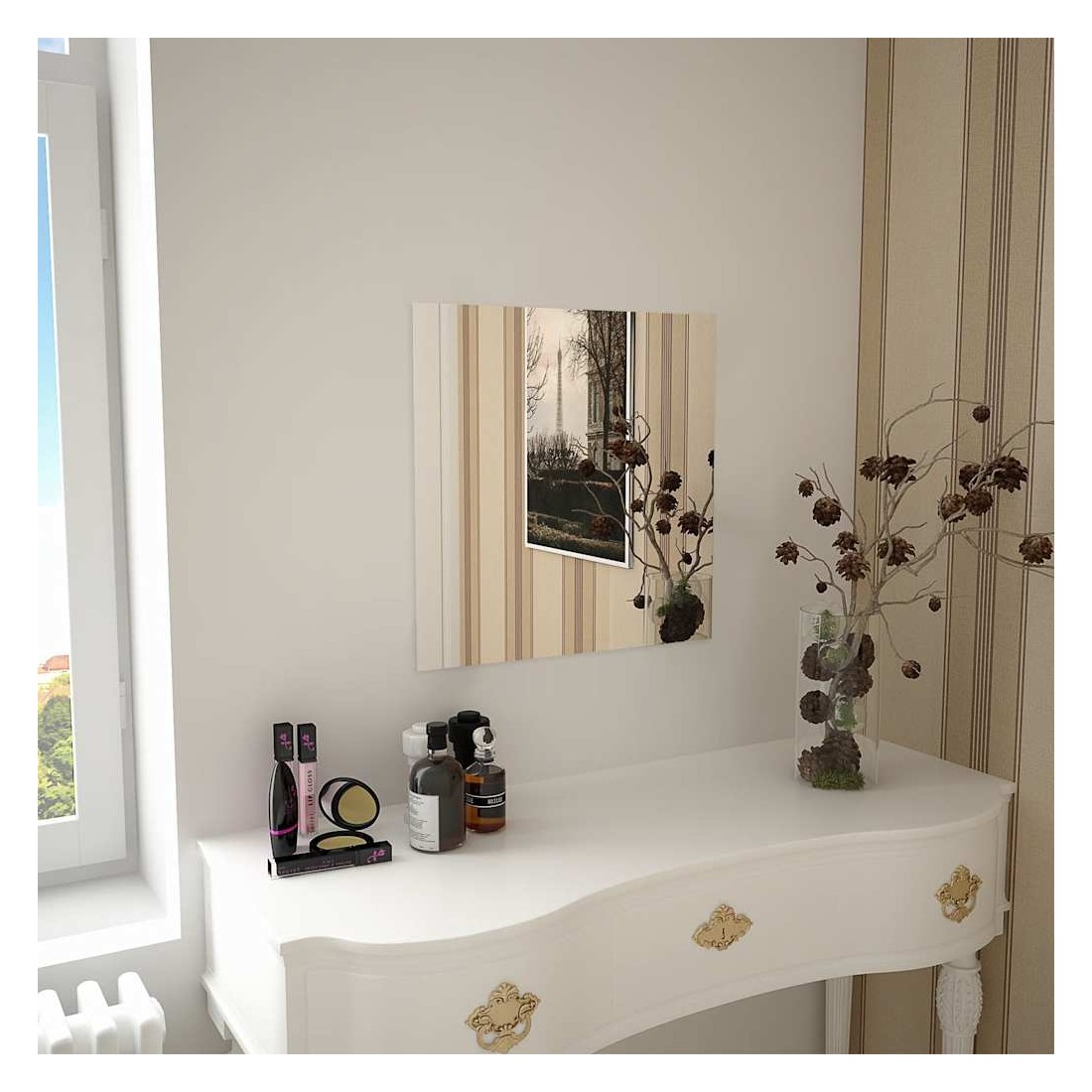Ajoutez une touche esthétique minimaliste à votre chambre à coucher, salon ou dressing avec notre miroir mural pratique ! Décorée de ce miroir, votre pièce semblera plus grande. Le bord du miroir a été poli pour lui donner un aspect épuré. Vous pouvez également acheter plusieurs miroirs et les disposer de façon à créer un motif décoratif. Grâce aux accessoires inclus, le miroir peut être monté facilement.
