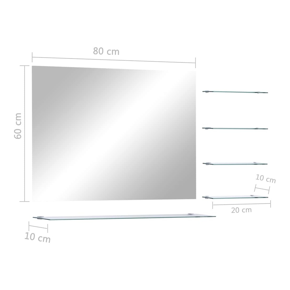 Miroir mural avec 5 étagères Argenté 80 x 60 cm