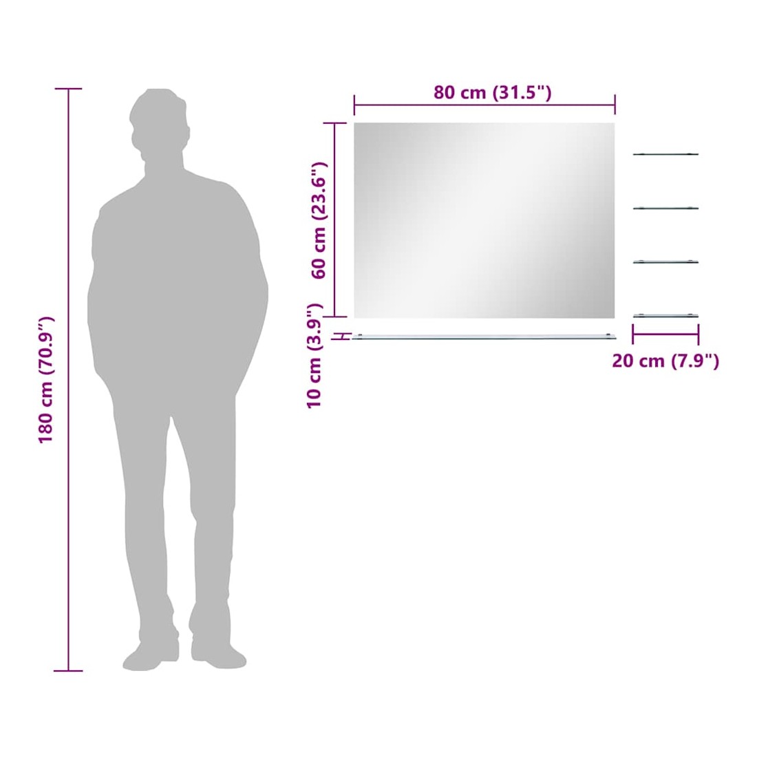 • Dimensions de l'étagère mini : 20 x 10 cm (l x P)