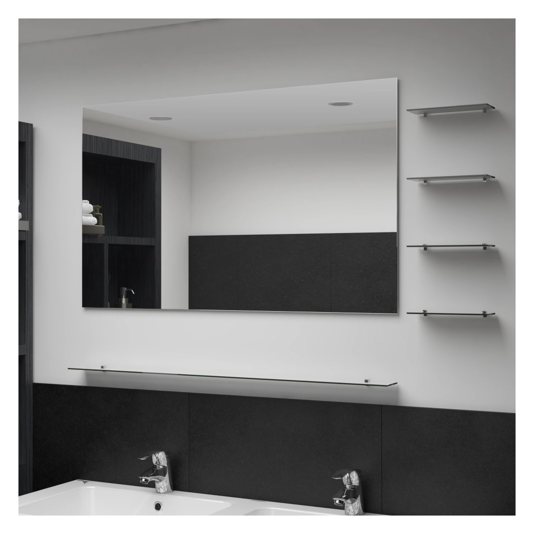 Notre miroir mural avec étagères est orné d'un design élégant. Il sera un supplément pratique et décoratif à votre salle de bain, salon ou chambre à coucher. Fabriqué en verre trempé de qualité, ce meuble de salle de bain est durable et facile à nettoyer. Le miroir rectangulaire encadré au design minimal et contemporain mettra en valeur n'importe quelle pièce, tandis que les quatre petites étagères et la grande étagère en font une pièce pratique pour un rangement supplémentaire. Vous pouvez ranger et exposer les essentiels de la décoration ou du dressing de manière propre et ordonnée. Ce miroir est facile à assembler.
