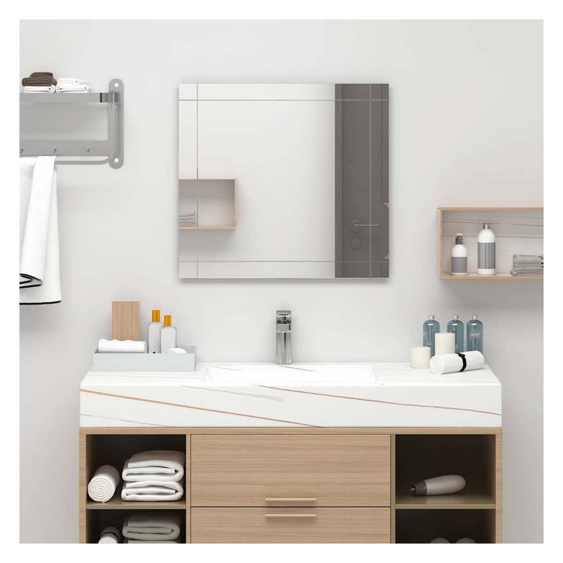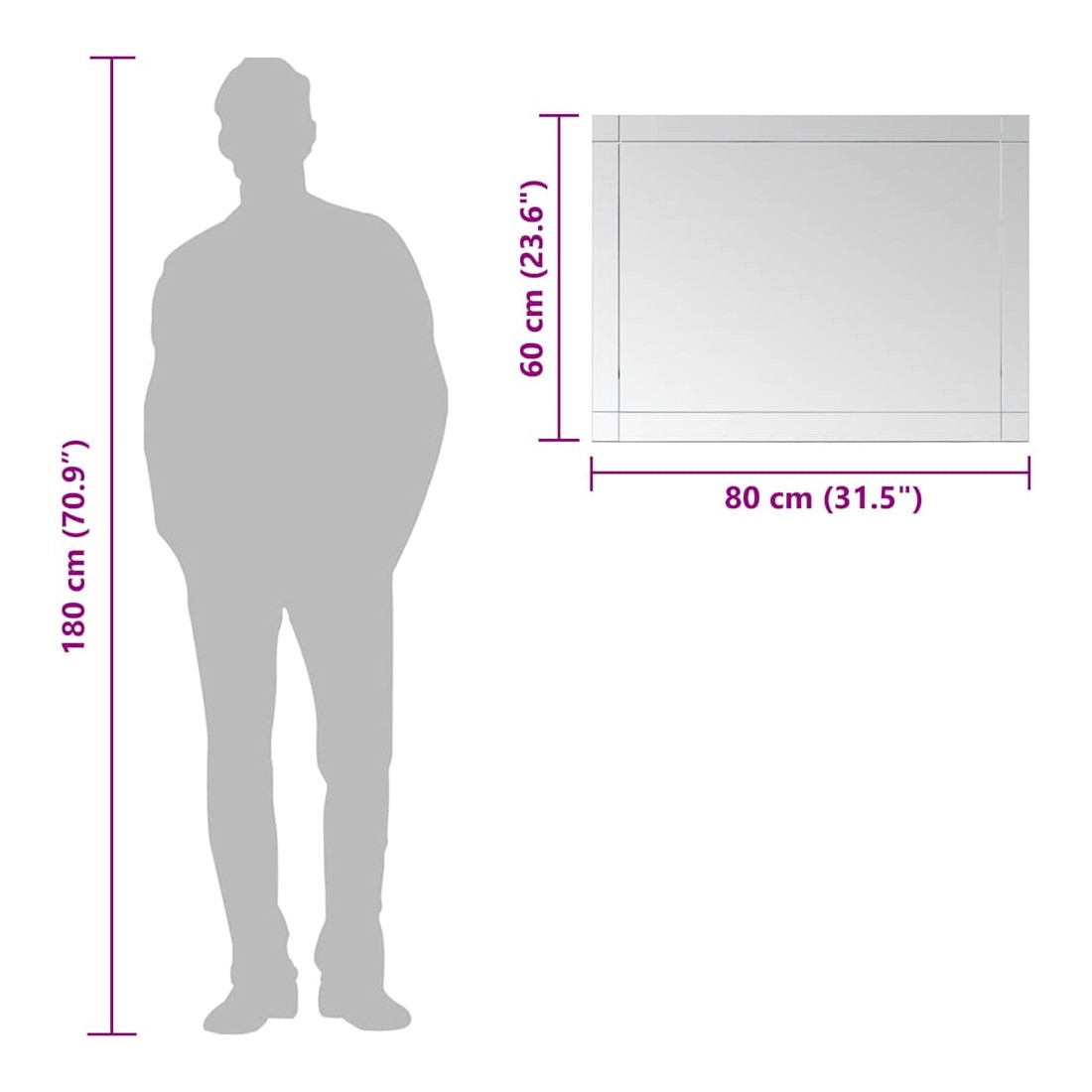 Ajoutez un look moderne à votre décoration intérieure avec notre miroir mural ! Le miroir en verre sert de miroir cosmétique, de miroir de décoration et même de miroir de salle de bain. Grâce à la finition rugueuse, le bord du miroir est sûr et dispose d’un look épuré. Il peut être facilement monté sur le mur.