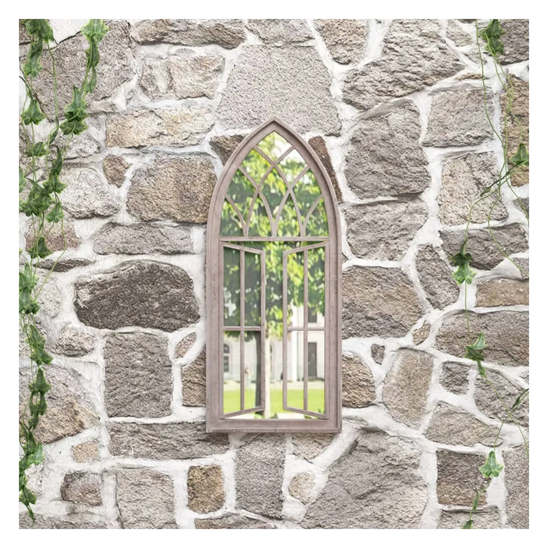 Le miroir de jardin sera un supplément original et attrayant à l'espace extérieur. Le miroir est fait de fer durable avec un effet rouille, ce qui donnera un aspect antique. Il peut être utilisé pour mettre en valeur un élément du jardin en le reflétant dans le miroir, ou l'utiliser pour dévier la lumière dans un coin sombre. Un miroir dans le jardin est une façon créative d'améliorer l'apparence et de rendre le jardin plus grand. Grâce au trou pré-percé sur son dessus, le miroir décoratif peut être facilement monté sur le mur.
