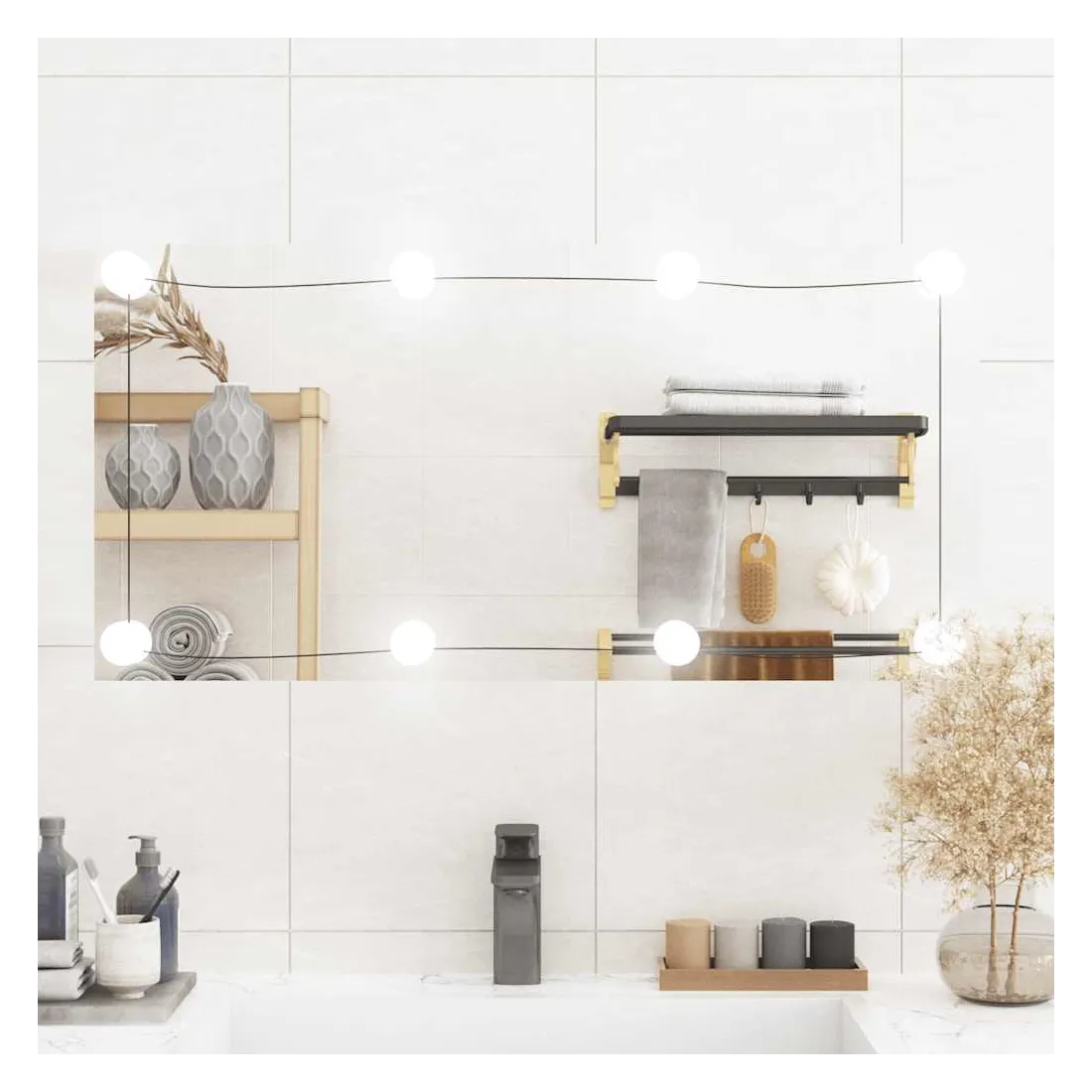 Le miroir mural élégant avec lumières LED ajoute une touche de style contemporain et fournit une lumière vive à votre pièce ! Design mural : le miroir est équipé de pinces pour le montage mural, ce qui le rend particulièrement adapté aux pièces avec un espace limité.Image claire : le miroir de maquillage offre une image claire. Ainsi, vous pouvez profiter d'un reflet magnifique et naturel lorsque vous vous tenez devant le miroir de courtoisie.Différents modes de couleur : la lumière du miroir de courtoisie a différents modes de couleur pour répondre à vos besoins en fonction de la situation. Une température de couleur blanche chaude est confortable et accueillante, tandis que le blanc froid contribue à la vigilance et à la sécurité.Interface USB pratique : les lumières LED sont équipées d'une interface USB, ce qui les rend très pratiques à utiliser.Usages multiples : vous pouvez utiliser le miroir de décoration pour décorer votre chambre à coucher, armoire, couloir, salon, salle de bain et tout autre endroit où vous avez besoin d'ajouter de la brillance. Bon à savoir :Les vis et les chevilles pour l'intérieur du mur ne sont pas incluses. Nous vous conseillons de trouver et d'utiliser des vis et des chevilles adaptées spécifiquement à vos murs. Si vous n'êtes pas sûr, vous pouvez consulter un professionnel. Veuillez lire et suivre chaque étape des instructions.