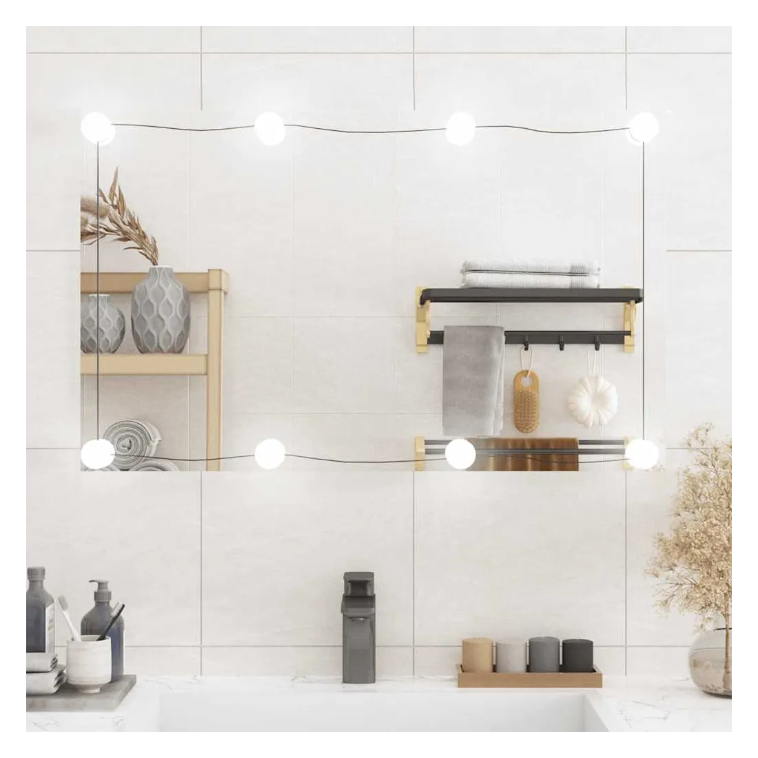 Le miroir mural élégant avec lumières LED ajoute une touche de style contemporain et fournit une lumière vive à votre pièce ! Design mural : le miroir est équipé de pinces pour le montage mural, ce qui le rend particulièrement adapté aux pièces avec un espace limité.Image claire : le miroir de maquillage offre une image claire. Ainsi, vous pouvez profiter d'un reflet magnifique et naturel lorsque vous vous tenez devant le miroir de courtoisie.Différents modes de couleur : la lumière du miroir de courtoisie a différents modes de couleur pour répondre à vos besoins en fonction de la situation. Une température de couleur blanche chaude est confortable et accueillante, tandis que le blanc froid contribue à la vigilance et à la sécurité.Interface USB pratique : les lumières LED sont équipées d'une interface USB, ce qui les rend très pratiques à utiliser.Usages multiples : vous pouvez utiliser le miroir de décoration pour décorer votre chambre à coucher, armoire, couloir, salon, salle de bain et tout autre endroit où vous avez besoin d'ajouter de la brillance. Bon à savoir :Les vis et les chevilles pour l'intérieur du mur ne sont pas incluses. Nous vous conseillons de trouver et d'utiliser des vis et des chevilles adaptées spécifiquement à vos murs. Si vous n'êtes pas sûr, vous pouvez consulter un professionnel. Veuillez lire et suivre chaque étape des instructions.