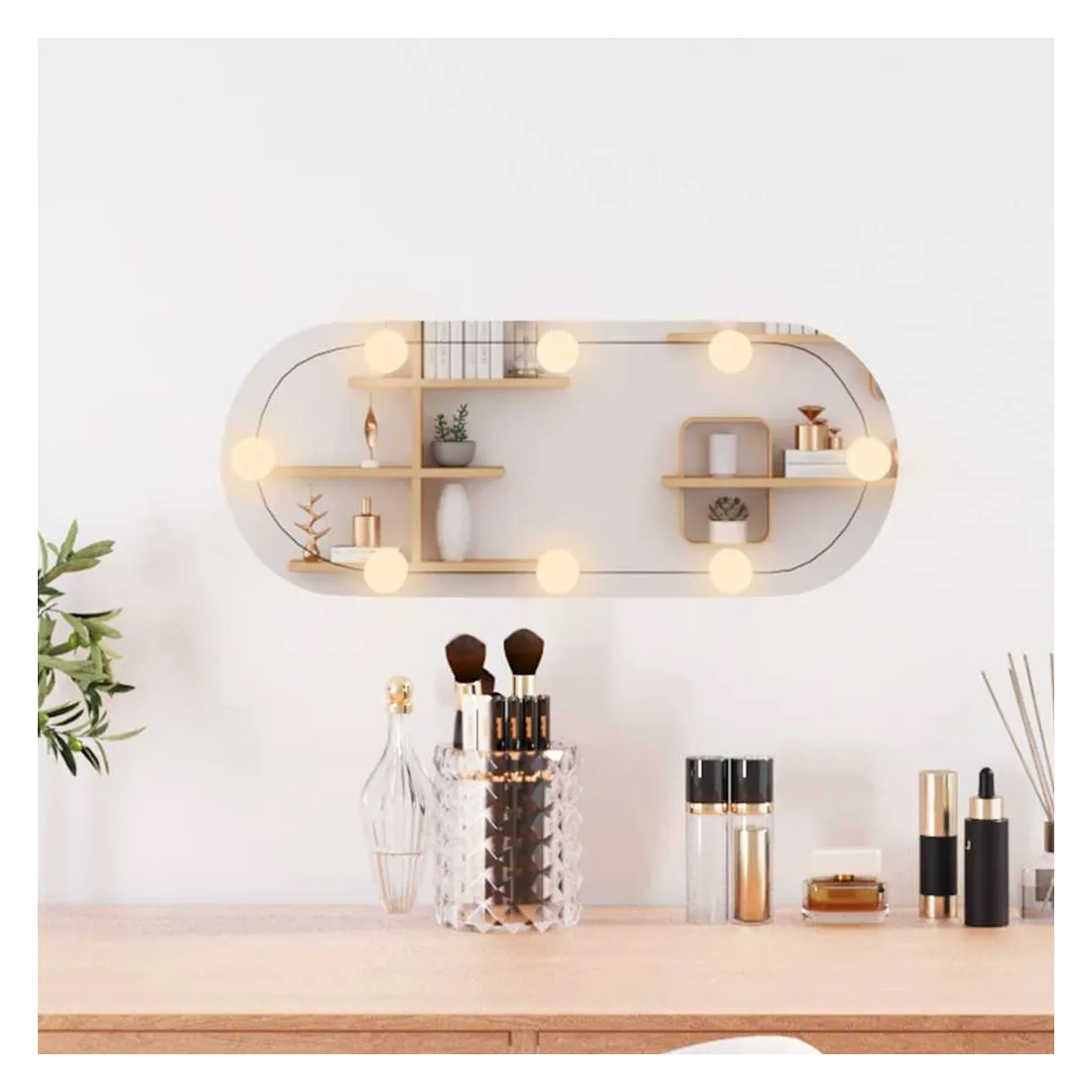 Le miroir mural élégant avec lumières LED ajoute une touche de style contemporain et fournit une lumière vive à votre pièce ! Design mural : le miroir est équipé de pinces pour le montage mural, ce qui le rend particulièrement adapté aux pièces avec un espace limité.Image claire : le miroir de maquillage offre une image claire. Ainsi, vous pouvez profiter d'un reflet magnifique et naturel lorsque vous vous tenez devant le miroir de courtoisie.Différents modes de couleur : la lumière du miroir de courtoisie a différents modes de couleur pour répondre à vos besoins en fonction de la situation. Une température de couleur blanche chaude est confortable et accueillante, tandis que le blanc froid contribue à la vigilance et à la sécurité.Interface USB pratique : les lumières LED sont équipées d'une interface USB, ce qui les rend très pratiques à utiliser.Usages multiples : vous pouvez utiliser le miroir de décoration pour décorer votre chambre à coucher, armoire, couloir, salon, salle de bain et tout autre endroit où vous avez besoin d'ajouter de la brillance. Bon à savoir :Les vis et les chevilles pour l'intérieur du mur ne sont pas incluses. Nous vous conseillons de trouver et d'utiliser des vis et des chevilles adaptées spécifiquement à vos murs. Si vous n'êtes pas sûr, vous pouvez consulter un professionnel. Veuillez lire et suivre chaque étape des instructions.