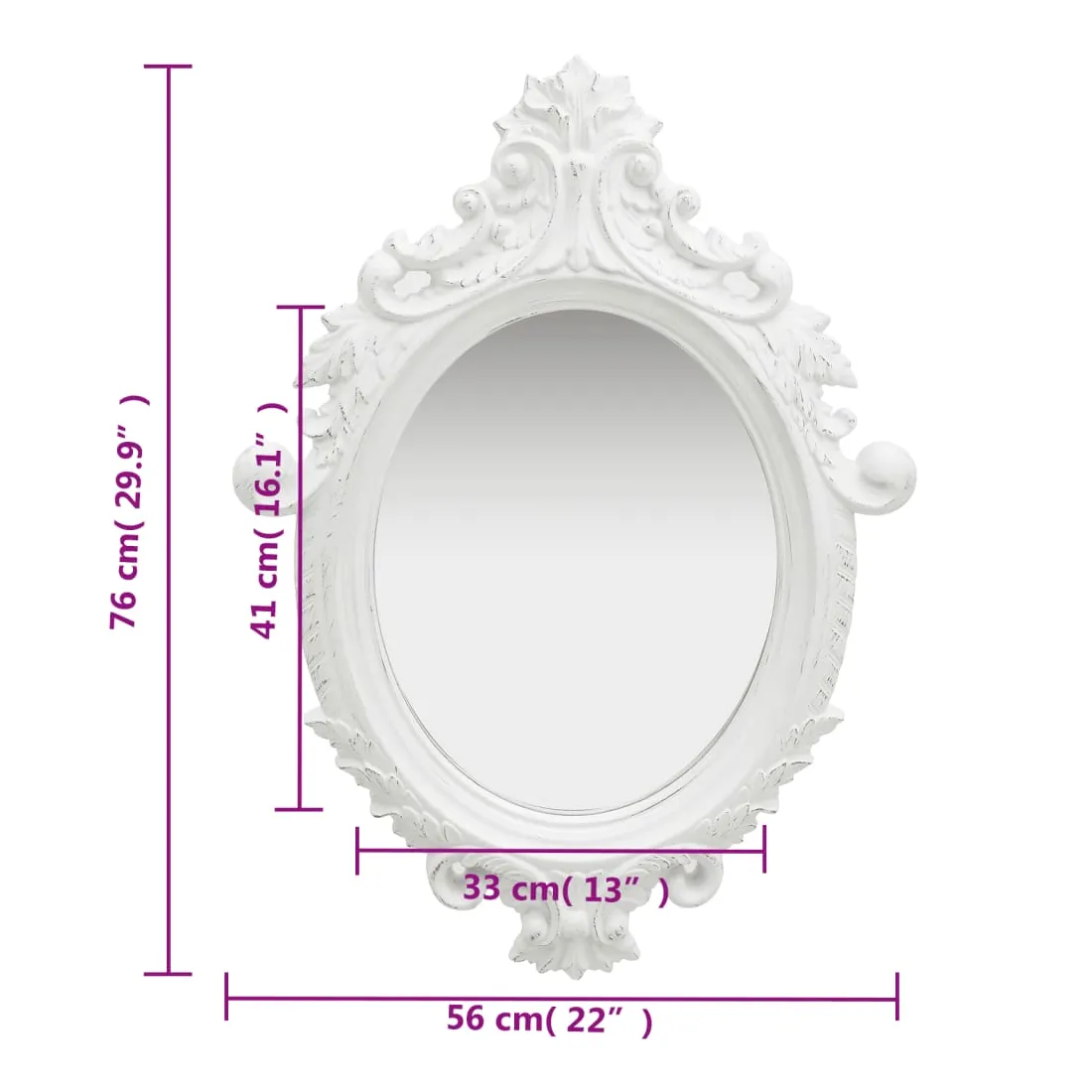 Ce miroir mural magnifique avec son cadre ornementé crée une atmosphère baroque dans votre dressing. Ce miroir à l'aspect ancien présente un cadre en PU robuste qui est habilement fabriqué pour arborer des motifs de style château. De plus, le bord plat donne au miroir un aspect unique. Le miroir peut être prêt à être fixé au mur grâce au crochet déjà installé sur le panneau arrière.