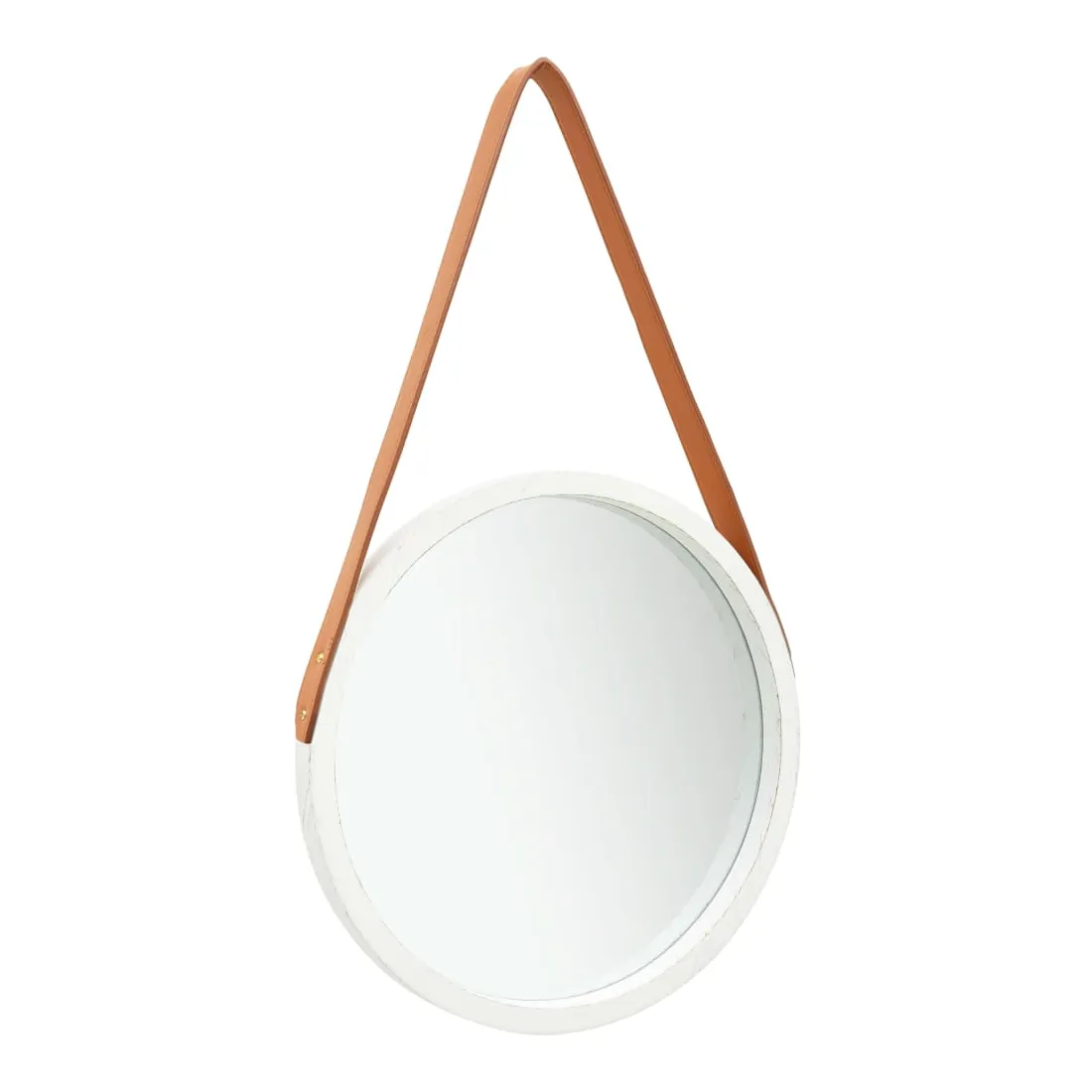 Cette pièce de miroir rétro est conçue pour donner une forte impression visuelle dans une chambre à coucher ou espace de vie. Ce design de miroir suspendu tendance offre une interprétation élégante du décor vintage pour les intérieurs modernes. Le grand miroir rond est encadré de bois naturel de paulownia durable, suspendu à un piquet par une sangle en similicuir lisse et doux au toucher. La sangle permet de régler le miroir à la hauteur voulue, ce qui ajoute une plus grande souplesse à cette décoration.