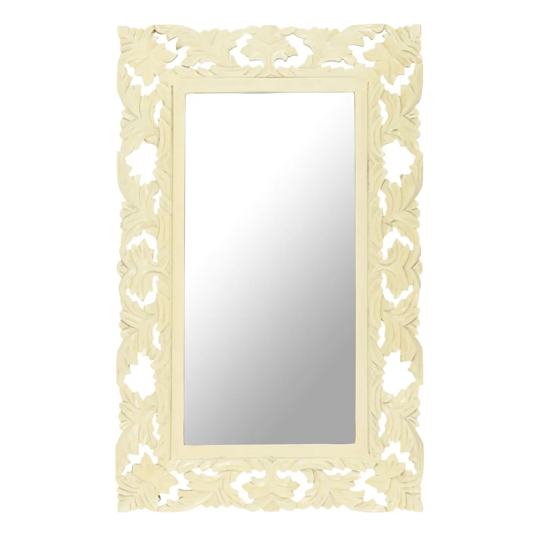 Ce miroir en bois de manguier massif est plus qu'un objet pratique au quotidien, c'est également une jolie décoration pour votre maison. Le bois de manguier massif est un bois dur tropical. Il a la force de soutenir le poids et résiste également à l'usure du temps. De plus, le savoir-faire exquis et les beaux grains de bois rendent chaque pièce de miroir en bois légèrement différente l'une de l'autre. Le motif sculpté à la main ajoute à la beauté du miroir. Remarque importante : les couleurs et les grains de bois peuvent varier d'une pièce à l'autre, ce qui rend chaque pièce unique et légèrement différente l'une de l'autre ; la livraison est aléatoire.