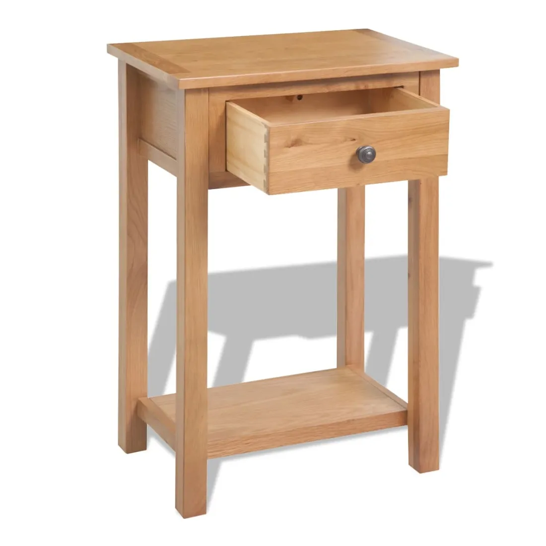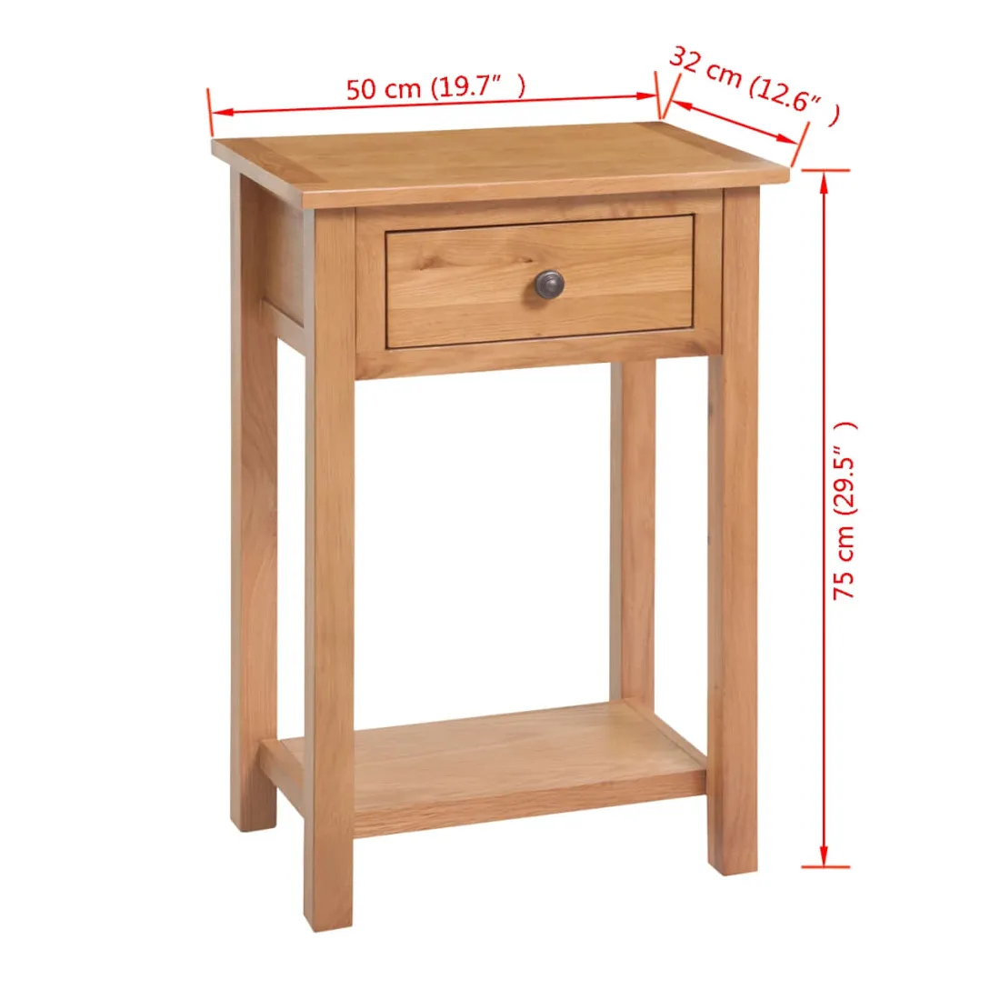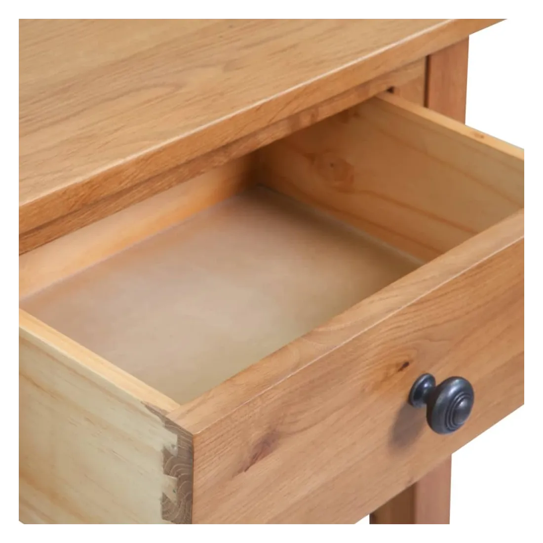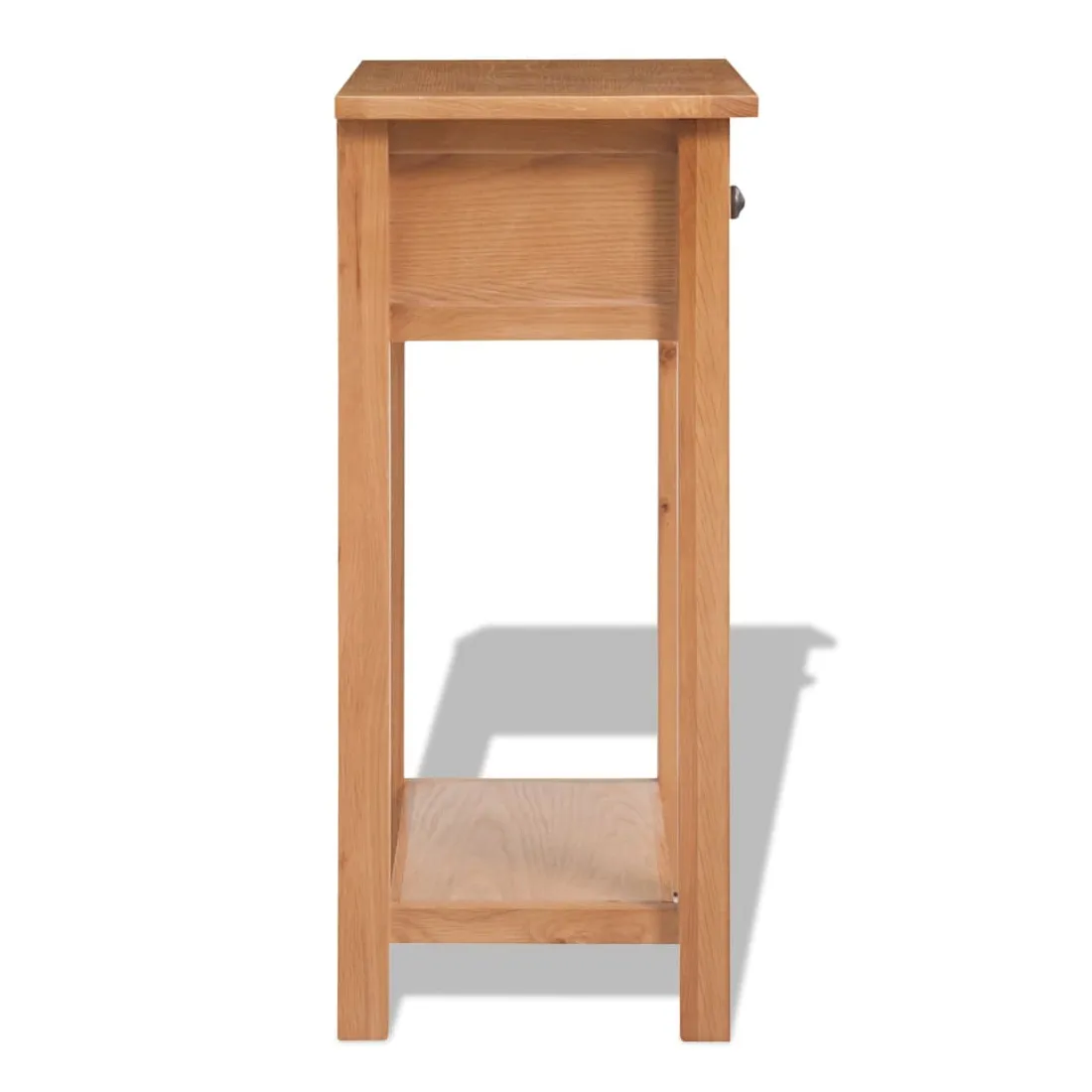 Cette table console est simple mais élégante et elle ajoutera un aspect rustique à votre salon. Habilement conçue en chêne massif, la console est très robuste et durable. Grâce à son design compact, vous êtes sûr de trouver un endroit pour notre table console presque partout. Le dessus de table robuste est idéal pour y exposer des objets décoratifs, des cadres photo ou des plantes en pot. Le tiroir offre un espace supplémentaire pour ranger vos petits objets. Elle peut également être utilisée comme support de téléphone, table de couloir, table d'appoint, etc. L'assemblage est facile.