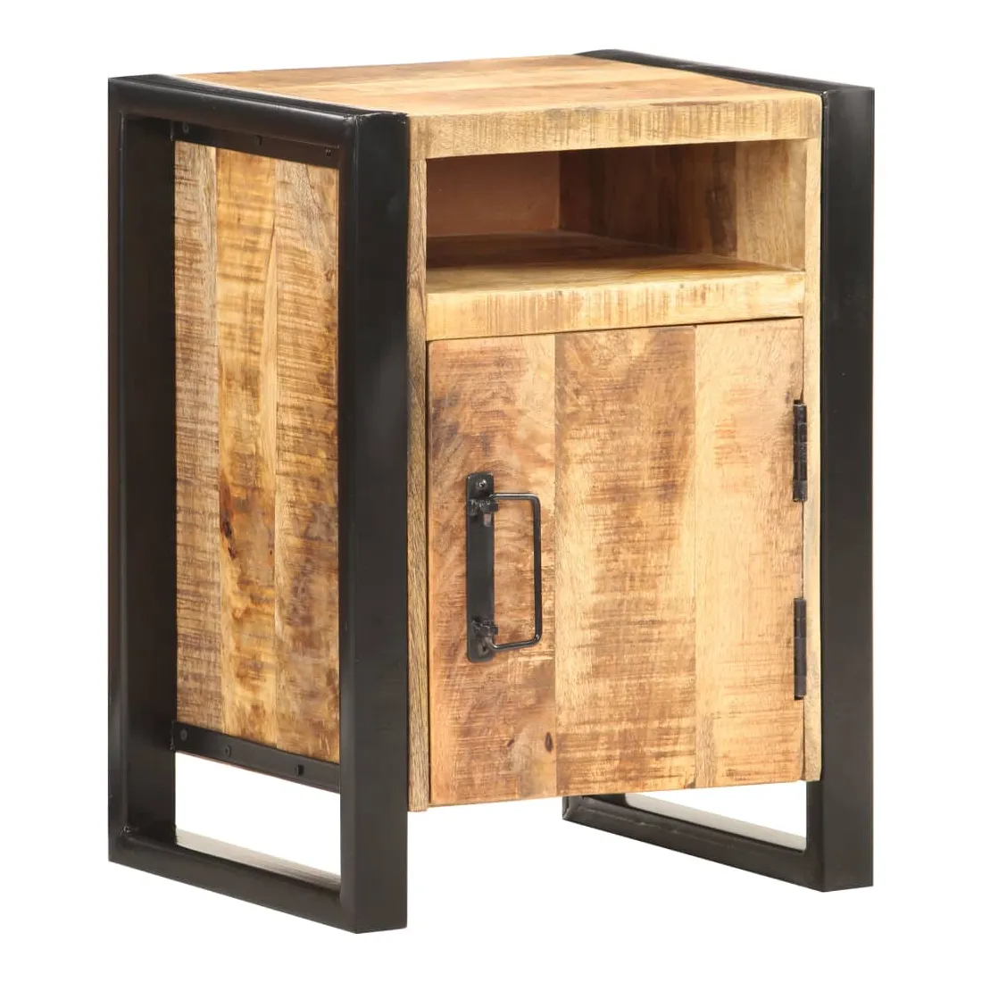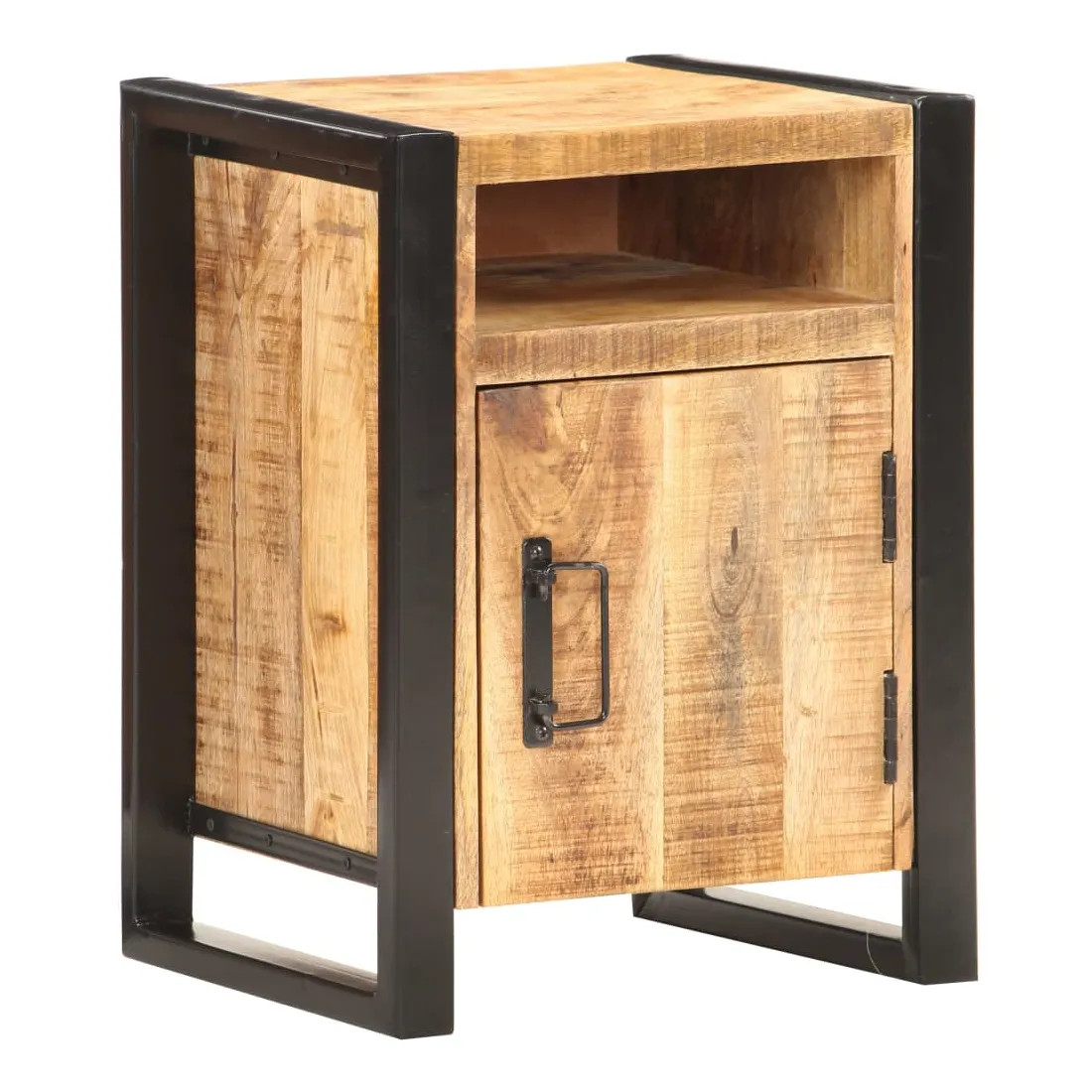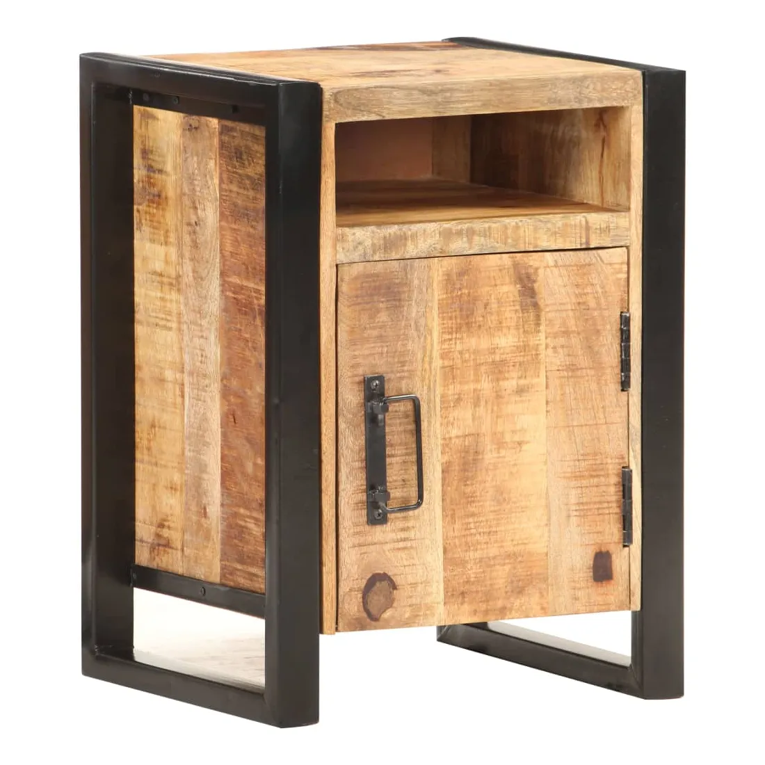 Cette table de chevet de style industriel ajoute une touche de charme rustique à votre intérieur. Elle peut également être utilisée comme table de nuit ou armoire latérale. Cette armoire, faite de bois de manguier massif avec une finition naturelle et d’acier enduit de poudre, est stable et durable. Le bois de manguier est un bois dur qui a des grains denses. La table de nuit dispose d’un dessus robuste pour placer une lampe de chevet, un réveil ou tout ce que vous pourriez avoir besoin. Cette armoire de lit dispose de 2 compartiments et d’une porte, offrant amplement d’espace pour garder les petits articles organisés et à portée de main. Remarque importante : les couleurs varient d'une pièce à l'autre, rendant chaque table unique. La livraison est aléatoire, ce qui garantit l'exclusivité et l'individualité de votre produit.