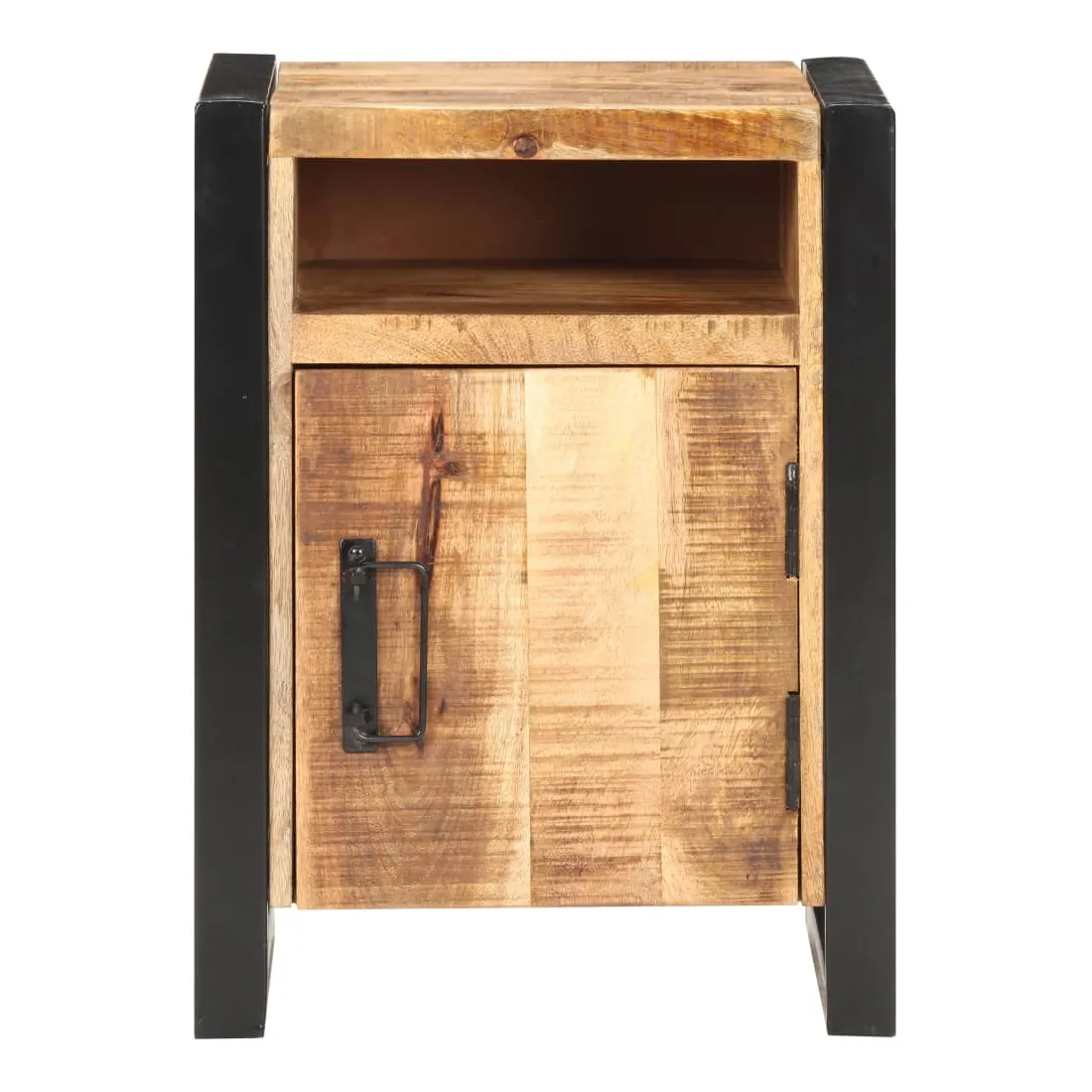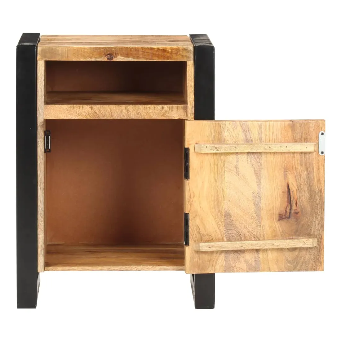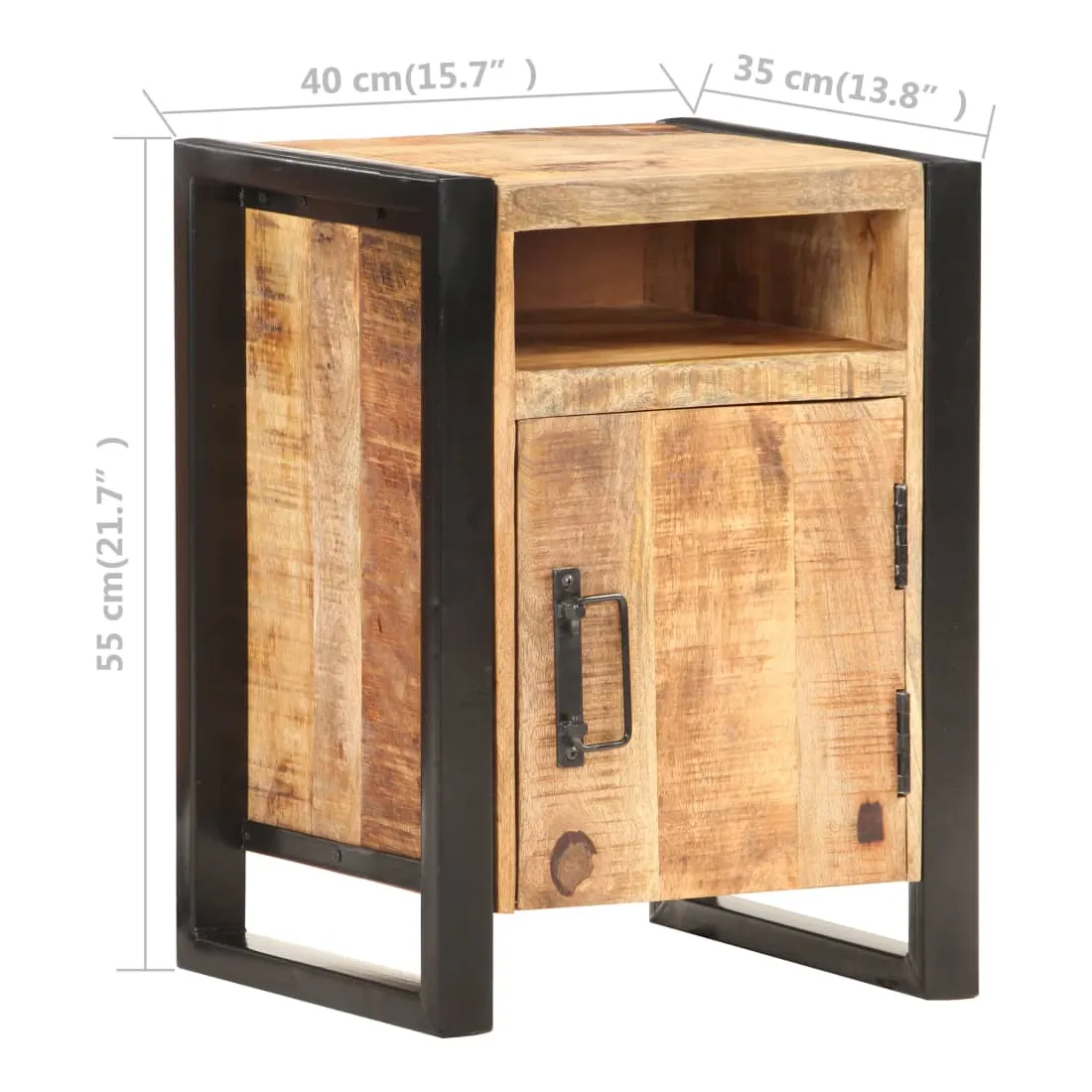 Cette table de chevet de style industriel ajoute une touche de charme rustique à votre intérieur. Elle peut également être utilisée comme table de nuit ou armoire latérale. Cette armoire, faite de bois de manguier massif avec une finition naturelle et d’acier enduit de poudre, est stable et durable. Le bois de manguier est un bois dur qui a des grains denses. La table de nuit dispose d’un dessus robuste pour placer une lampe de chevet, un réveil ou tout ce que vous pourriez avoir besoin. Cette armoire de lit dispose de 2 compartiments et d’une porte, offrant amplement d’espace pour garder les petits articles organisés et à portée de main. Remarque importante : les couleurs varient d'une pièce à l'autre, rendant chaque table unique. La livraison est aléatoire, ce qui garantit l'exclusivité et l'individualité de votre produit.