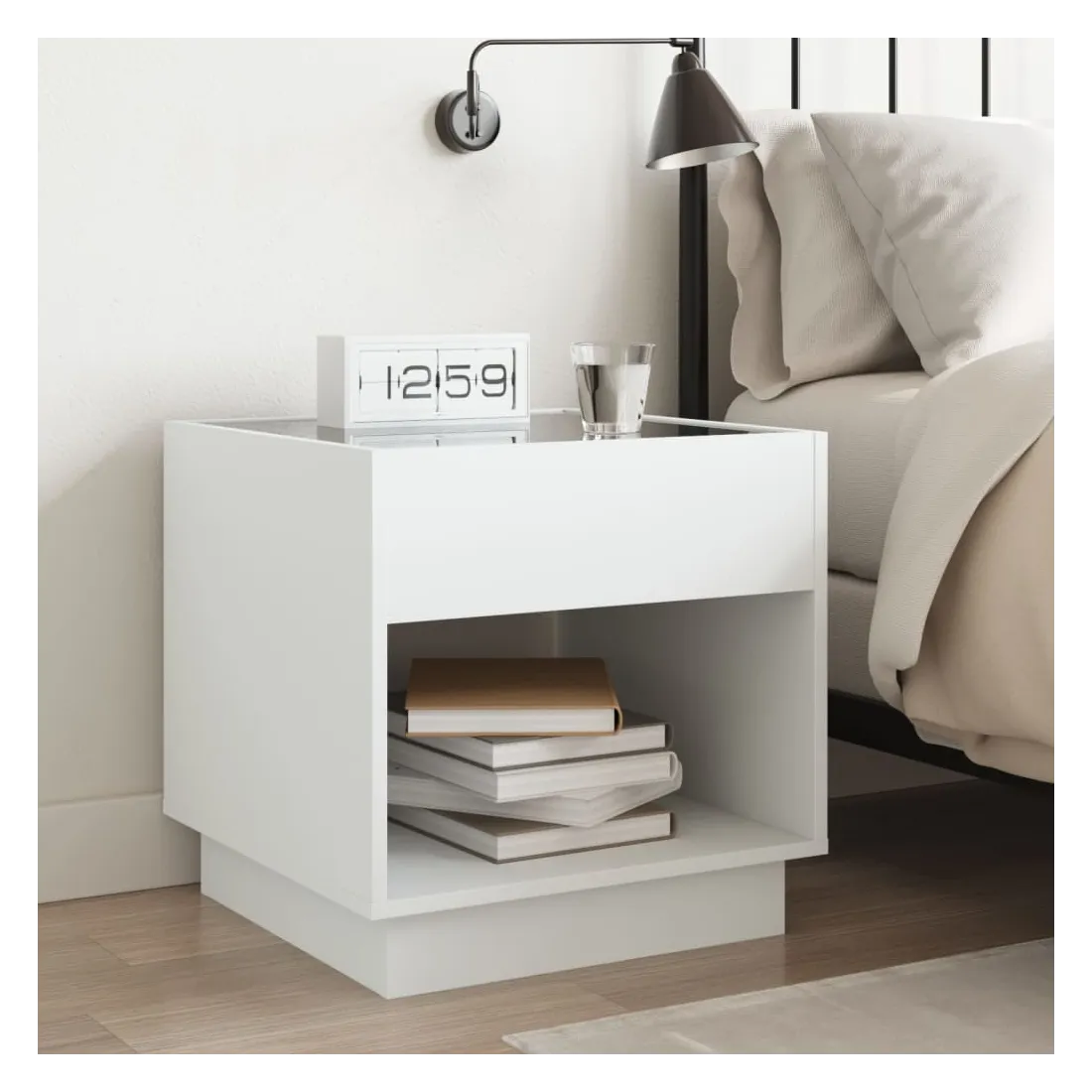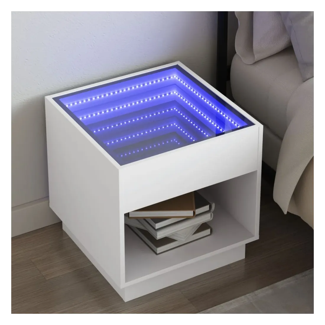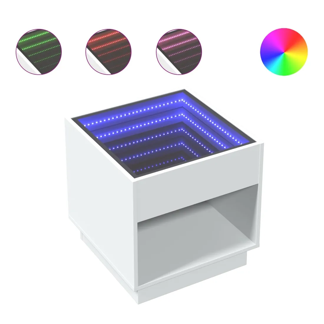 Cette table de chevet avec un miroir à LED infini constitue un ajout intemporel à votre décoration intérieure. Matériau stable et durable : le bois d'ingénierie est un matériau durable et stable dont la surface lisse résiste à l'humidité, à la déformation et au fendillement, ce qui en fait un choix fiable pour une grande variété de projets.Lampes LED RVB pour une ambiance agréable : cette table est dotée de lampes LED qui peuvent être facilement réglées pour créer un spectacle lumineux personnalisé. Vous pouvez personnaliser les modes, les couleurs et la luminosité pour améliorer l'ambiance de votre espace intérieur.Dessus de table stable et robuste : le dessus de table robuste est idéal pour placer vos objets décoratifs ou tout autre objet nécessaire à portée de main. Bon à savoir : Ce produit est doté d'un connecteur USB qui nécessite une source d'alimentation USB de 5V certifiée (non incluse).