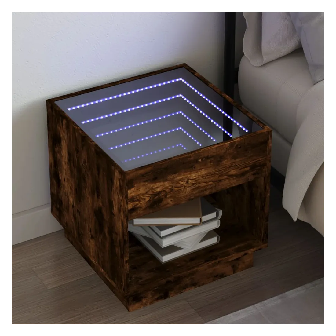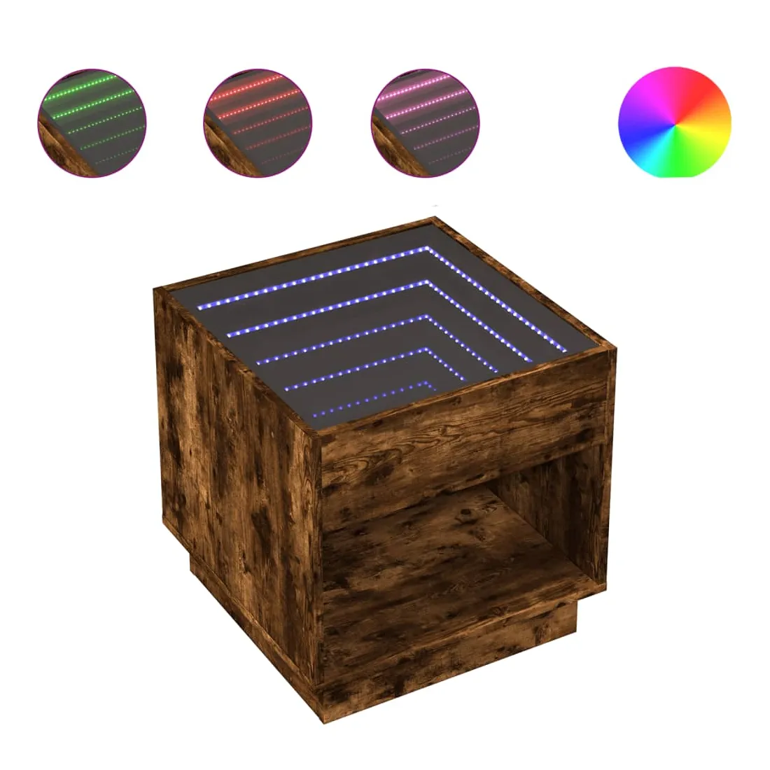 Cette table de chevet avec un miroir à LED infini constitue un ajout intemporel à votre décoration intérieure. Matériau stable et durable : le bois d'ingénierie est un matériau durable et stable dont la surface lisse résiste à l'humidité, à la déformation et au fendillement, ce qui en fait un choix fiable pour une grande variété de projets.Lampes LED RVB pour une ambiance agréable : cette table est dotée de lampes LED qui peuvent être facilement réglées pour créer un spectacle lumineux personnalisé. Vous pouvez personnaliser les modes, les couleurs et la luminosité pour améliorer l'ambiance de votre espace intérieur.Dessus de table stable et robuste : le dessus de table robuste est idéal pour placer vos objets décoratifs ou tout autre objet nécessaire à portée de main. Bon à savoir : Ce produit est doté d'un connecteur USB qui nécessite une source d'alimentation USB de 5V certifiée (non incluse).