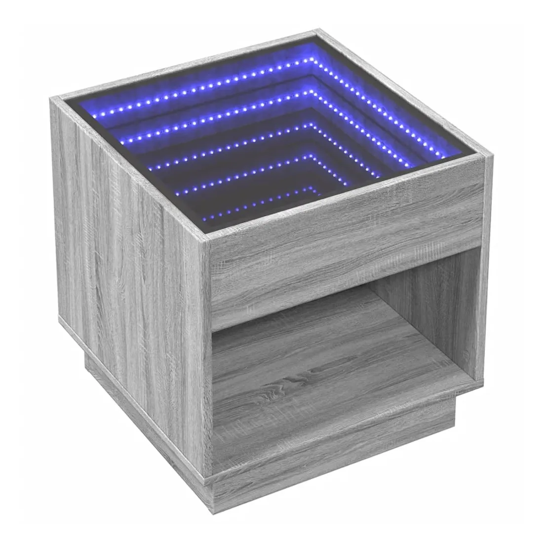 Cette table de chevet avec un miroir à LED infini constitue un ajout intemporel à votre décoration intérieure. Matériau stable et durable : le bois d'ingénierie est un matériau durable et stable dont la surface lisse résiste à l'humidité, à la déformation et au fendillement, ce qui en fait un choix fiable pour une grande variété de projets.Lampes LED RVB pour une ambiance agréable : cette table est dotée de lampes LED qui peuvent être facilement réglées pour créer un spectacle lumineux personnalisé. Vous pouvez personnaliser les modes, les couleurs et la luminosité pour améliorer l'ambiance de votre espace intérieur.Dessus de table stable et robuste : le dessus de table robuste est idéal pour placer vos objets décoratifs ou tout autre objet nécessaire à portée de main. Bon à savoir : Ce produit est doté d'un connecteur USB qui nécessite une source d'alimentation USB de 5V certifiée (non incluse).