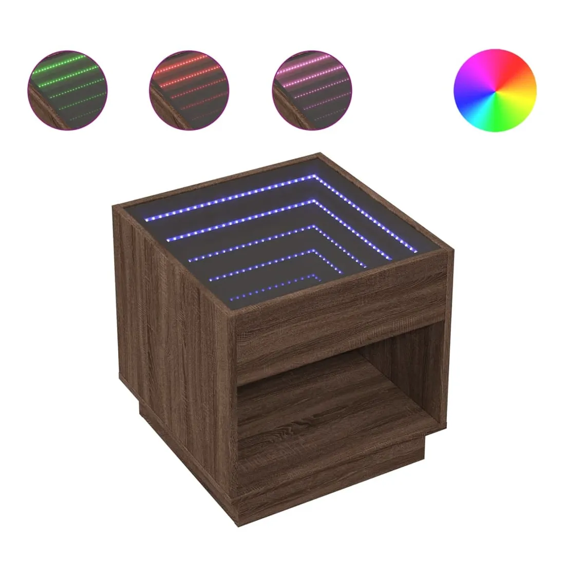 Cette table de chevet avec un miroir à LED infini constitue un ajout intemporel à votre décoration intérieure. Matériau stable et durable : le bois d'ingénierie est un matériau durable et stable dont la surface lisse résiste à l'humidité, à la déformation et au fendillement, ce qui en fait un choix fiable pour une grande variété de projets.Lampes LED RVB pour une ambiance agréable : cette table est dotée de lampes LED qui peuvent être facilement réglées pour créer un spectacle lumineux personnalisé. Vous pouvez personnaliser les modes, les couleurs et la luminosité pour améliorer l'ambiance de votre espace intérieur.Dessus de table stable et robuste : le dessus de table robuste est idéal pour placer vos objets décoratifs ou tout autre objet nécessaire à portée de main. Bon à savoir : Ce produit est doté d'un connecteur USB qui nécessite une source d'alimentation USB de 5V certifiée (non incluse).