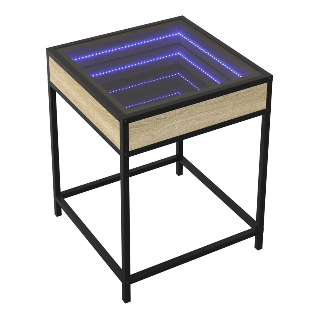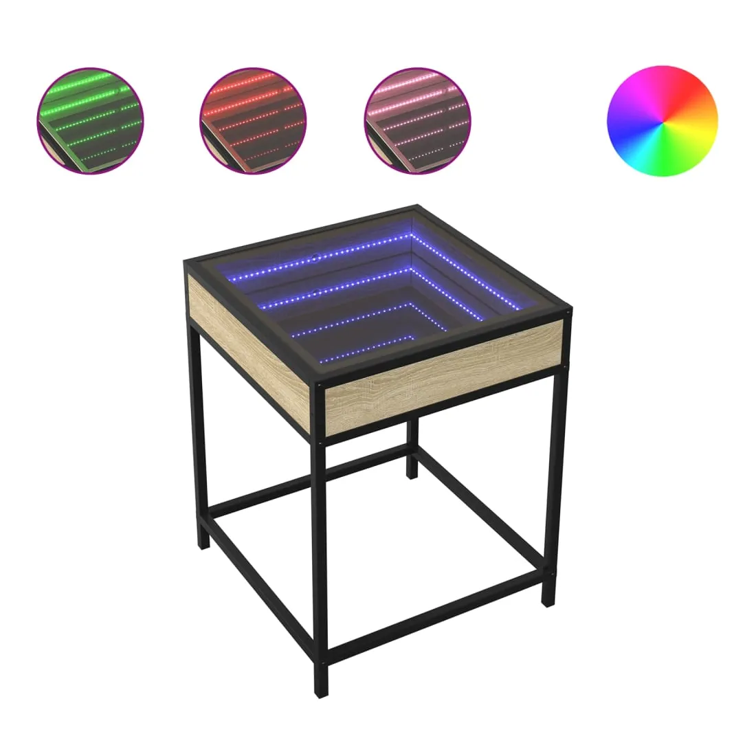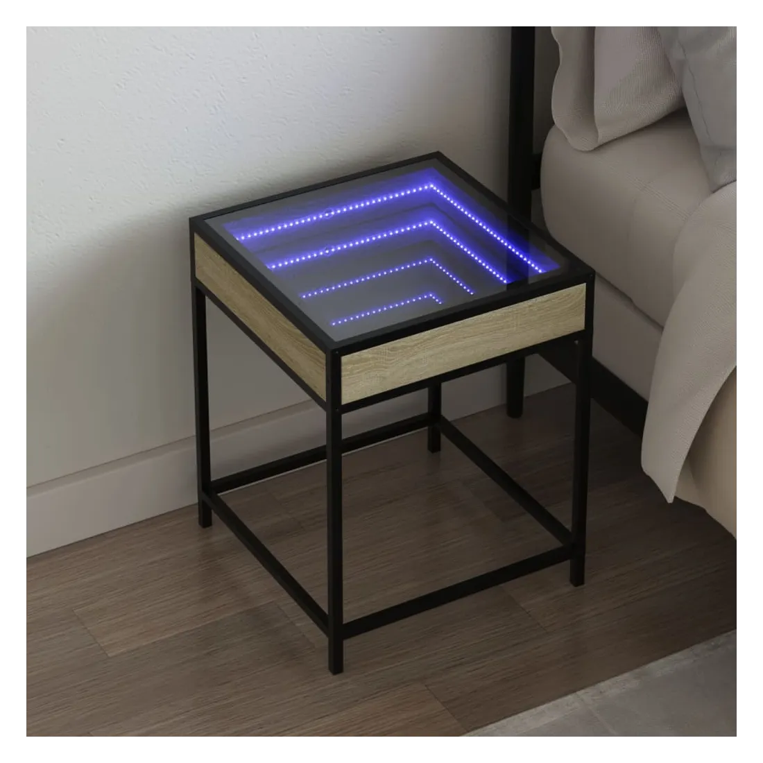 Cette table de chevet avec un miroir à LED infini constitue un ajout intemporel à votre décoration intérieure. Matériau stable et durable : le bois d'ingénierie est un matériau durable et stable dont la surface lisse résiste à l'humidité, à la déformation et au fendillement, ce qui en fait un choix fiable pour une grande variété de projets. Structure robuste : le cadre en métal de la table ajoute un style industriel à votre intérieur tout en garantissant robustesse, stabilité et longévité. Lampes LED RVB pour une ambiance agréable : cette table est dotée de lampes LED qui peuvent être facilement réglées pour créer un spectacle lumineux personnalisé. Vous pouvez personnaliser les modes, les couleurs et la luminosité pour améliorer l'ambiance de votre espace intérieur.Dessus de table stable et robuste : le dessus de table robuste est idéal pour placer vos objets décoratifs ou tout autre objet nécessaire à portée de main. Bon à savoir : Ce produit est doté d'un connecteur USB qui nécessite une source d'alimentation USB de 5V certifiée (non incluse).